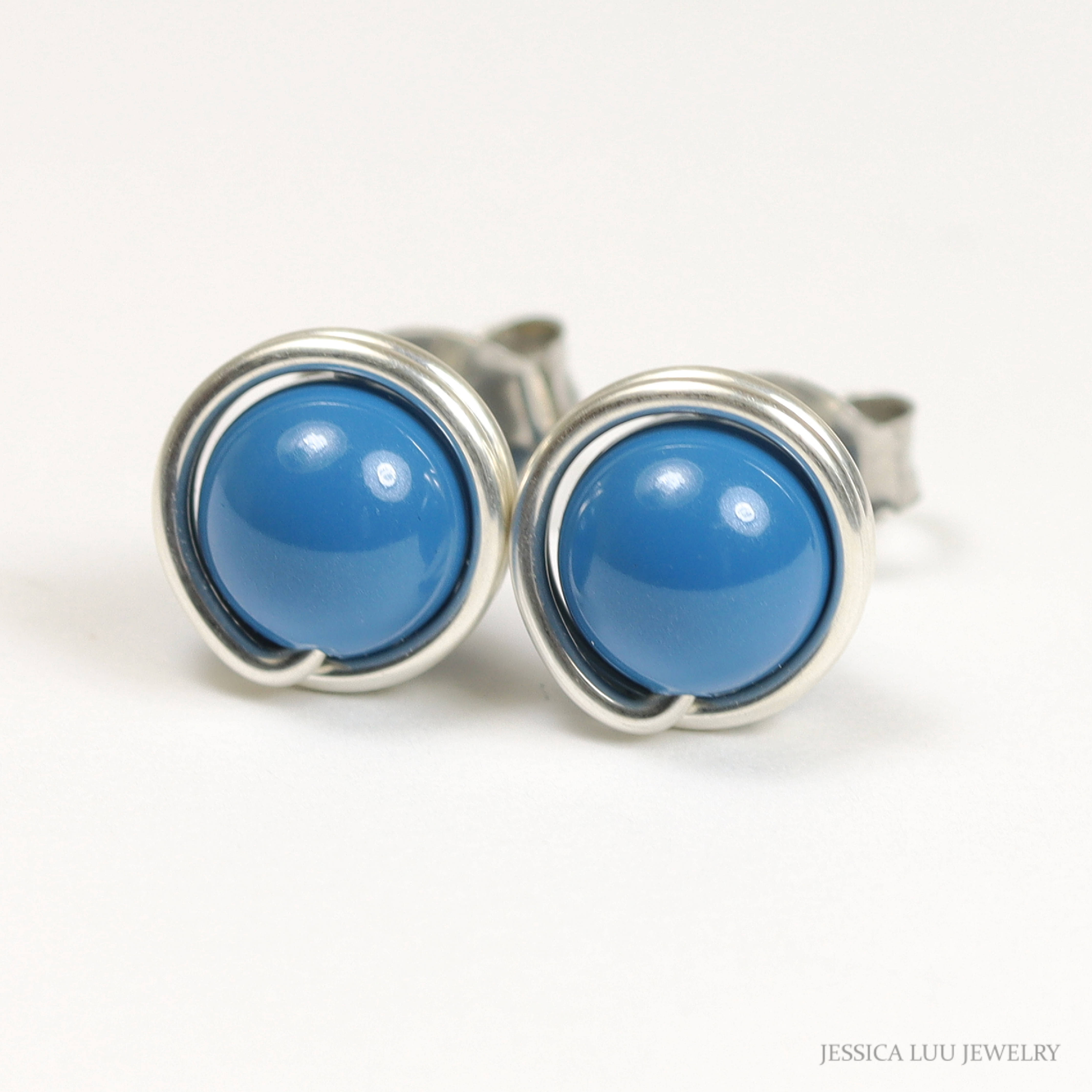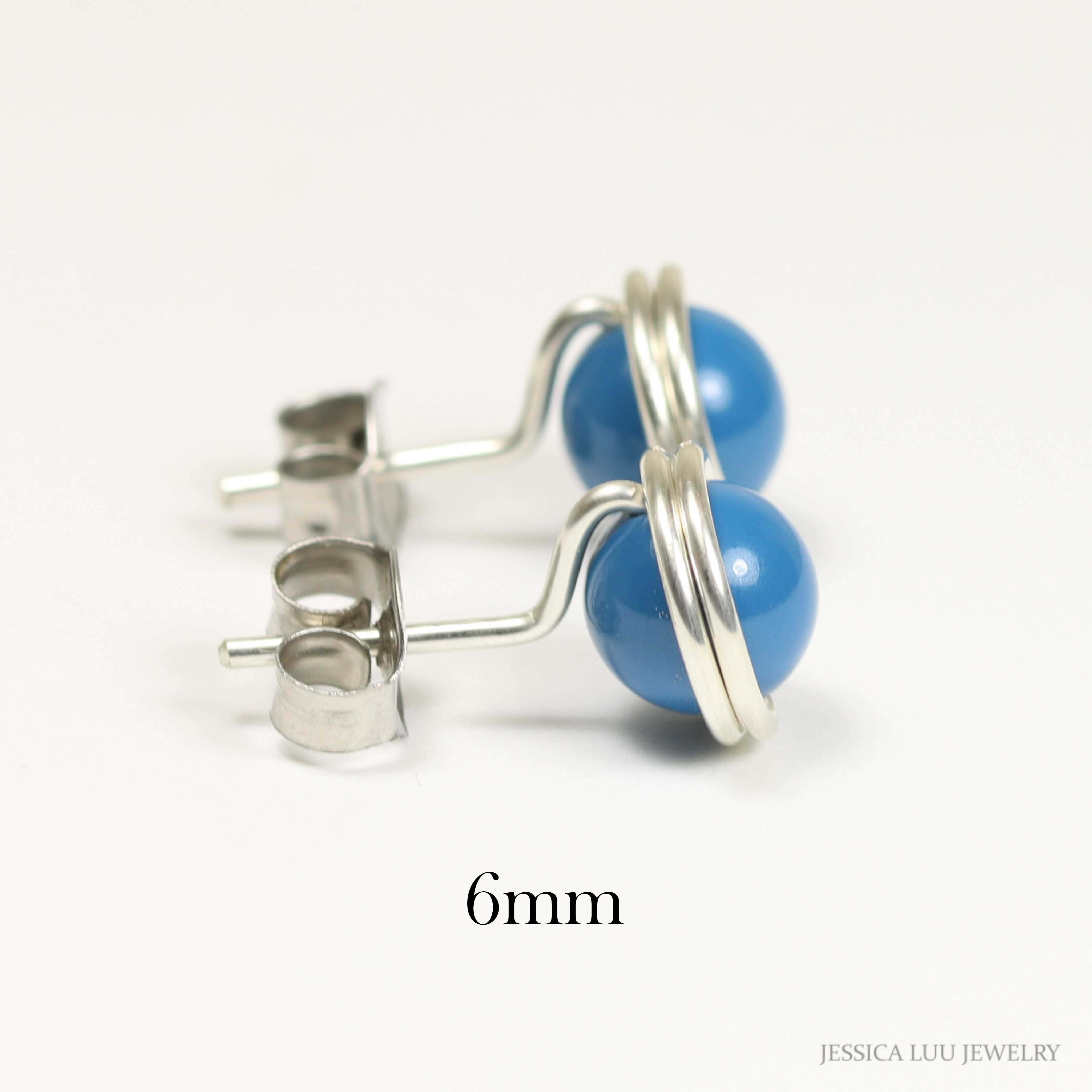 Lapis Pearl Stud Earrings Handmade by Jessica Luu Jewelry