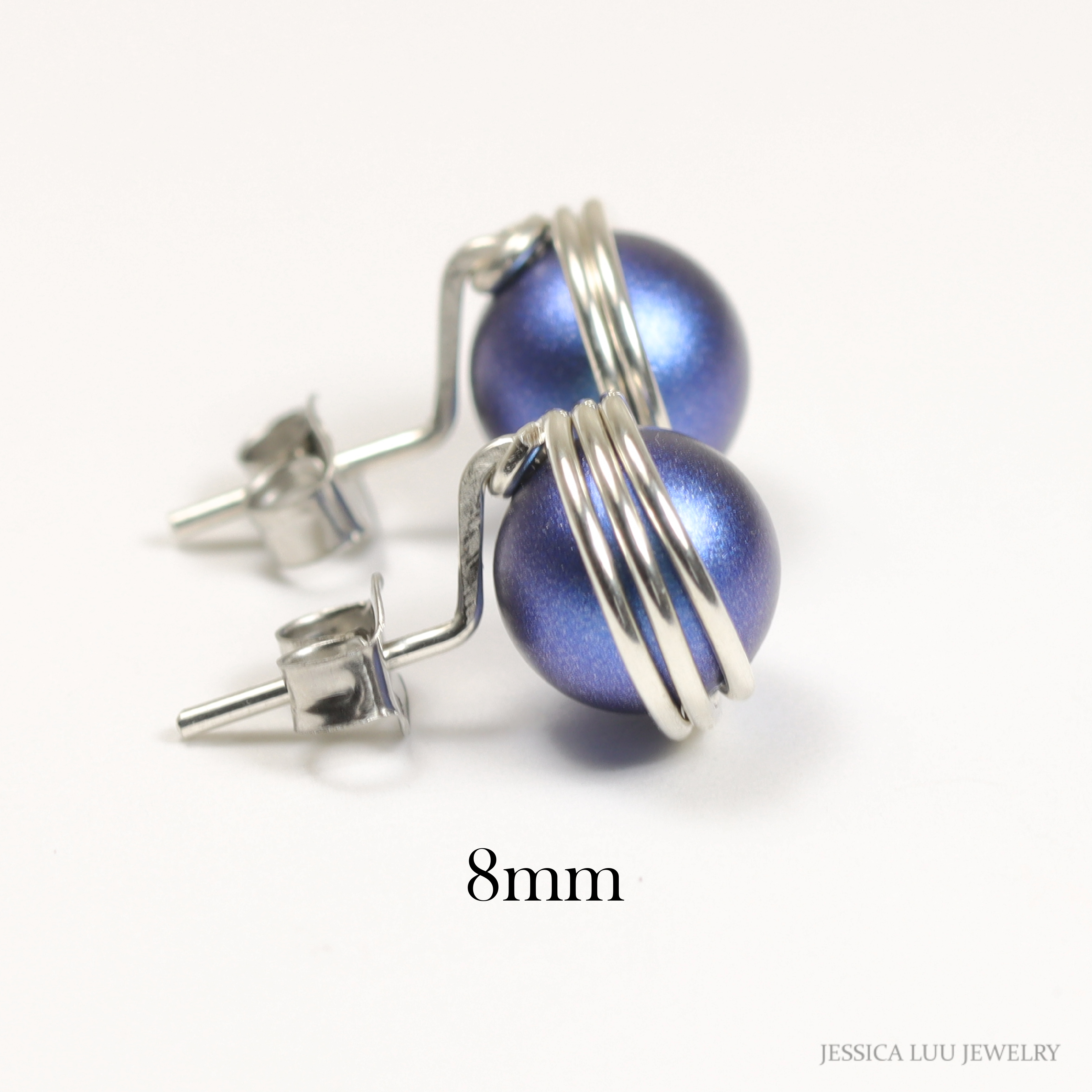 Dark Blue Pearl Stud Earrings Handmade by Jessica Luu Jewelry