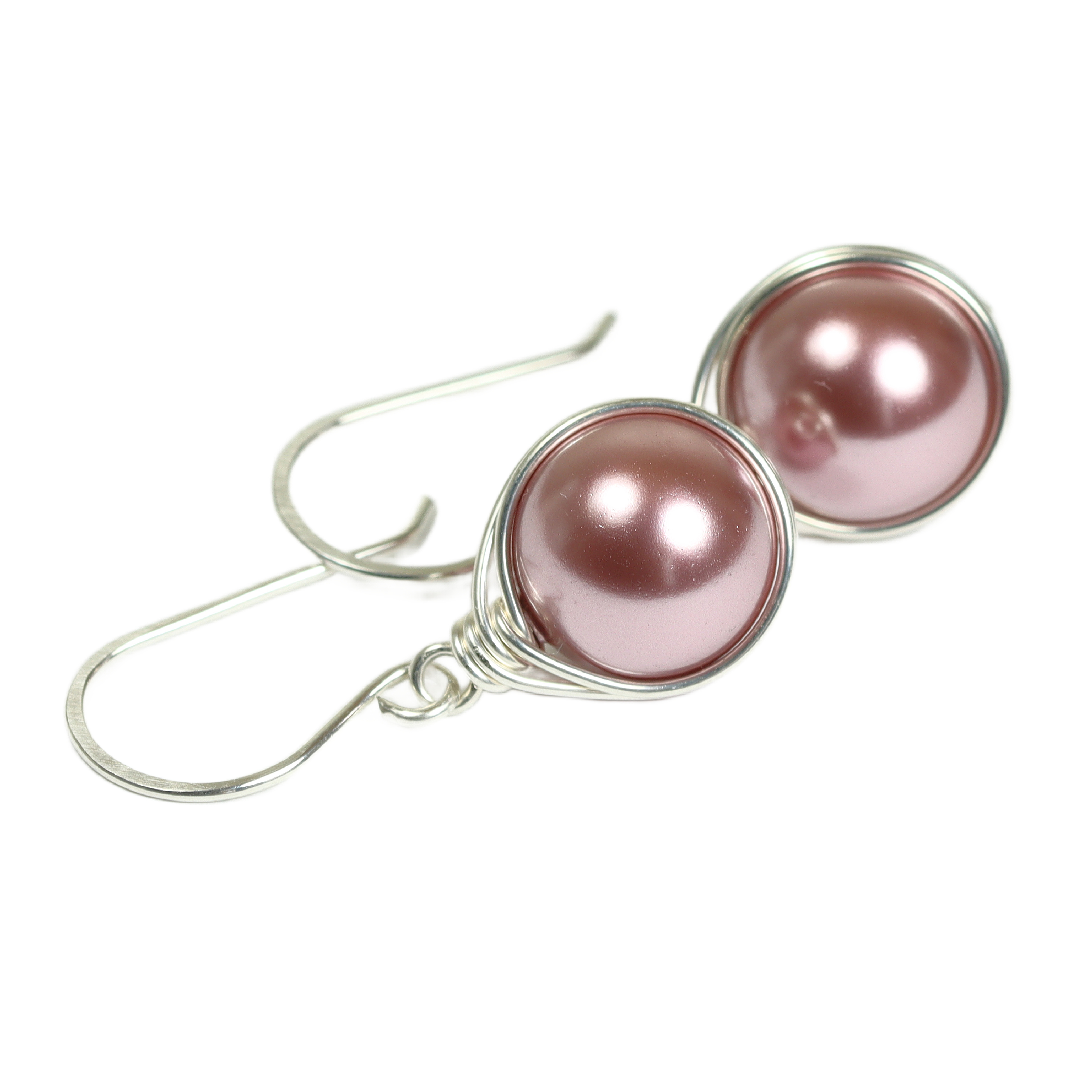 HOW THEY’RE MADE: Each pearl is wrapped by hand with sterling silver or 14K gold filled wire which is then formed into the ear wire and hammered for strength. Gold filled wire is a hollow tube of 14 karat gold that is filled with brass for durability, so all the metal outside is 14K gold; gold filled wire will not wear off like gold plating and will last a lifetime.