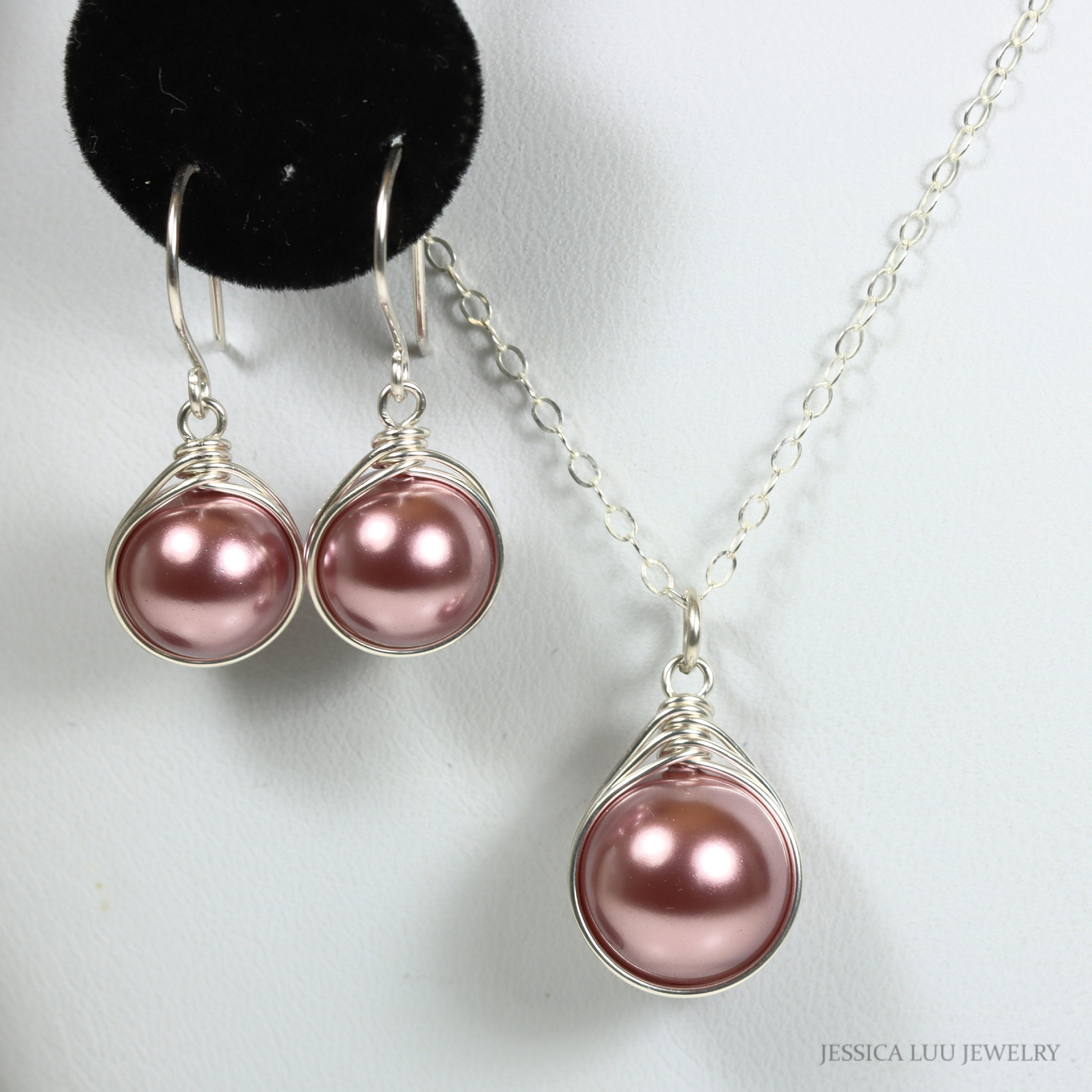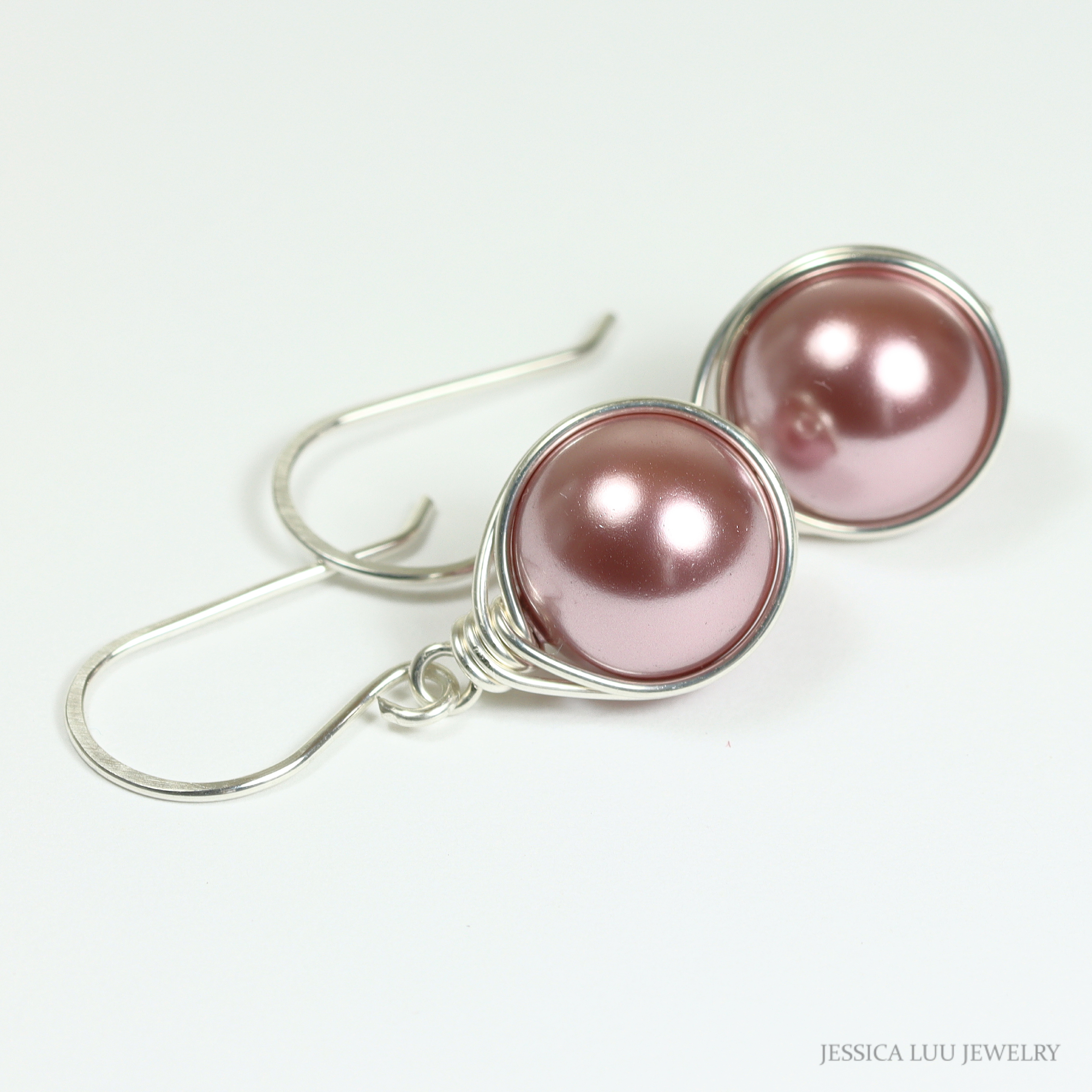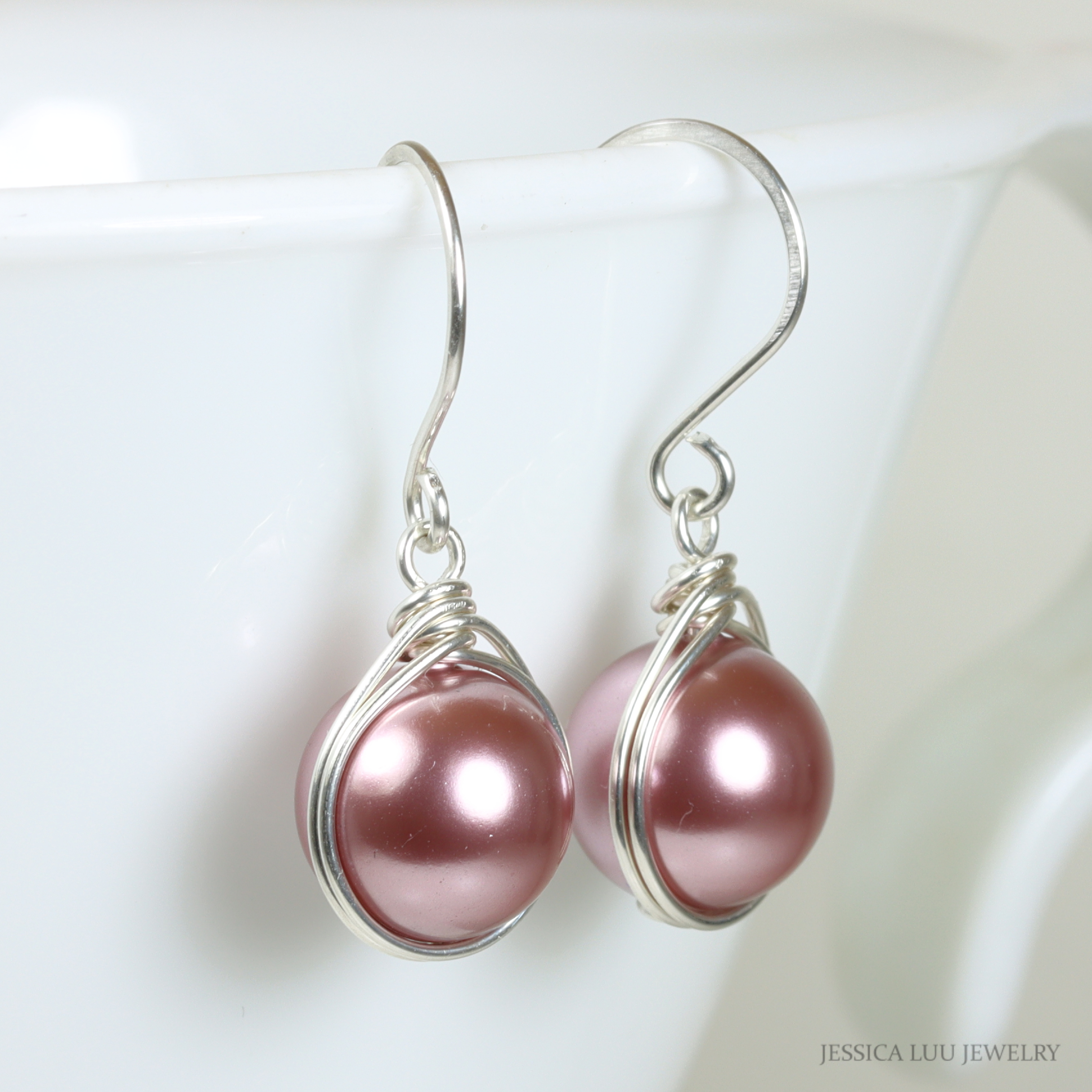 Sterling Silver Pink Pearl Dangle Earrings Handmade by Jessica Luu Jewelry