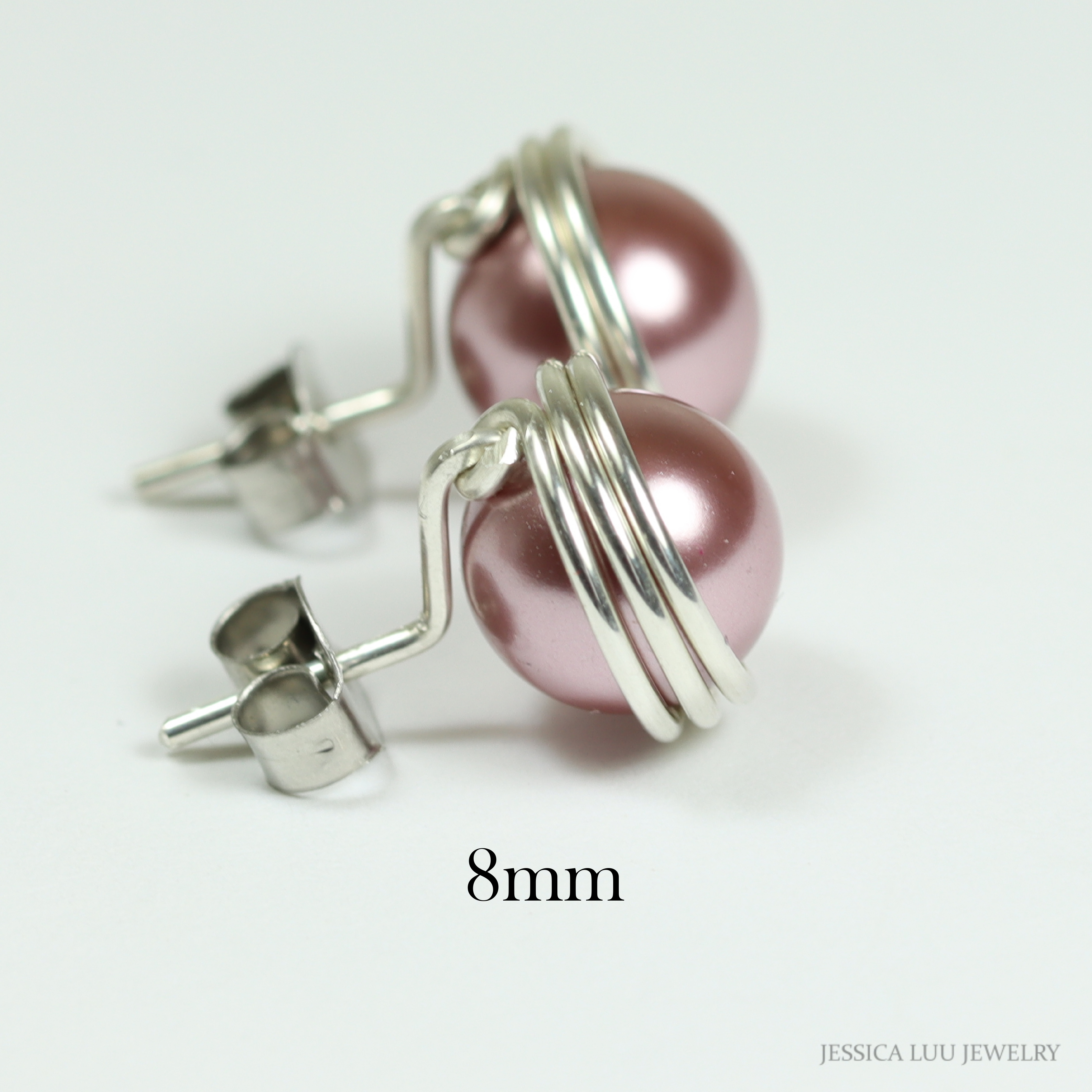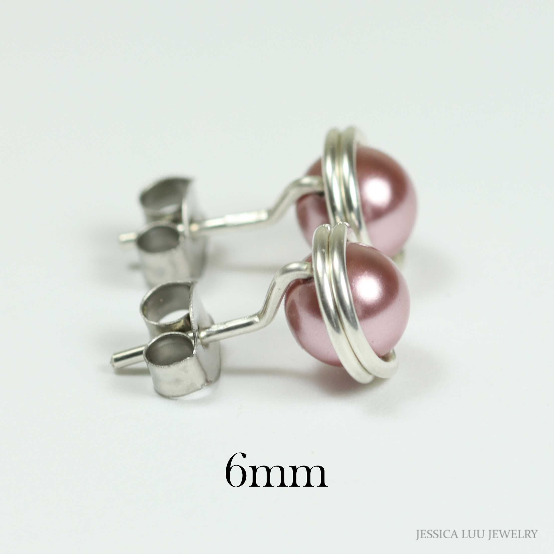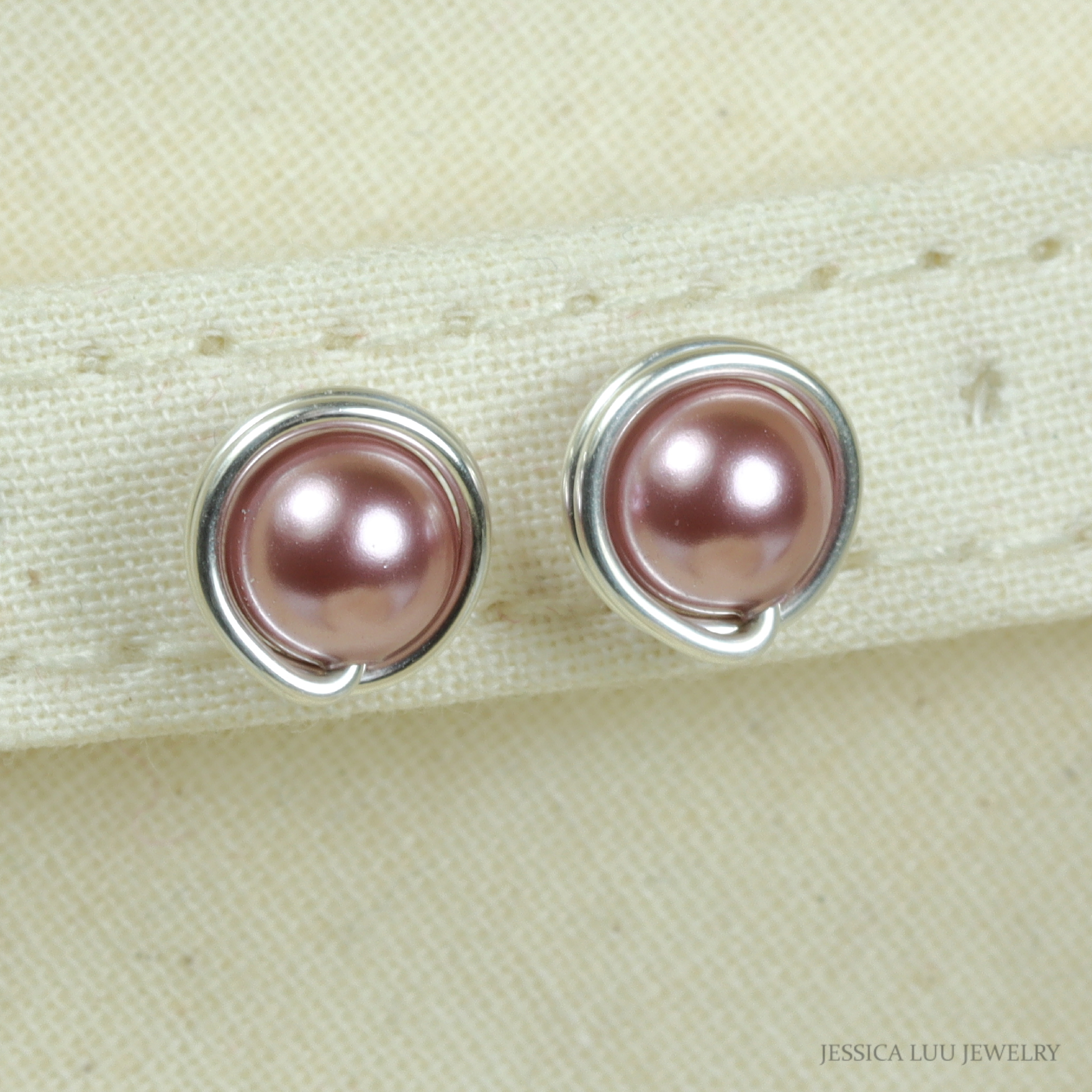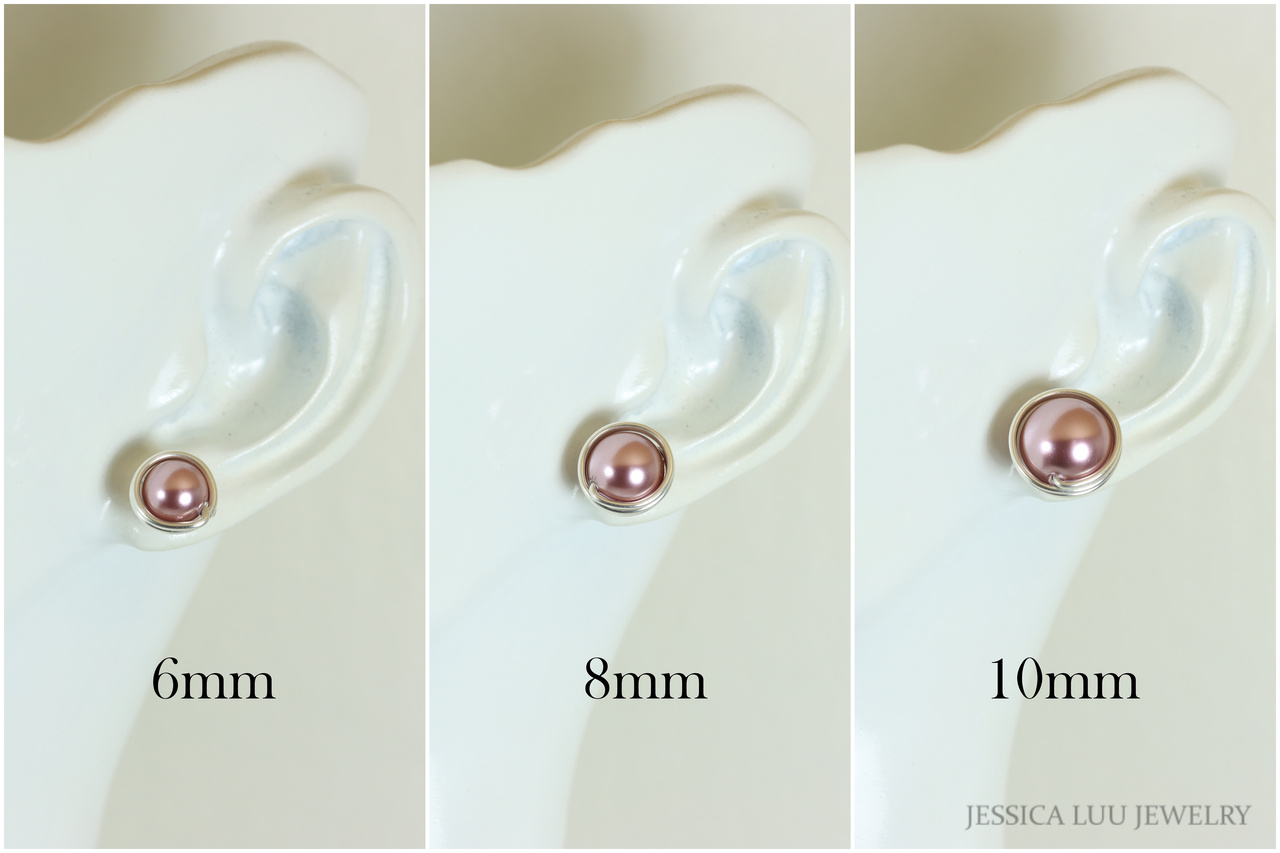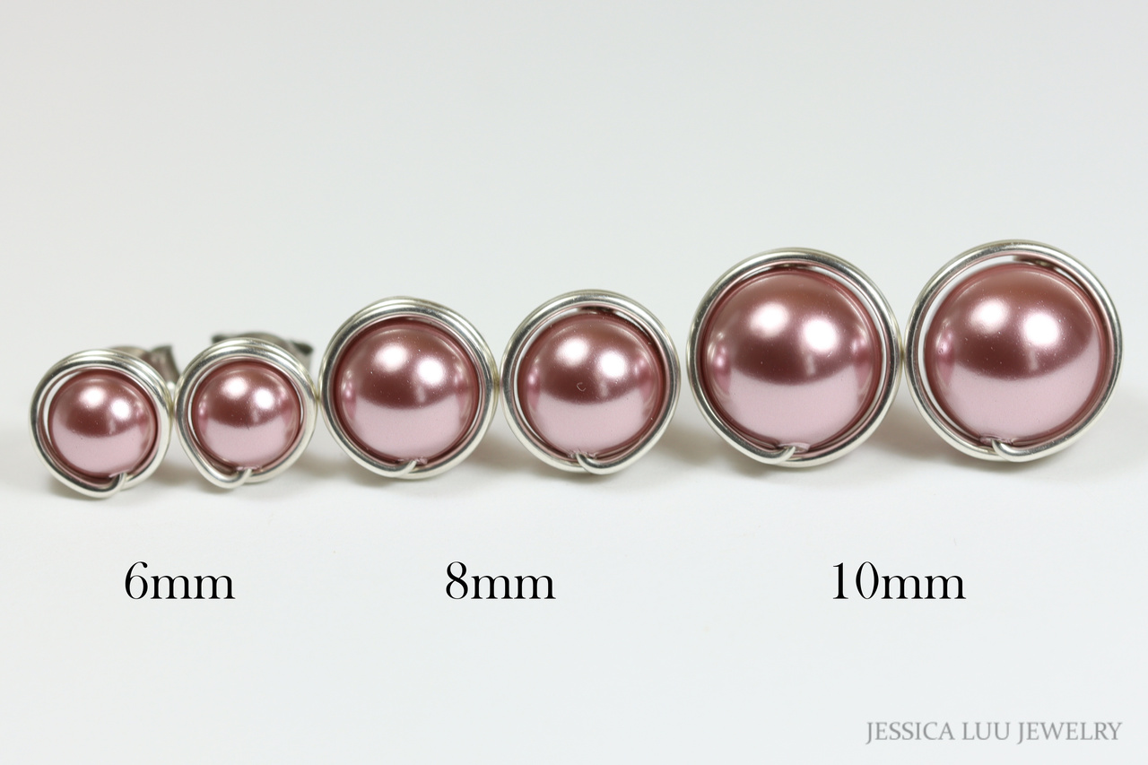 Sterling Silver Pink Pearl Stud Earrings Handmade by Jessica Luu Jewelry