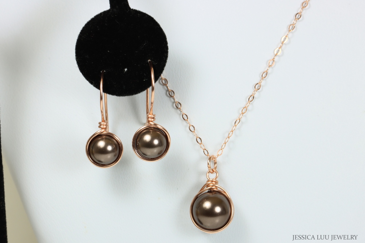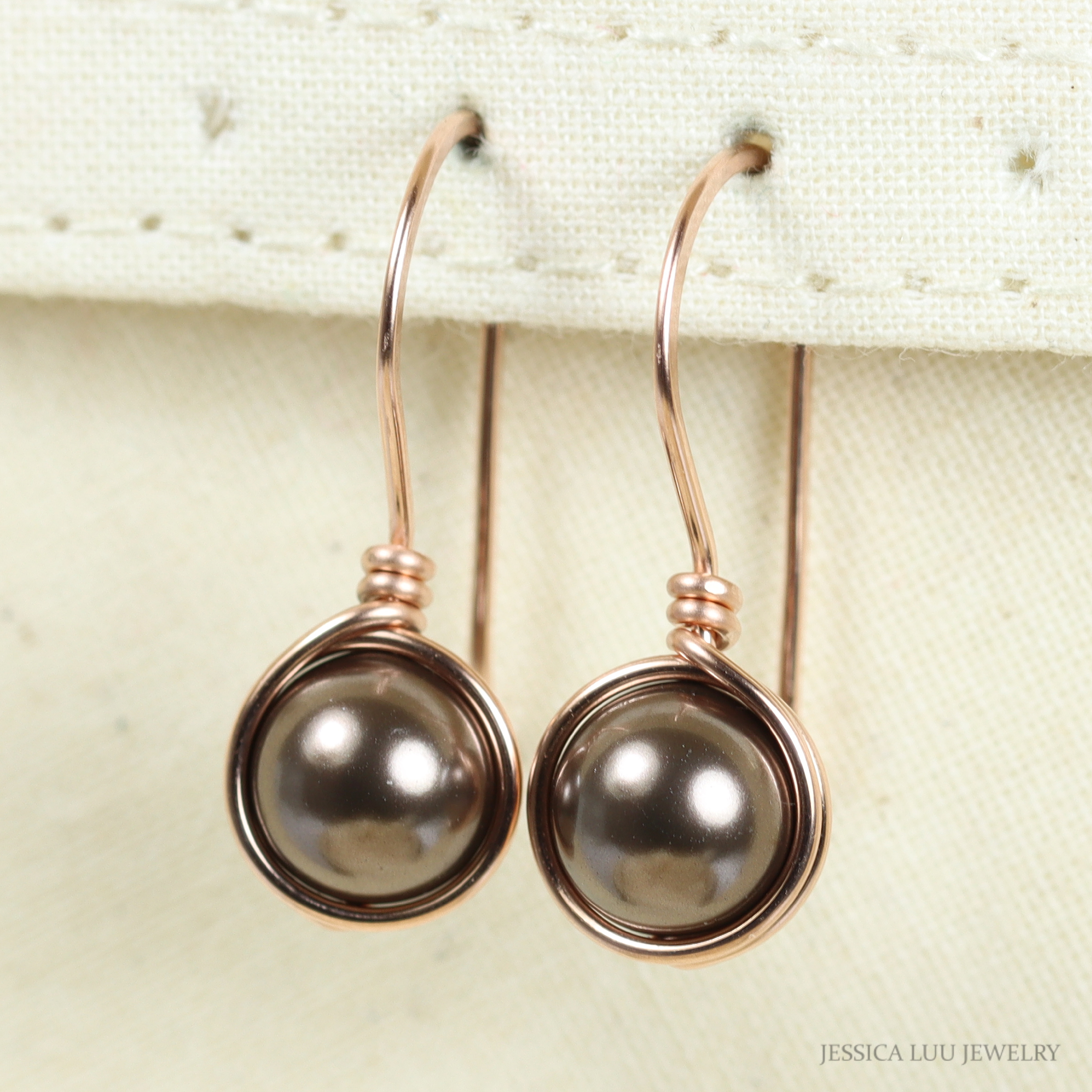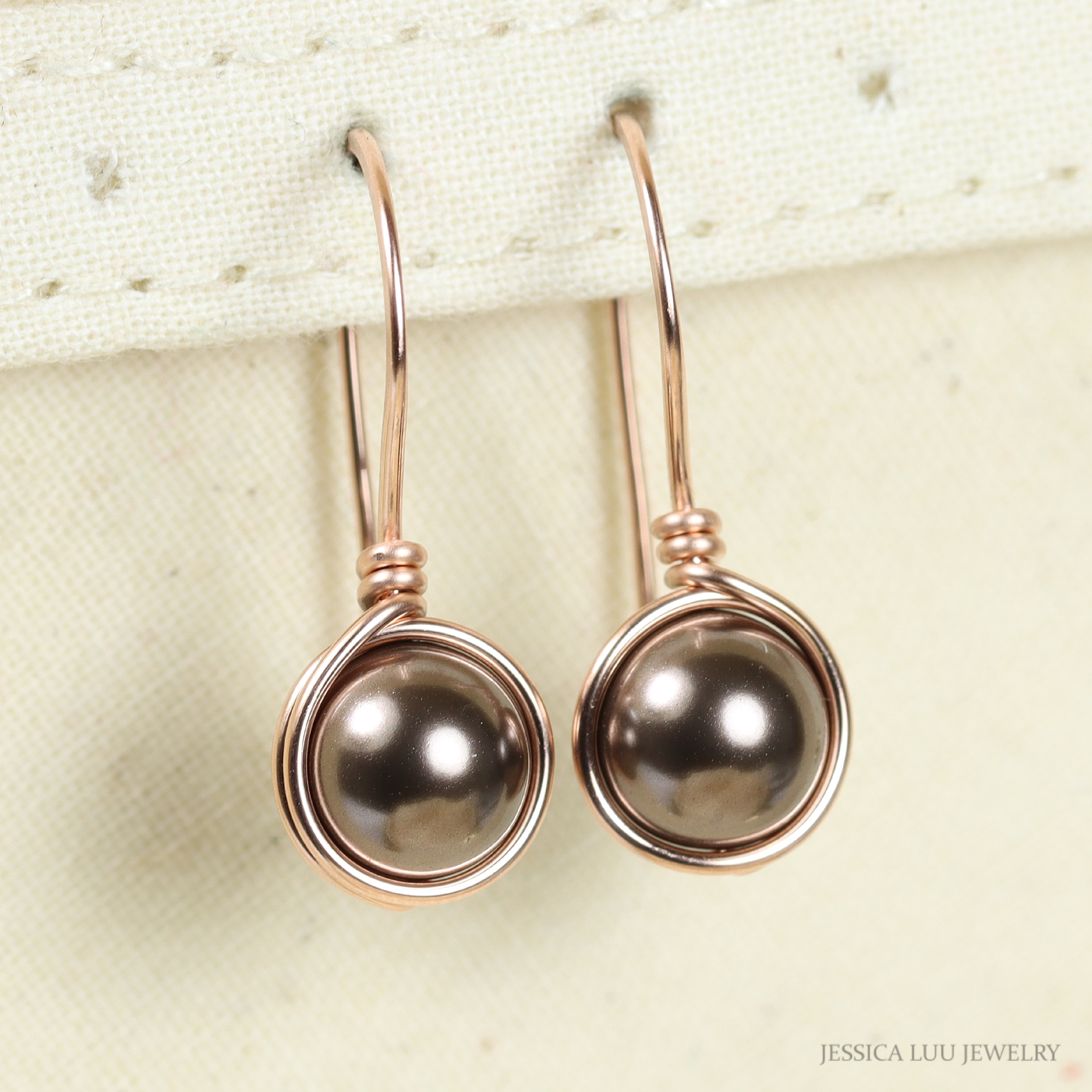 Rose Gold Brown Pearl Earrings Handmade by Jessica Luu Jewelry