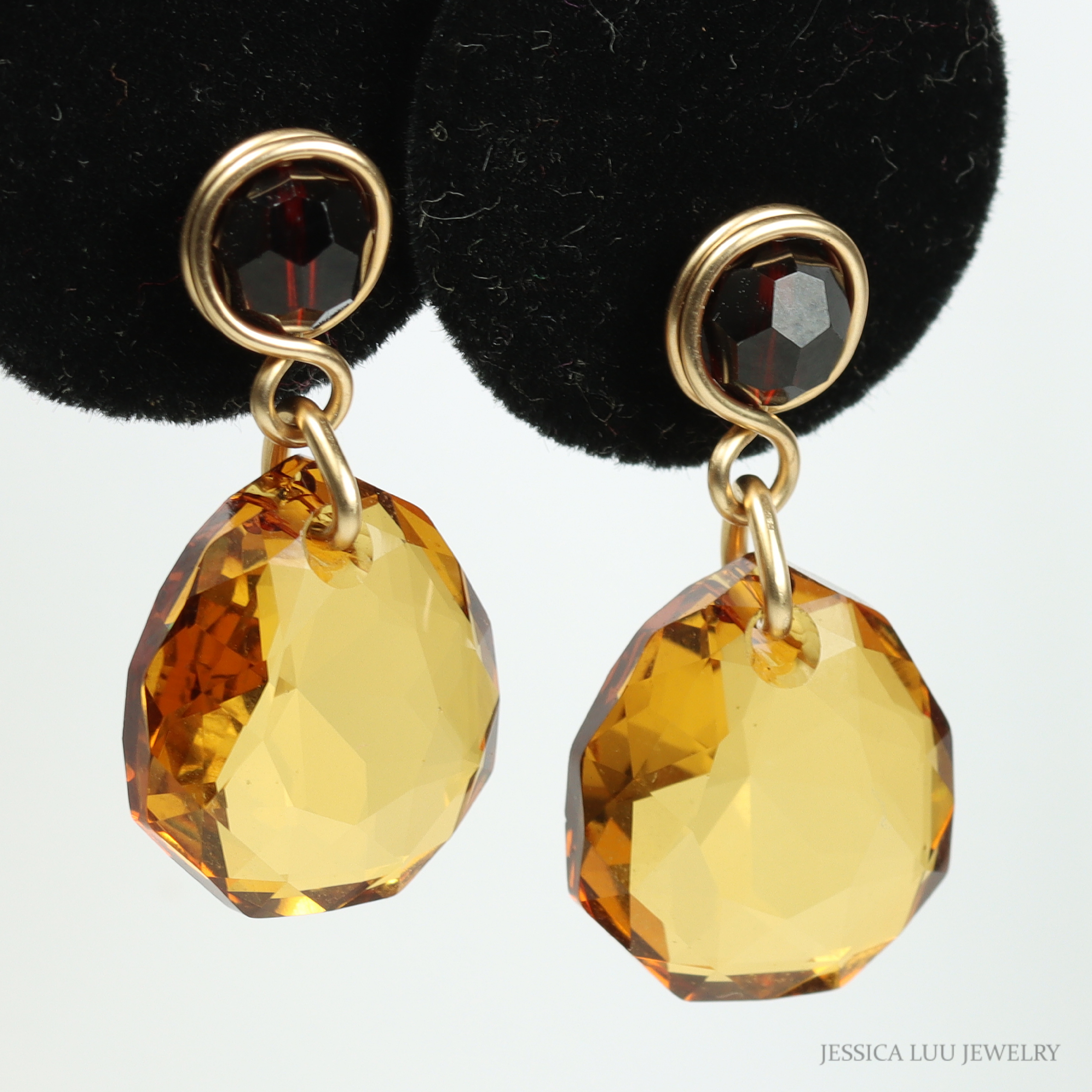 ~ HANDCRAFTED DESIGN: Elegantly handmade dangle earrings featuring stunning honey colored Austrian crystals set in luxurious 14K yellow gold filled settings