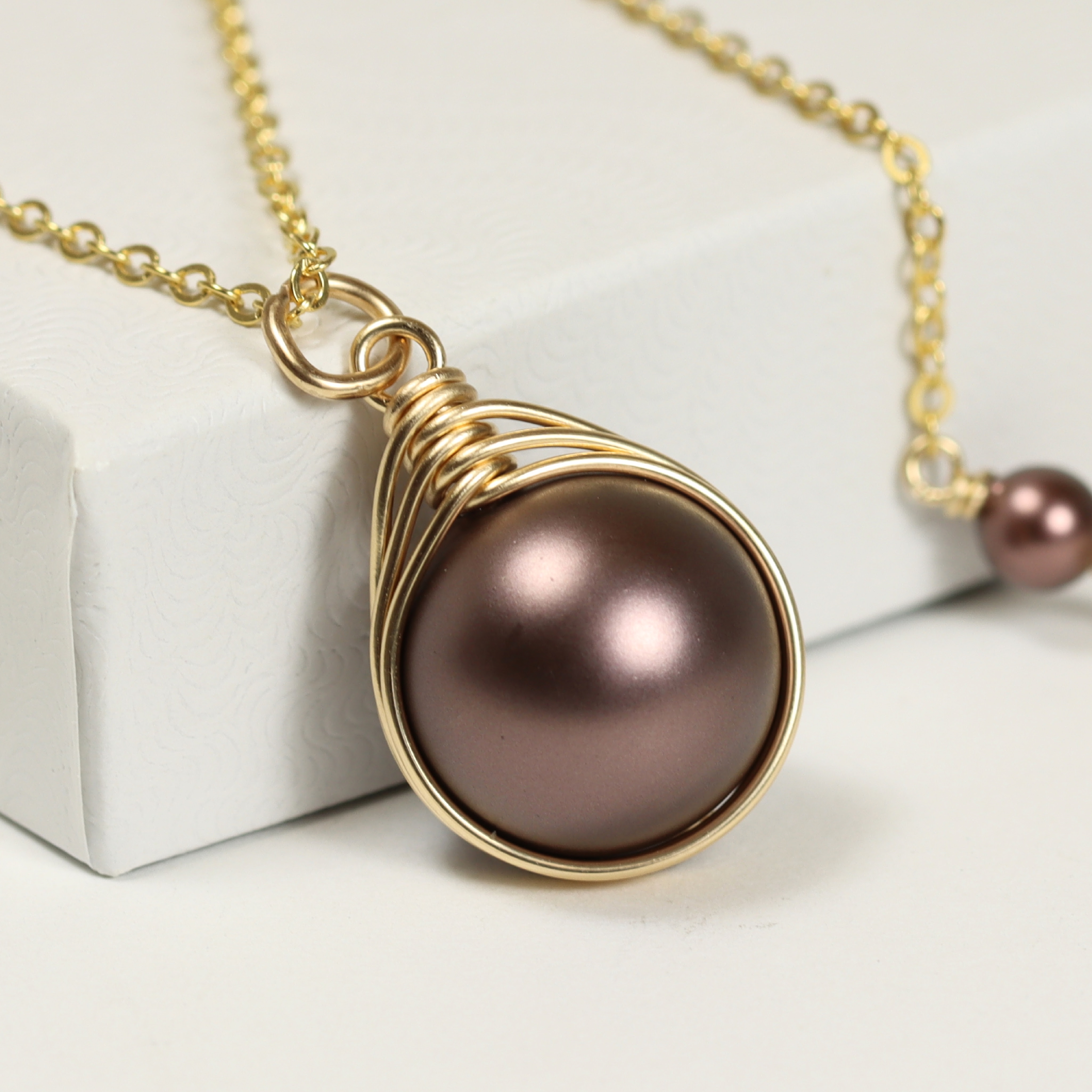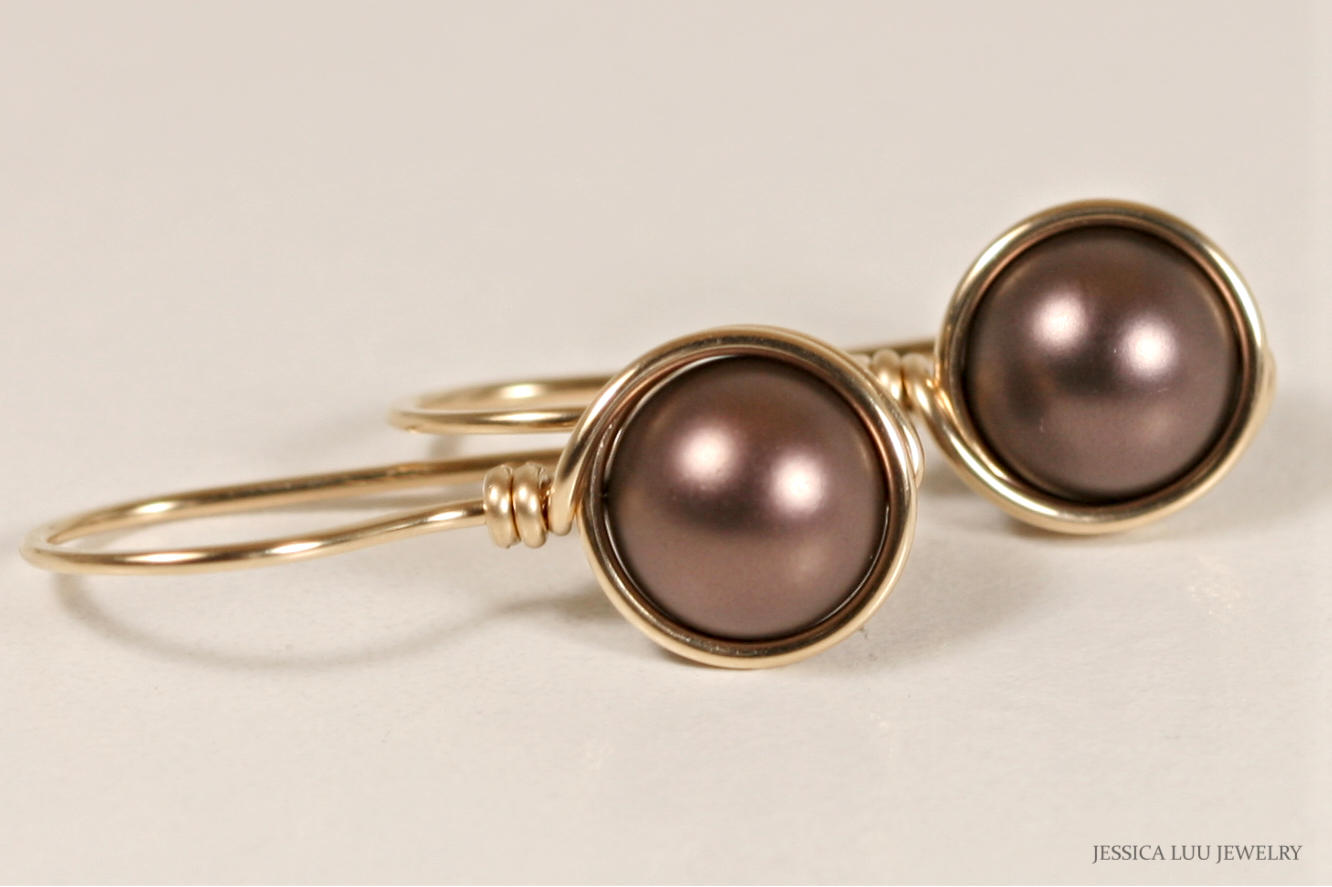 Dark Brown Pearl Drop Earrings Handmade by Jessica Luu Jewelry