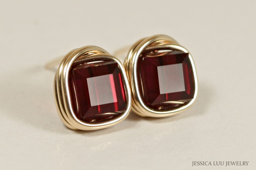 Versatile and perfect for everyday wear, these square crystal stud earrings are available in 14K rose gold and yellow gold with matching necklace. Garnet is January’s birthstone making these earrings the perfect gift for that special someone (including you).