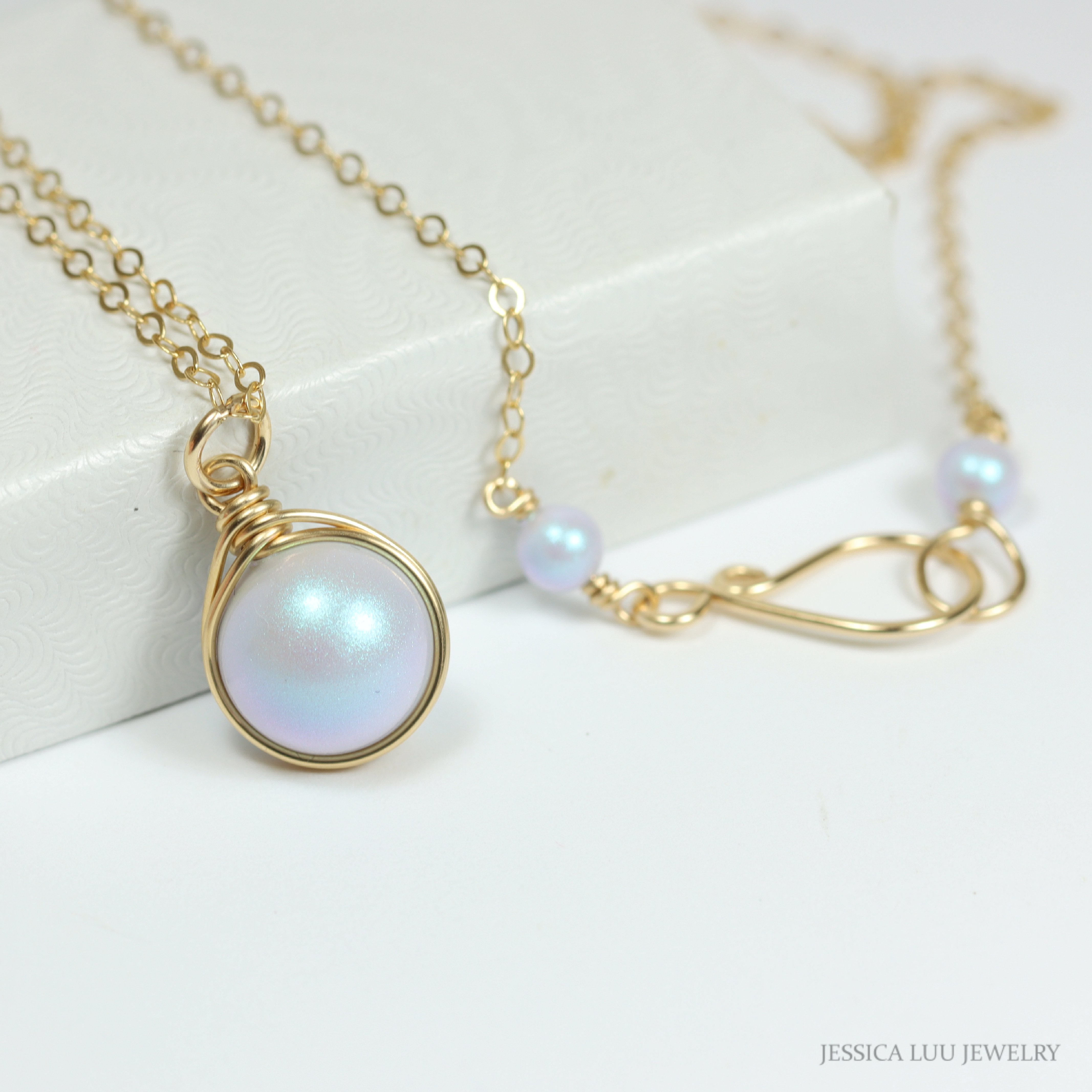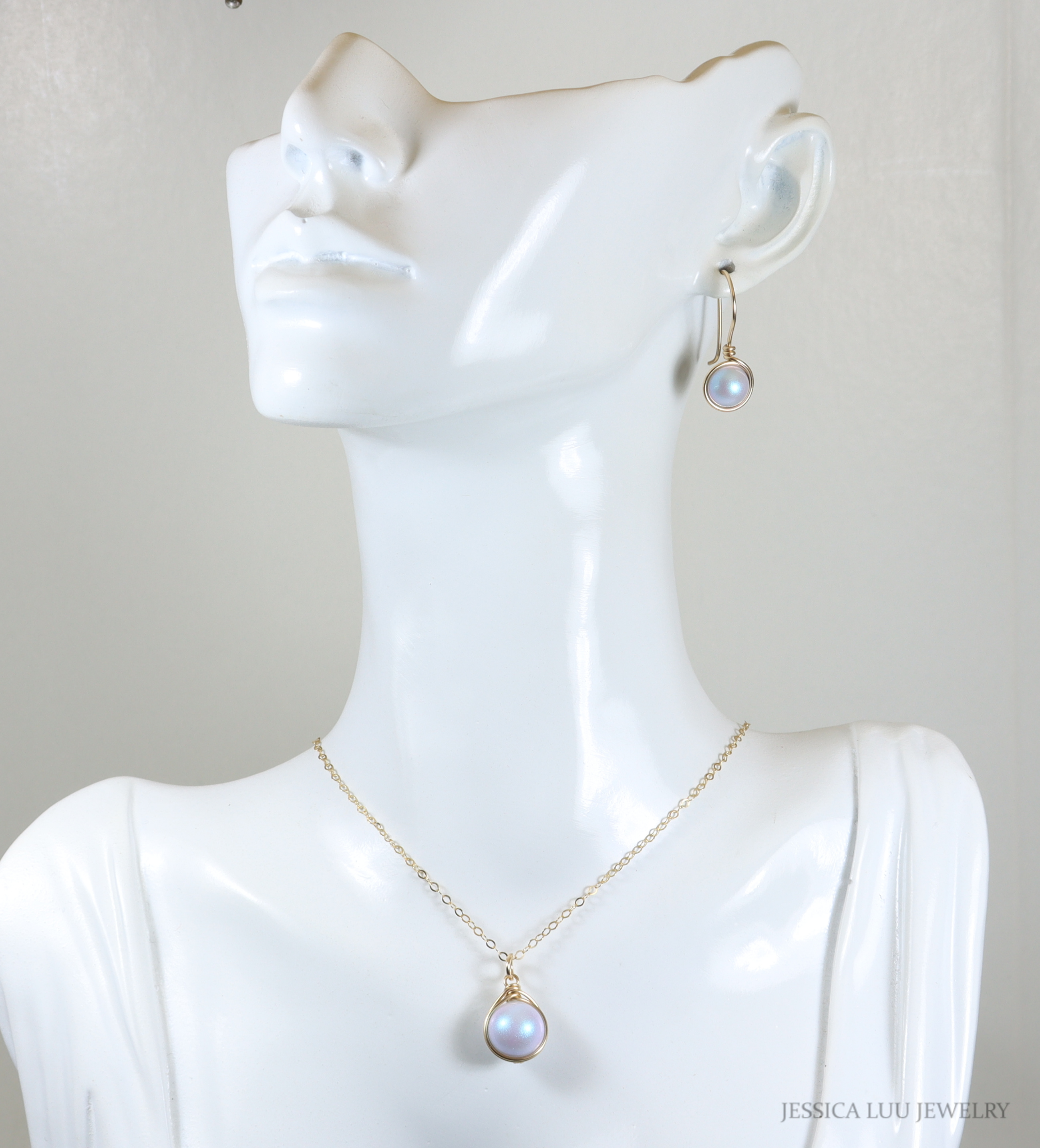 Dreamy Blue Pearl Necklace Handmade by Jessica Luu Jewelry
