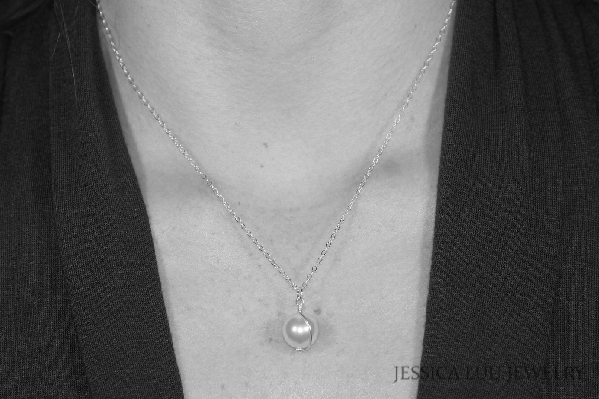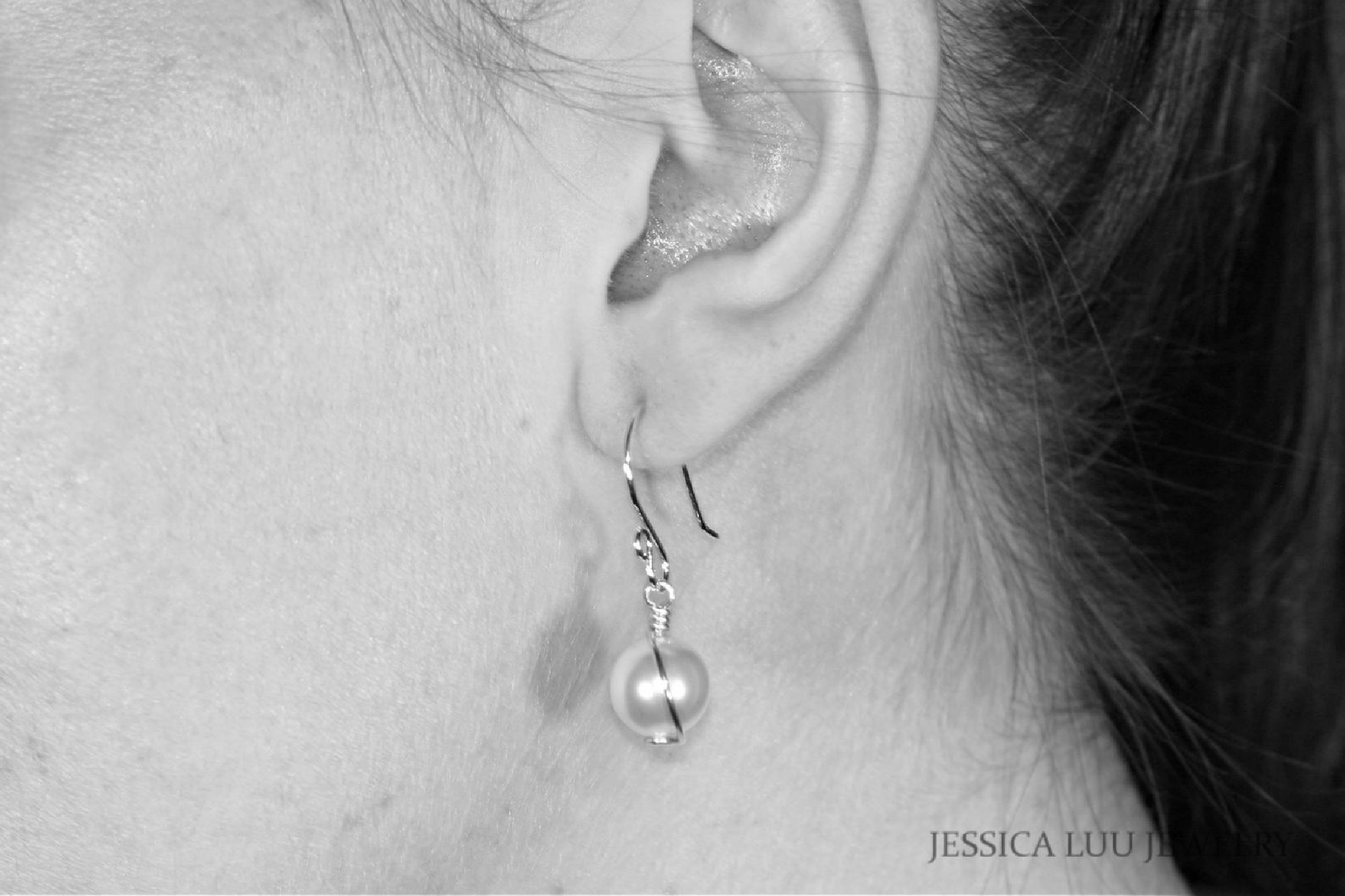 Wire Wrapped Cream Pearl Earrings Handmade by Jessica Luu Jewelry