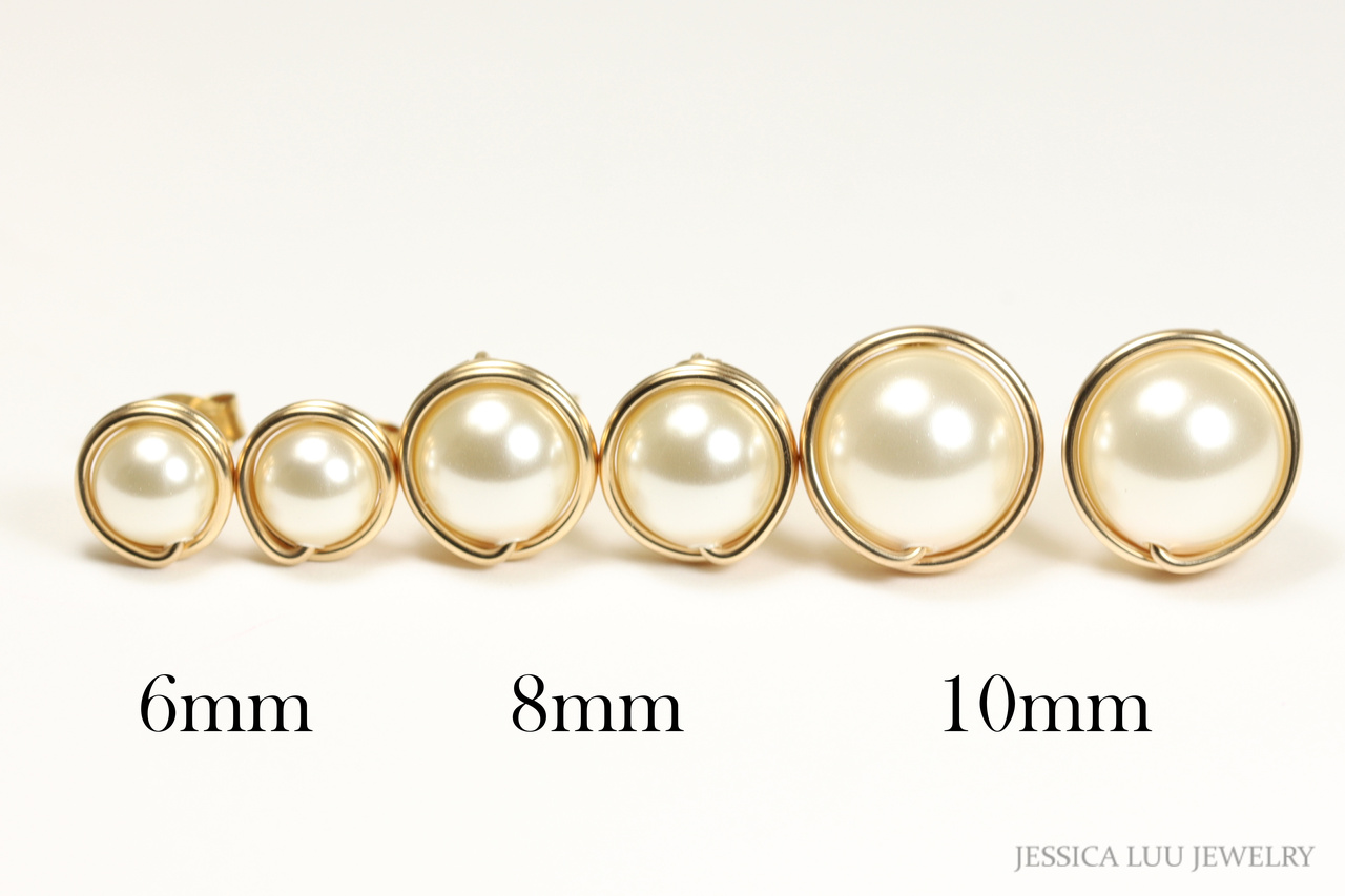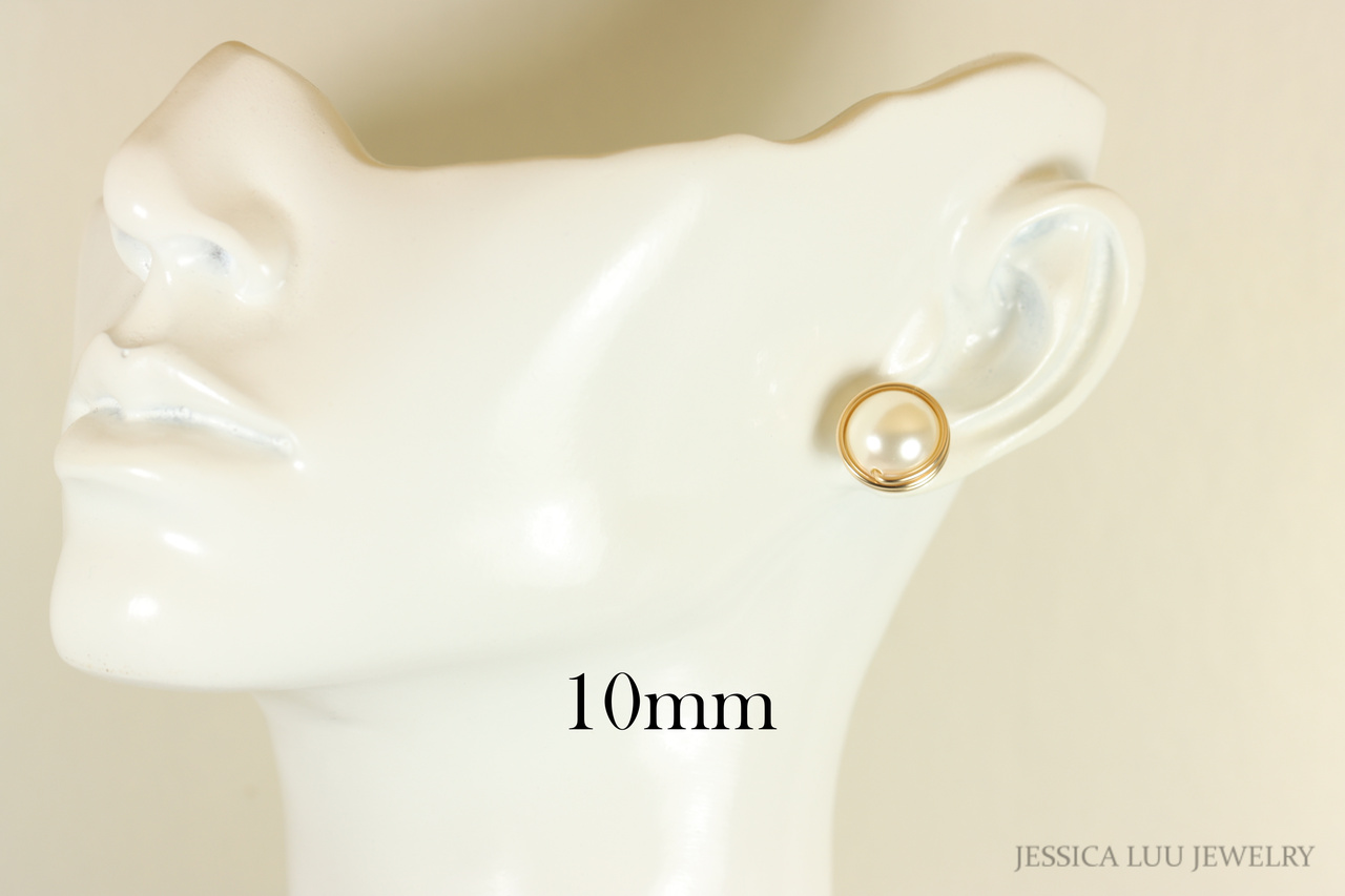 HOW THEY’RE MADE: Each pearl is wrapped by hand with 14K gold filled wire which is then formed into the ear post. Gold filled wire is a hollow tube of 14 karat gold that is filled with brass for durability, so all the metal outside is 14K gold; gold filled wire will not wear off like gold plating and will last a lifetime.