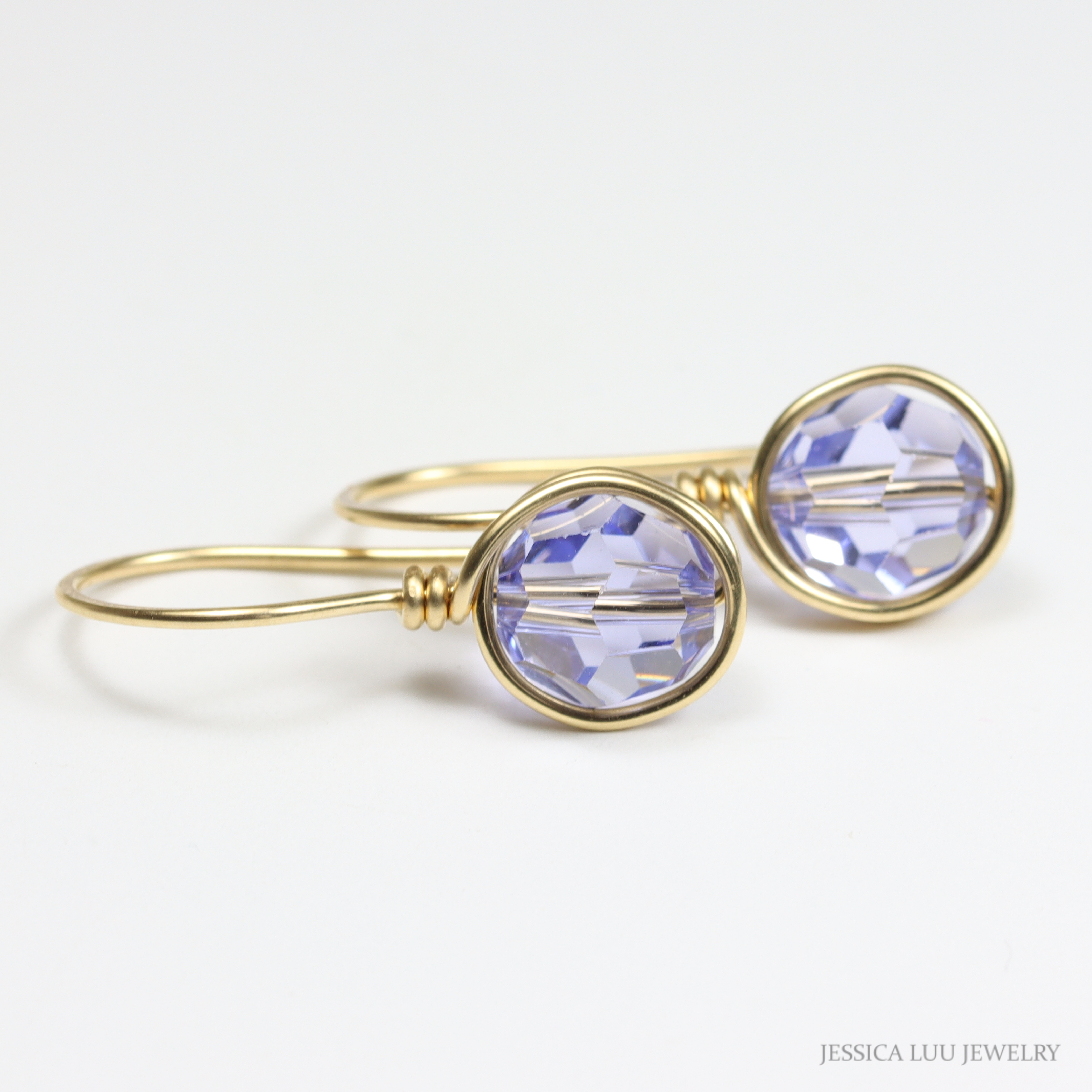 HOW THEY’RE MADE: Each crystal is wrapped by hand with 14K gold filled wire which is then formed into the ear wire and hammered for strength. Gold filled wire is a hollow tube of 14 karat gold that is filled with brass for durability, so all the metal outside is 14K gold; gold filled wire will not wear off like gold plating and will last a lifetime.