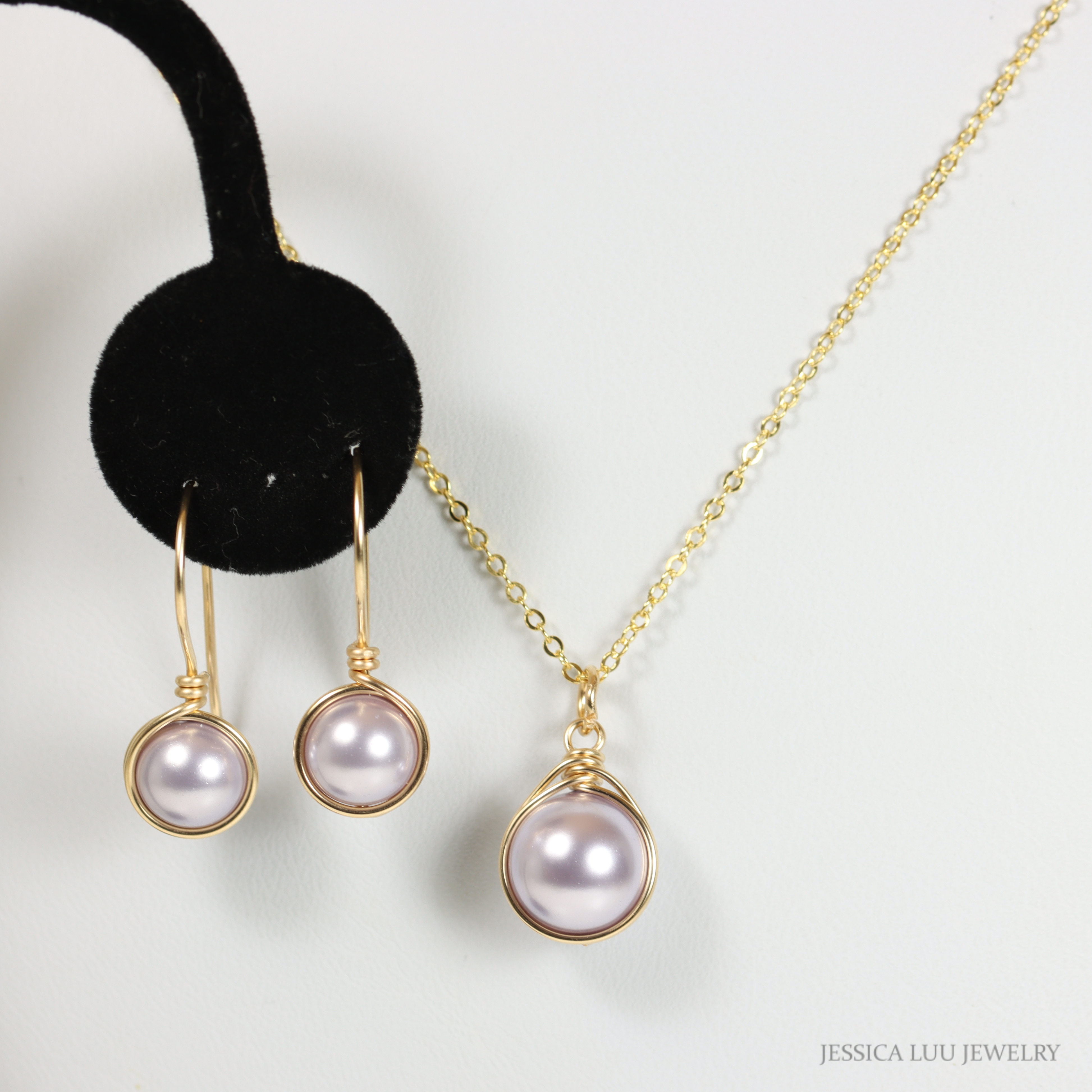 Lavender Pearl Necklace Handmade by Jessica Luu Jewelry