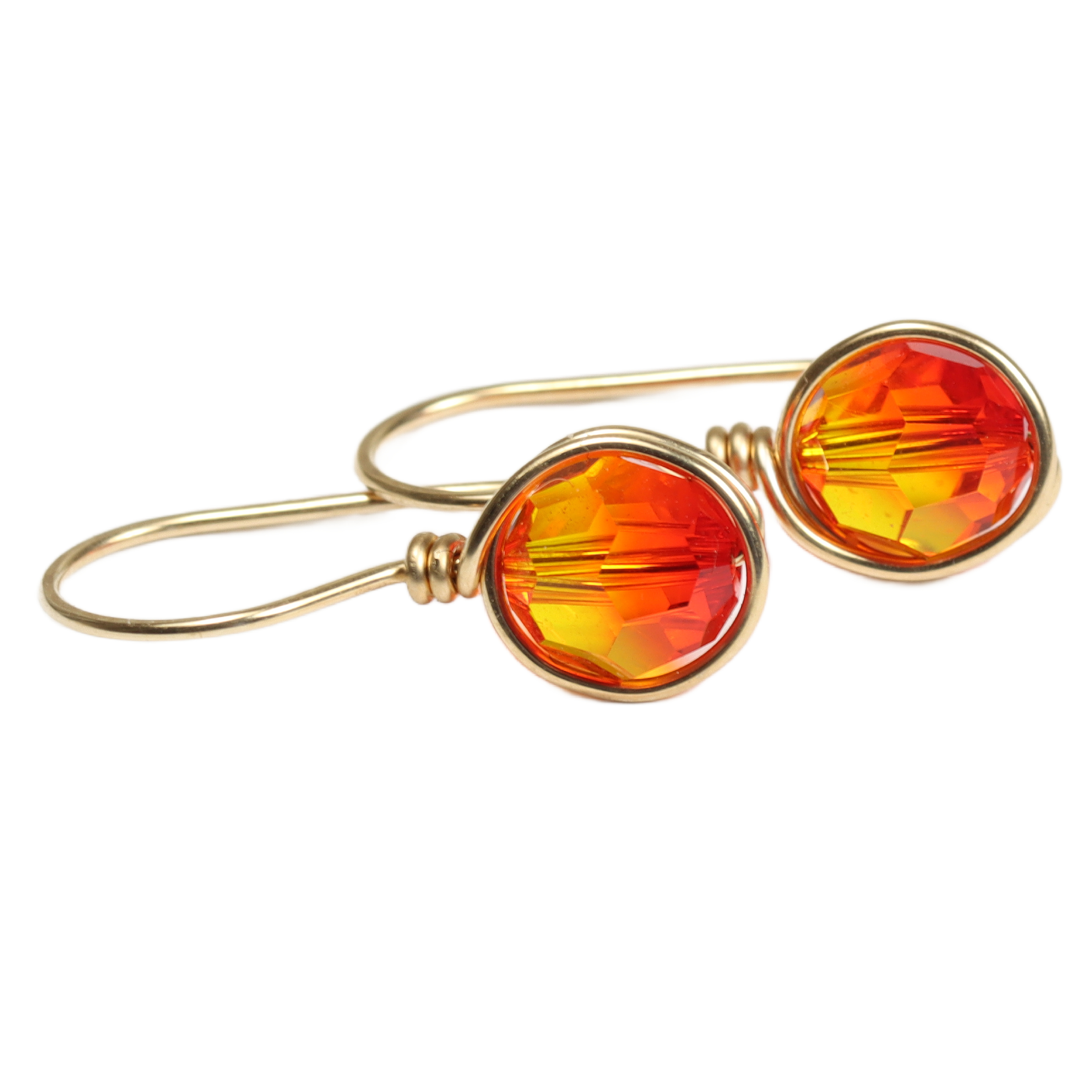 HOW THEY’RE MADE: Each crystal is wrapped by hand with 14K gold filled wire which is then formed into the ear wire and hammered for strength. Gold filled wire is a hollow tube of 14 karat gold that is filled with brass for durability, so all the metal outside is 14K gold; gold filled wire will not wear off like gold plating and will last a lifetime.