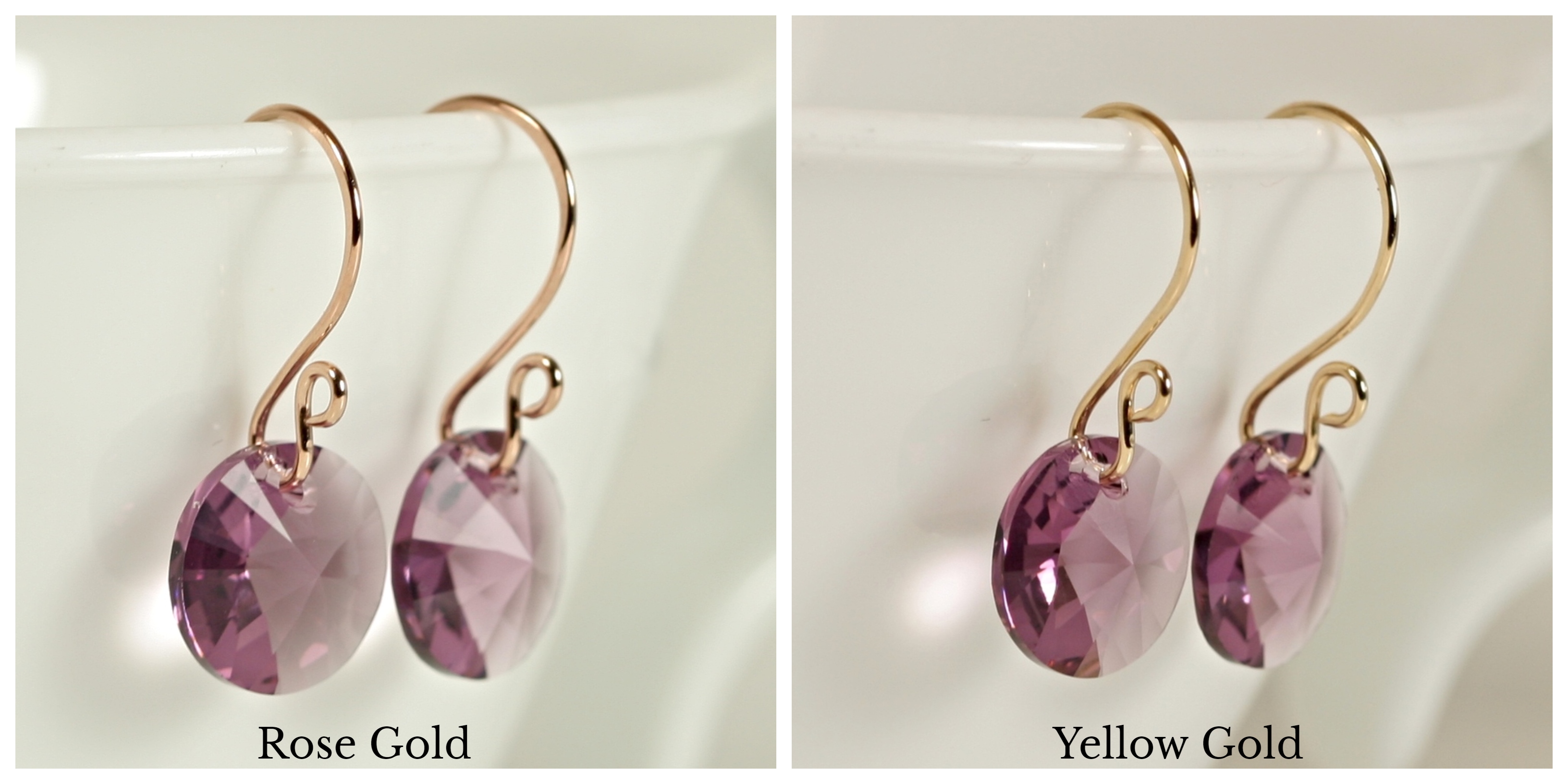 HOW THEY'RE MADE: Each crystal is hung from a handmade 14K gold filled ear wire which has been formed by hand, hammered for strength, and tumbled to a mirrored shine. Gold filled wire is a hollow tube of 14 karat gold that is filled with brass for durability, so all the metal outside is 14K gold; gold filled wire will not wear off like gold plating and will last a lifetime.