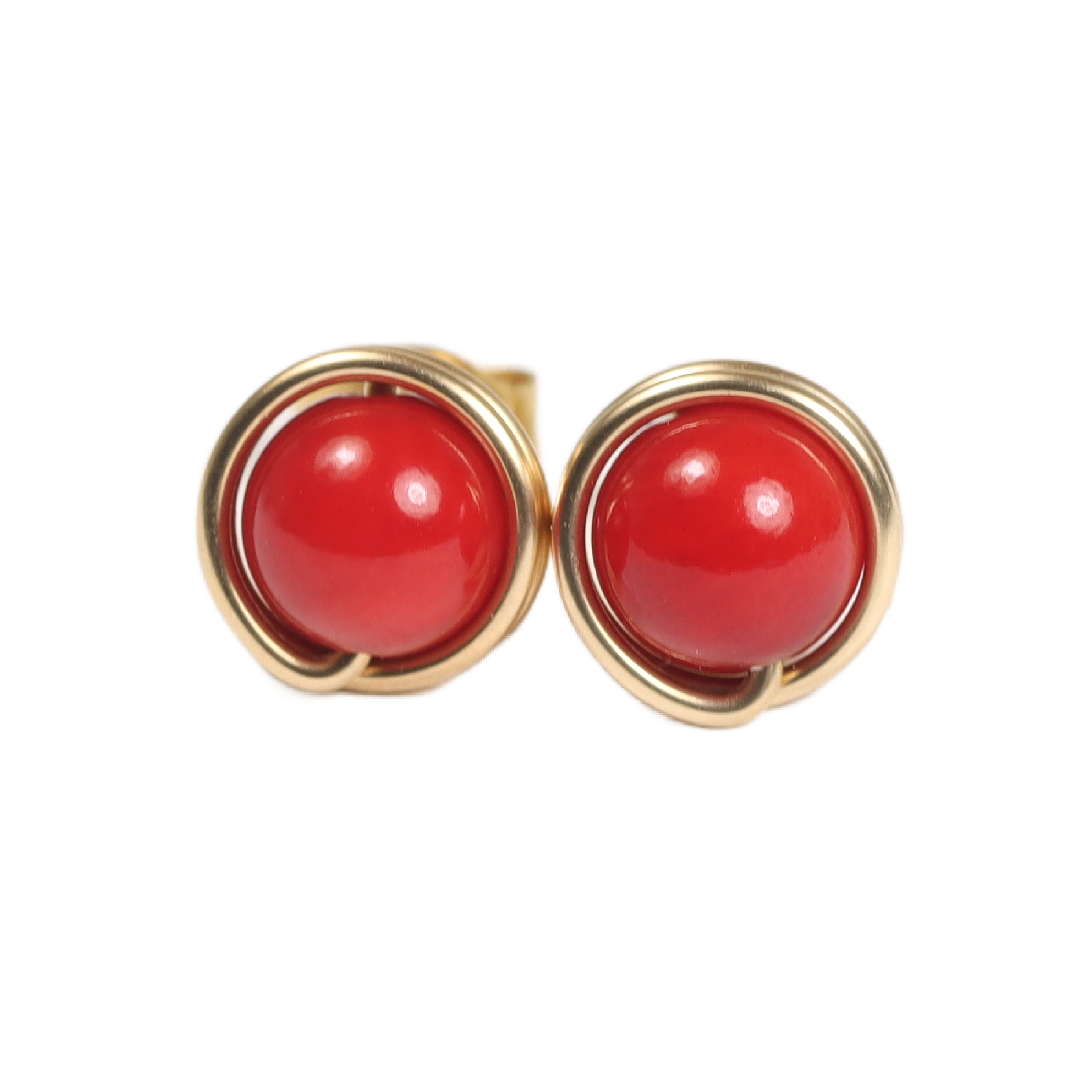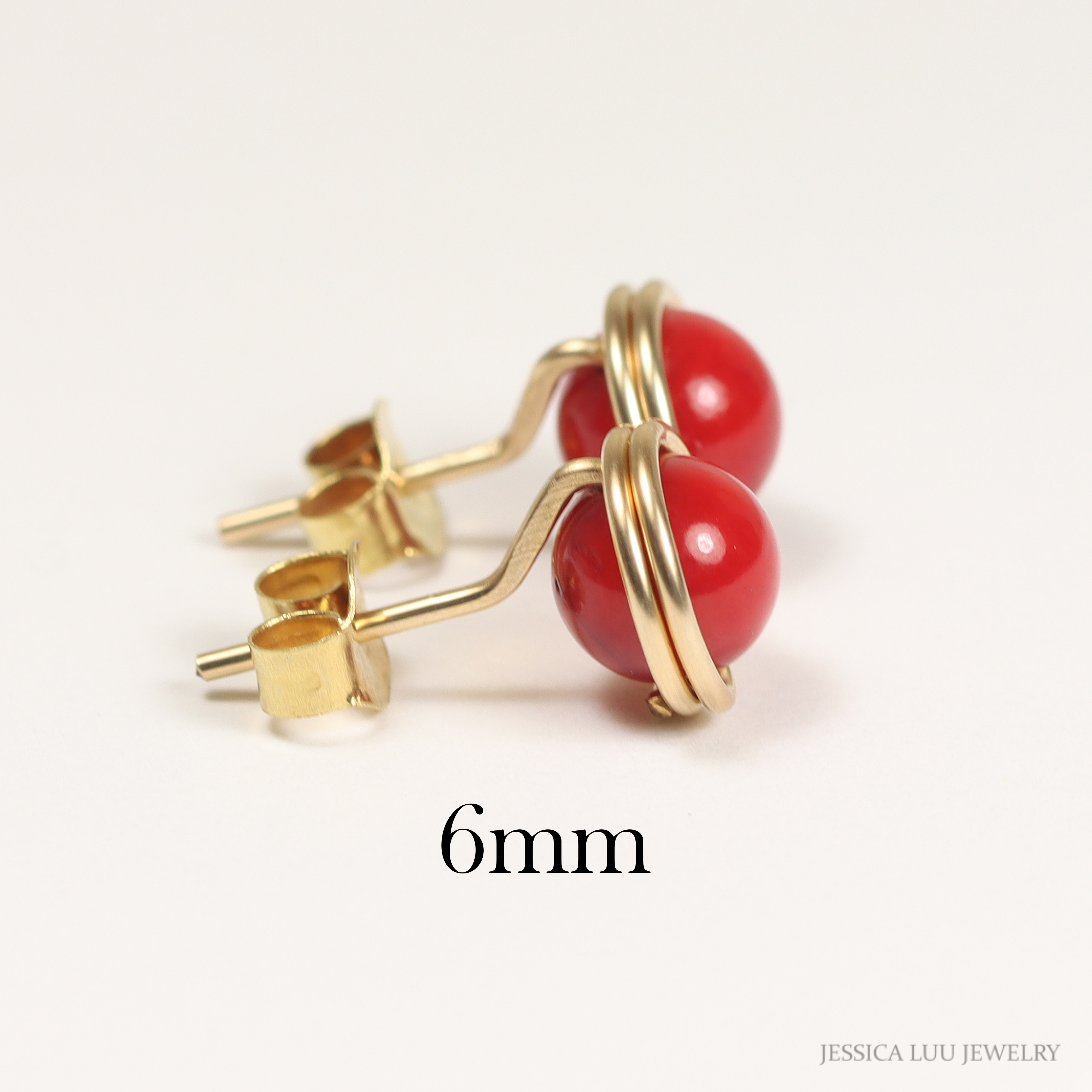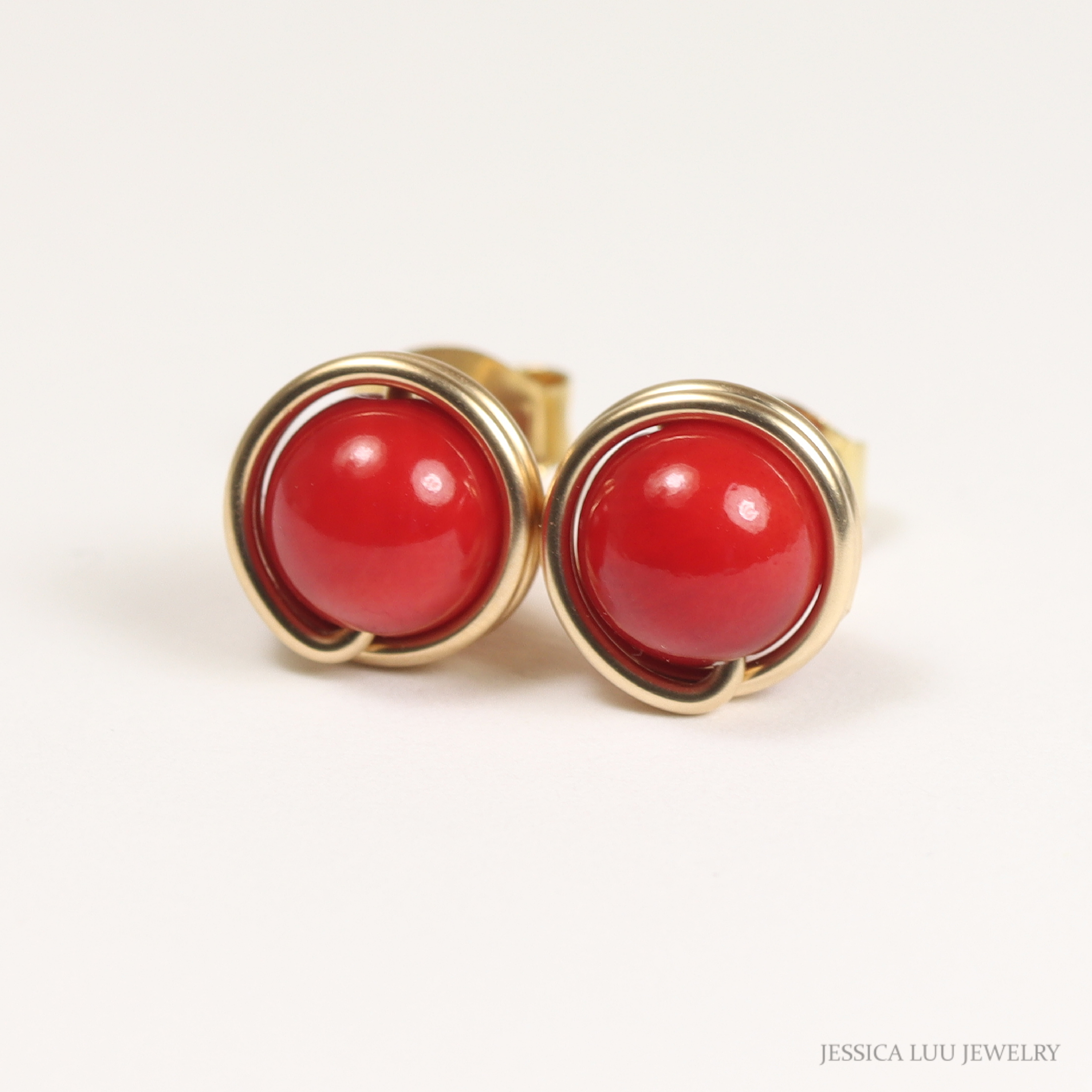 Red Coral Stud Earrings Handmade by Jessica Luu Jewelry