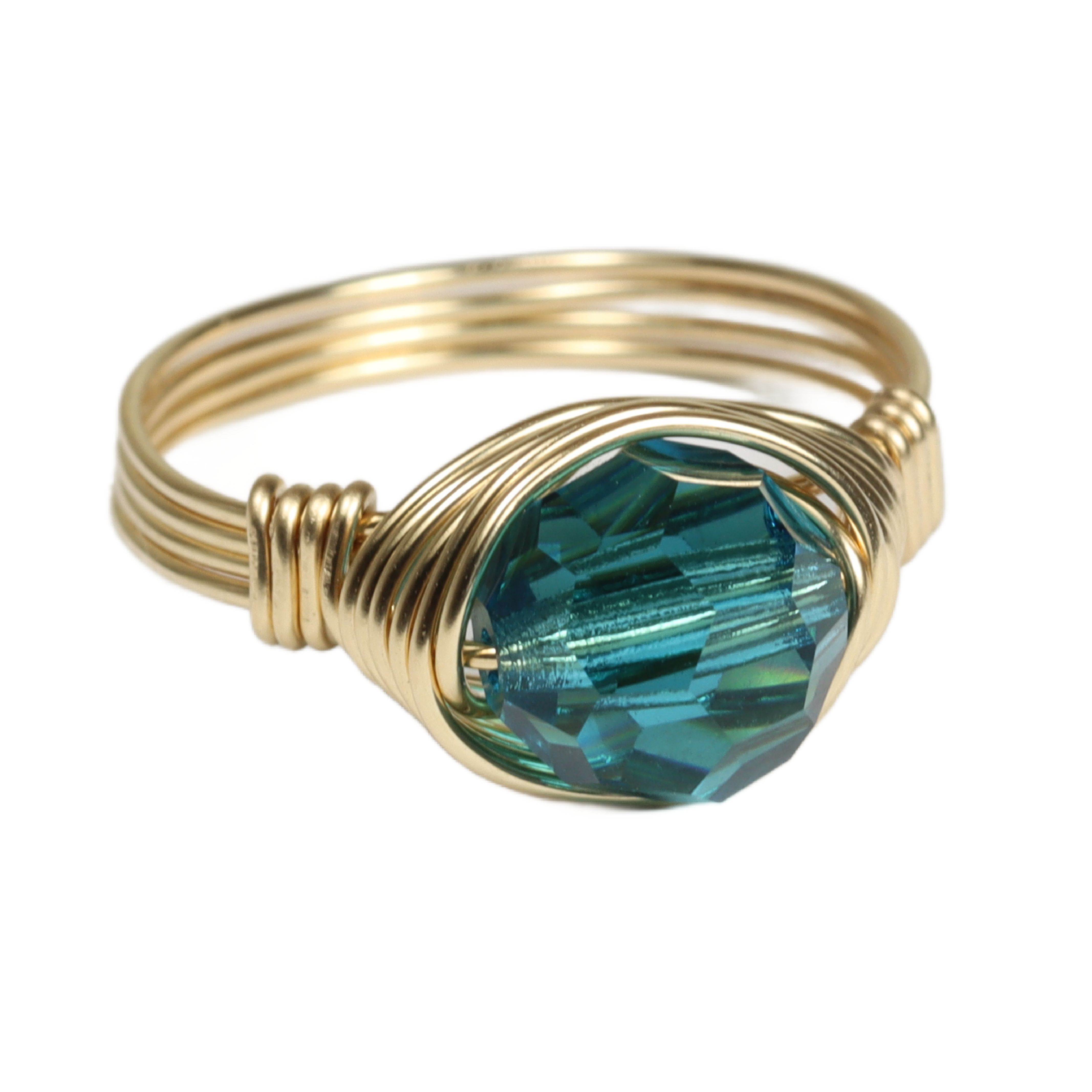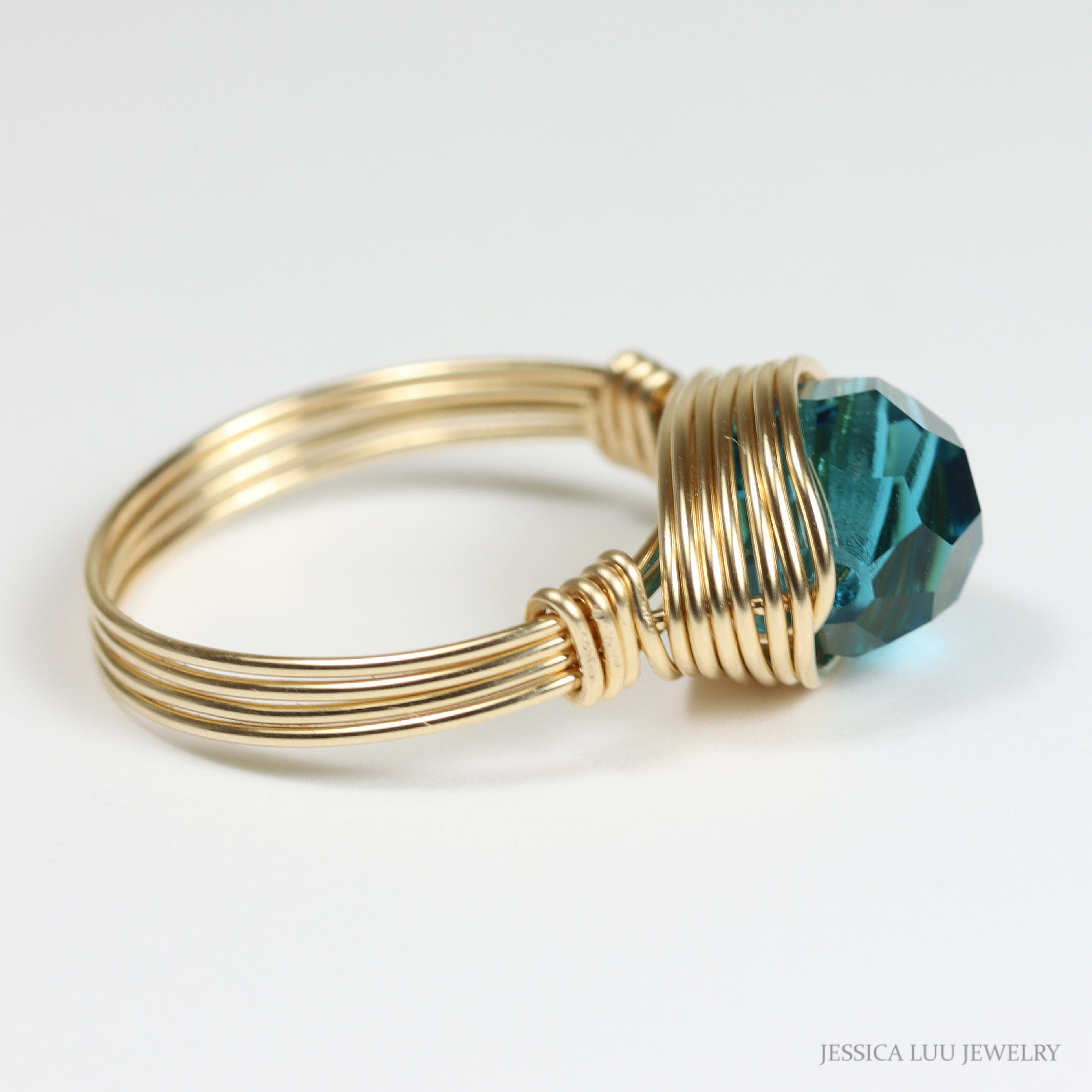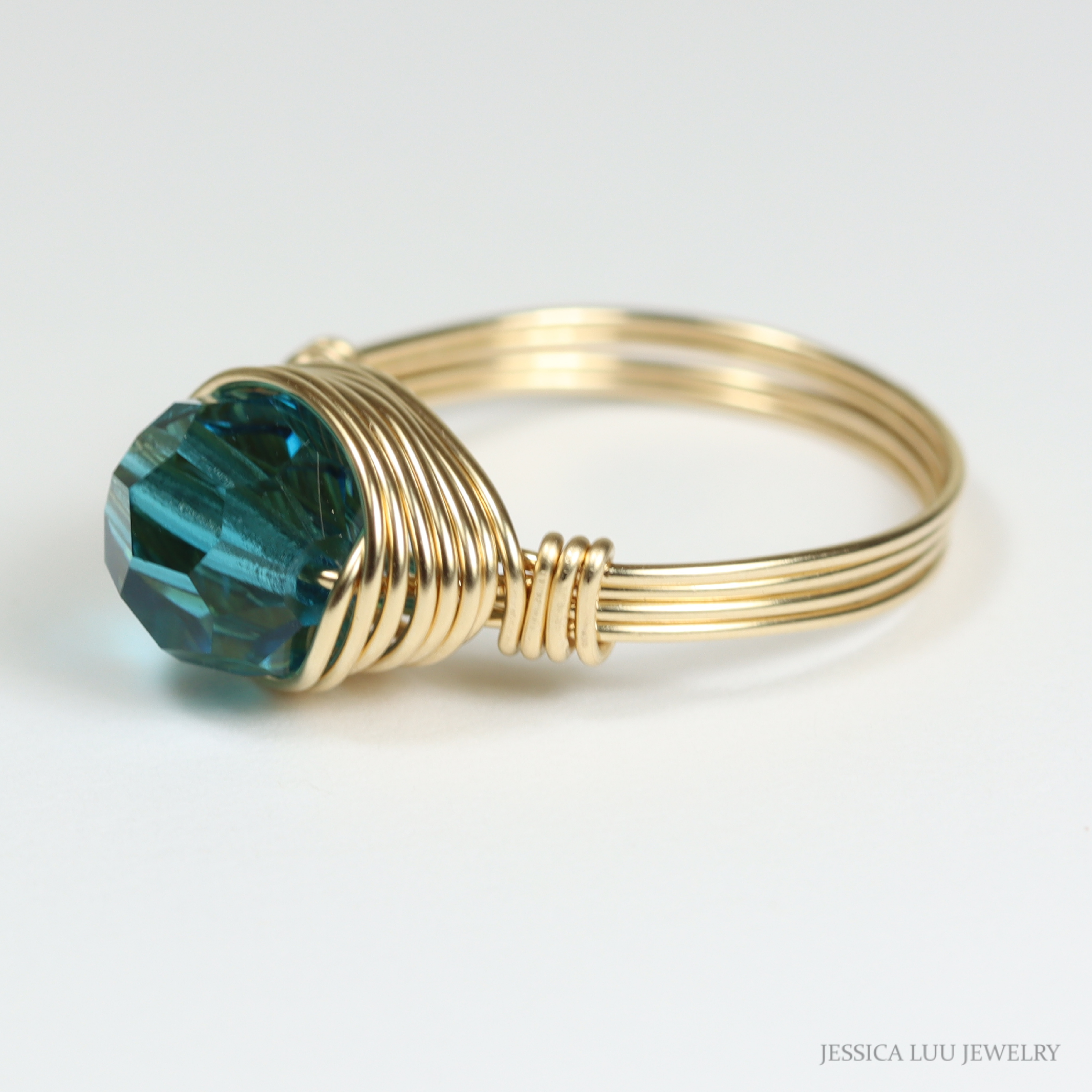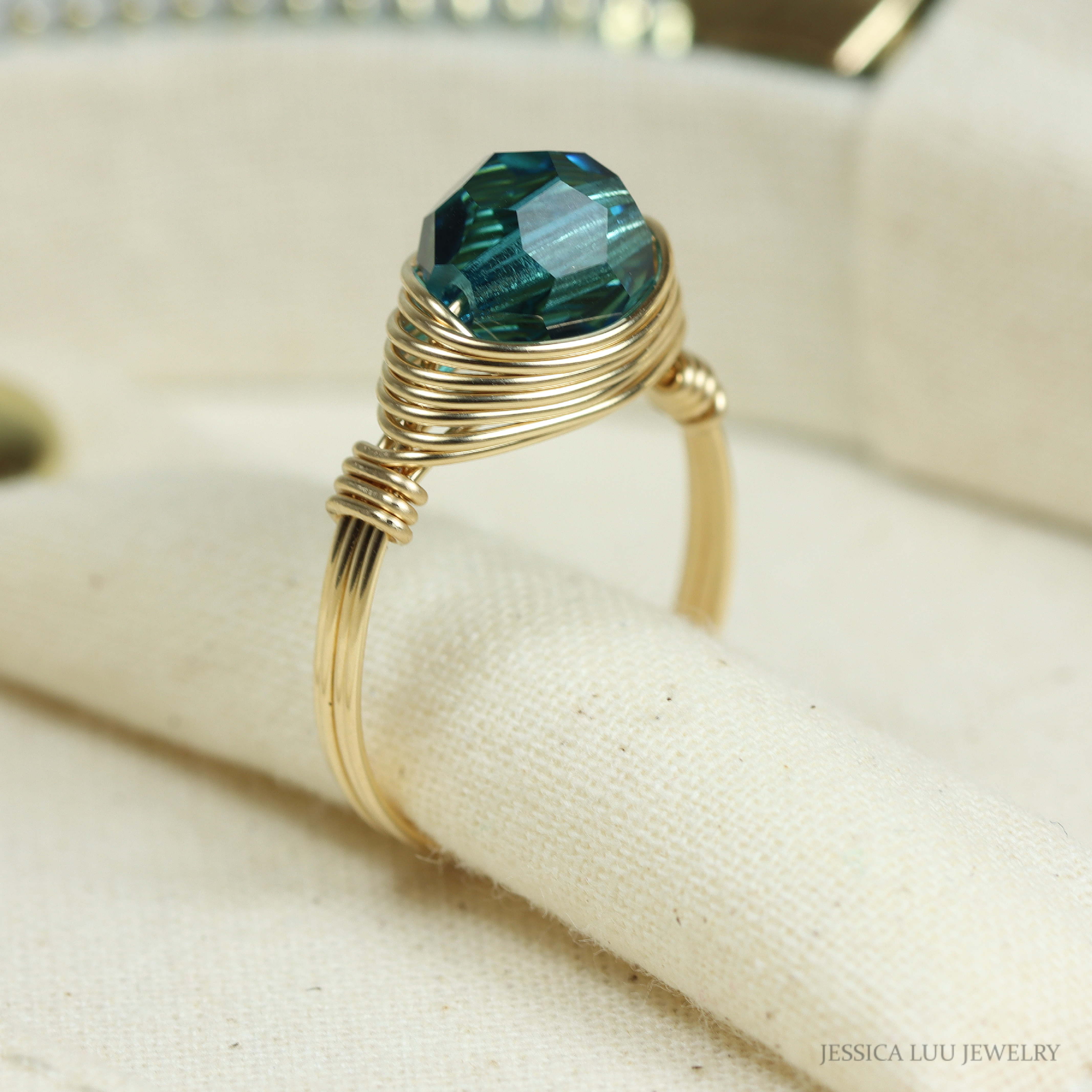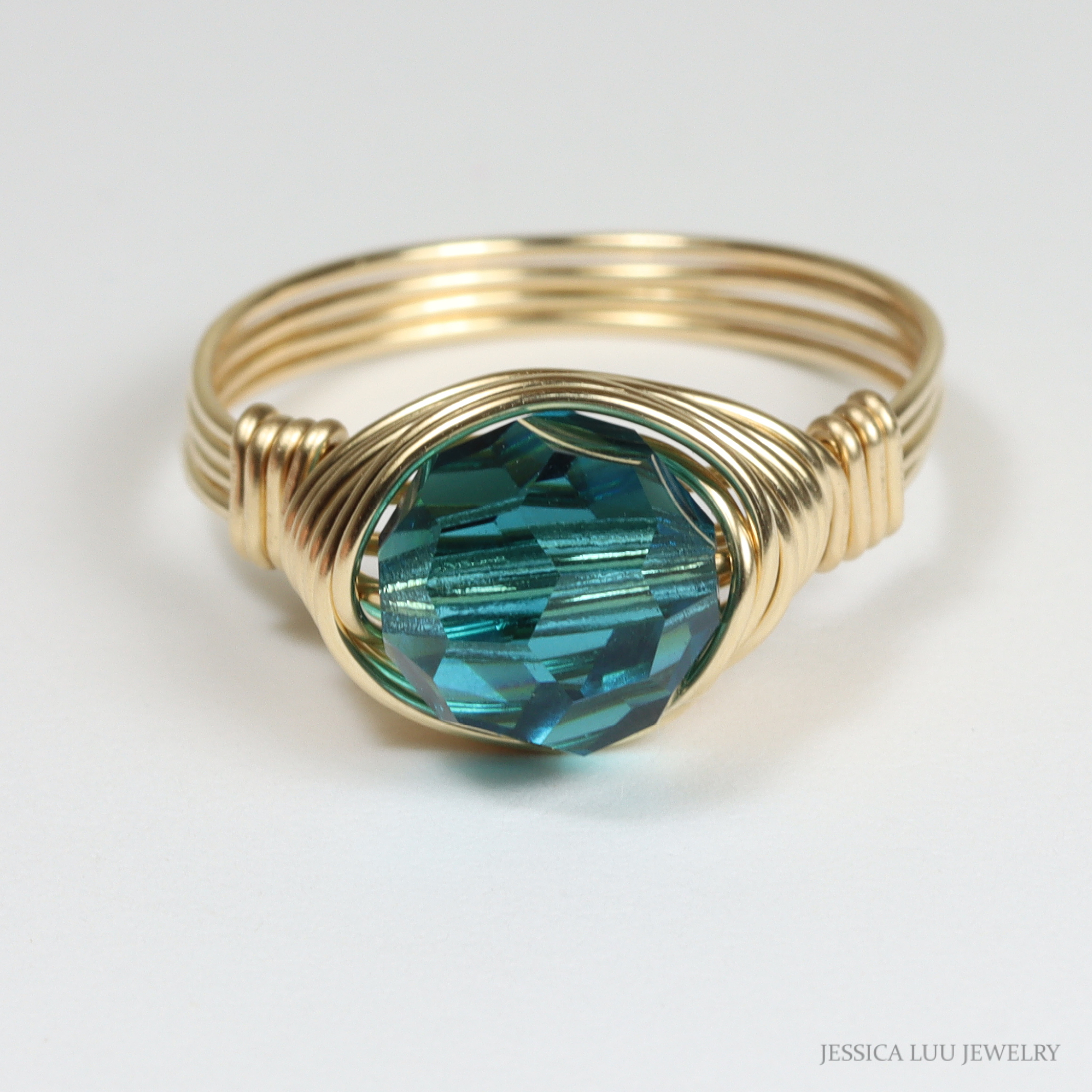 Teal Blue Crystal Ring Handmade by Jessica Luu Jewelry