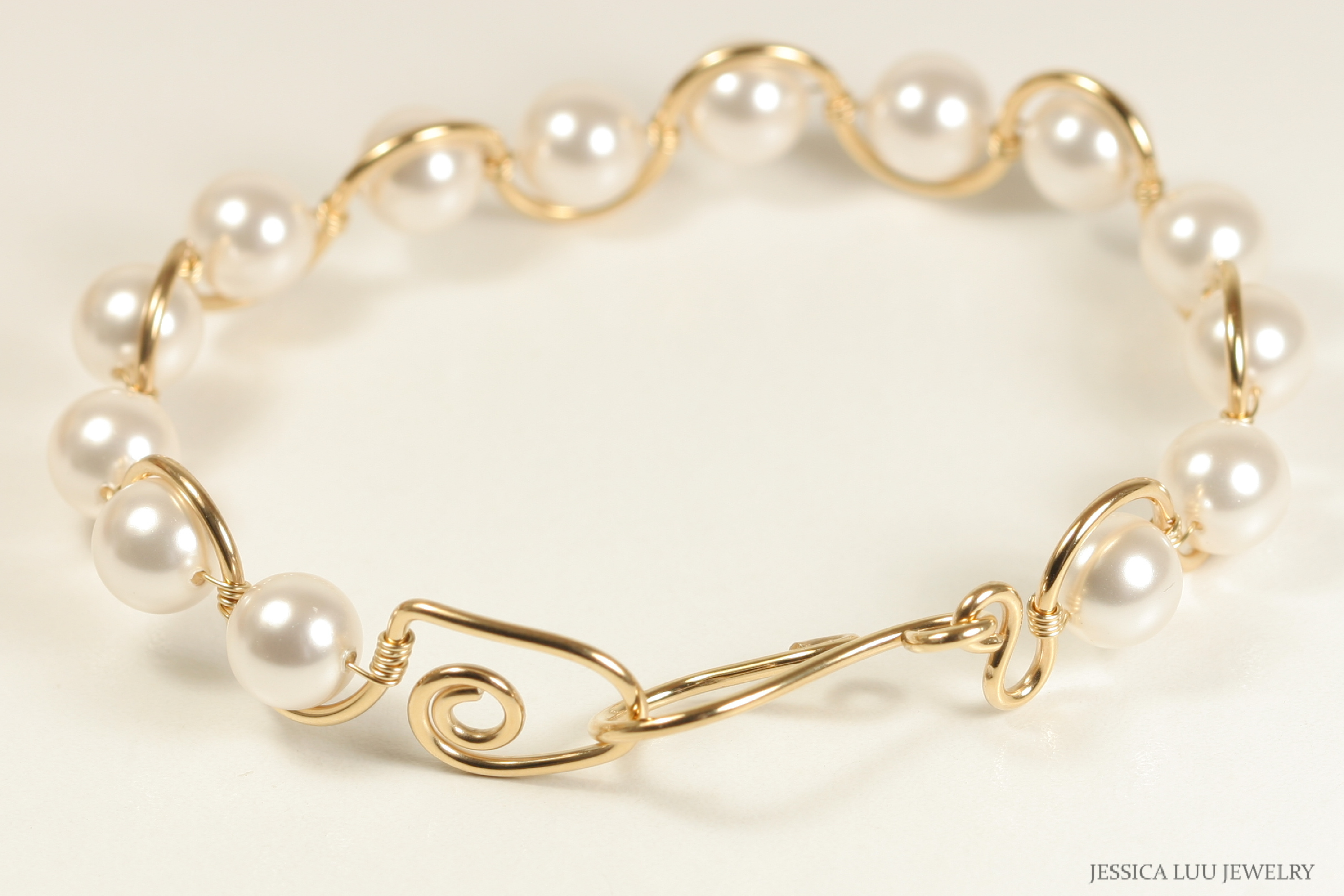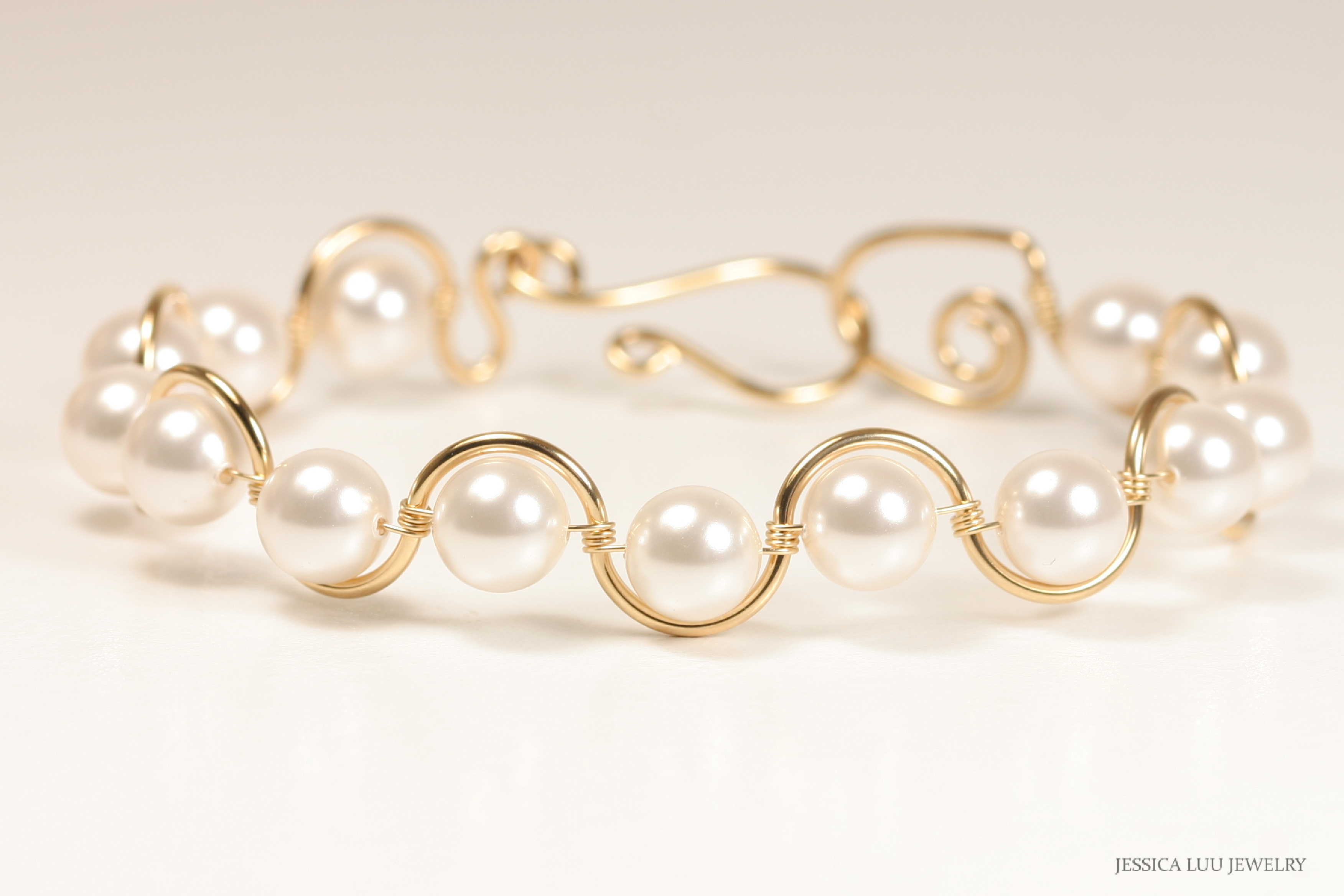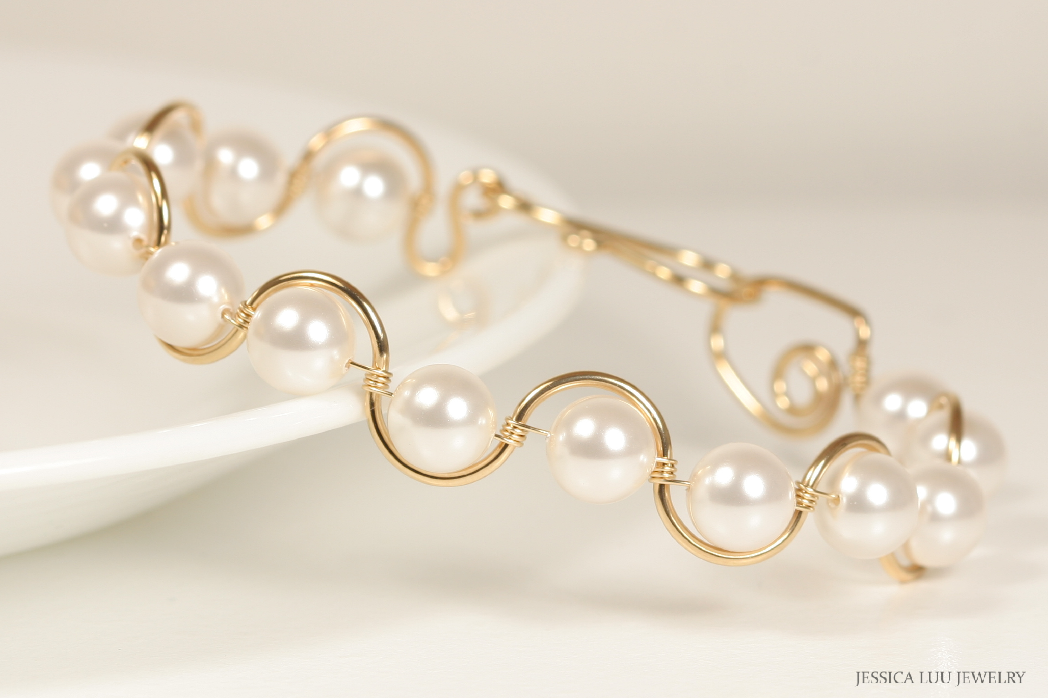 White Pearl Bracelet Handmade by Jessica Luu Jewelry