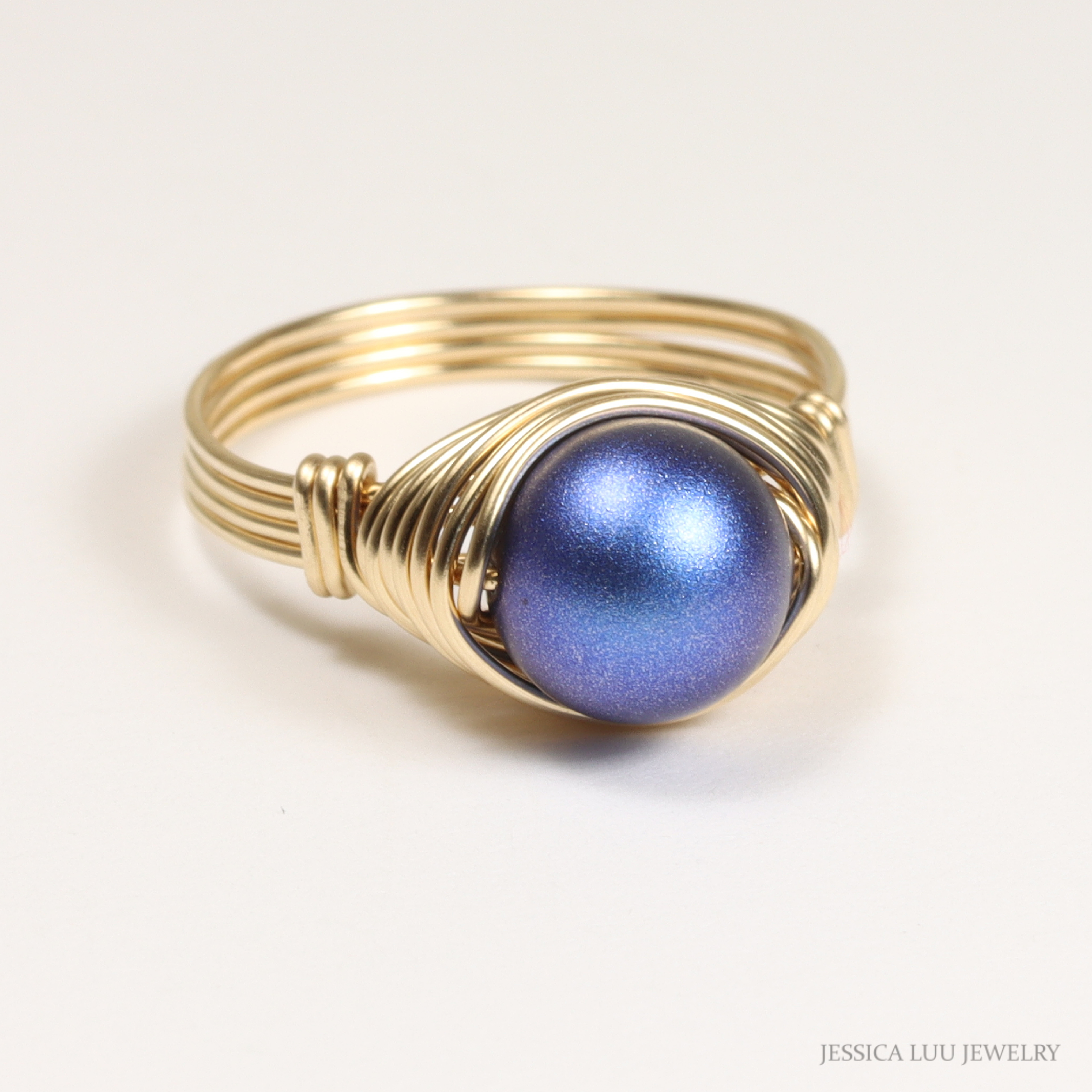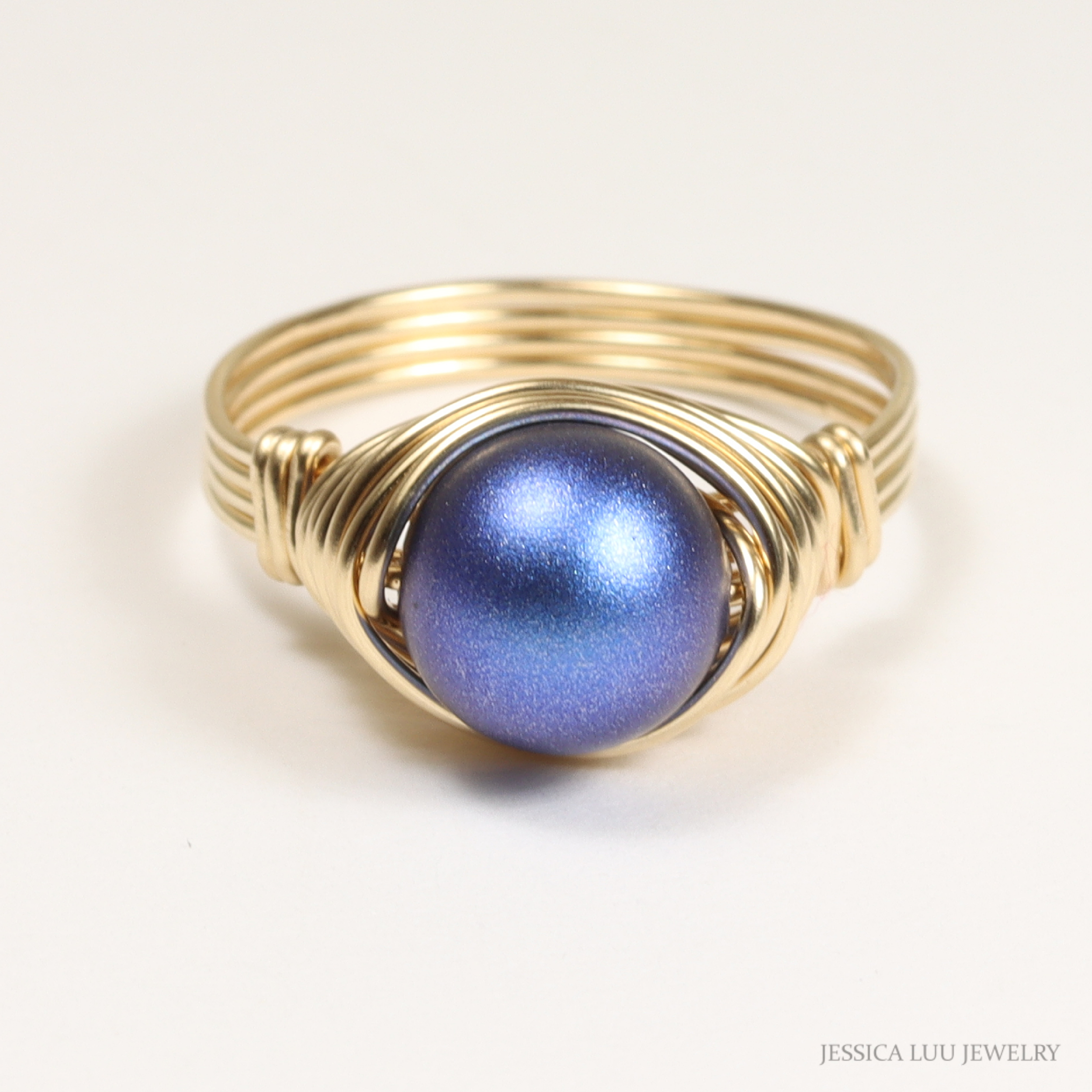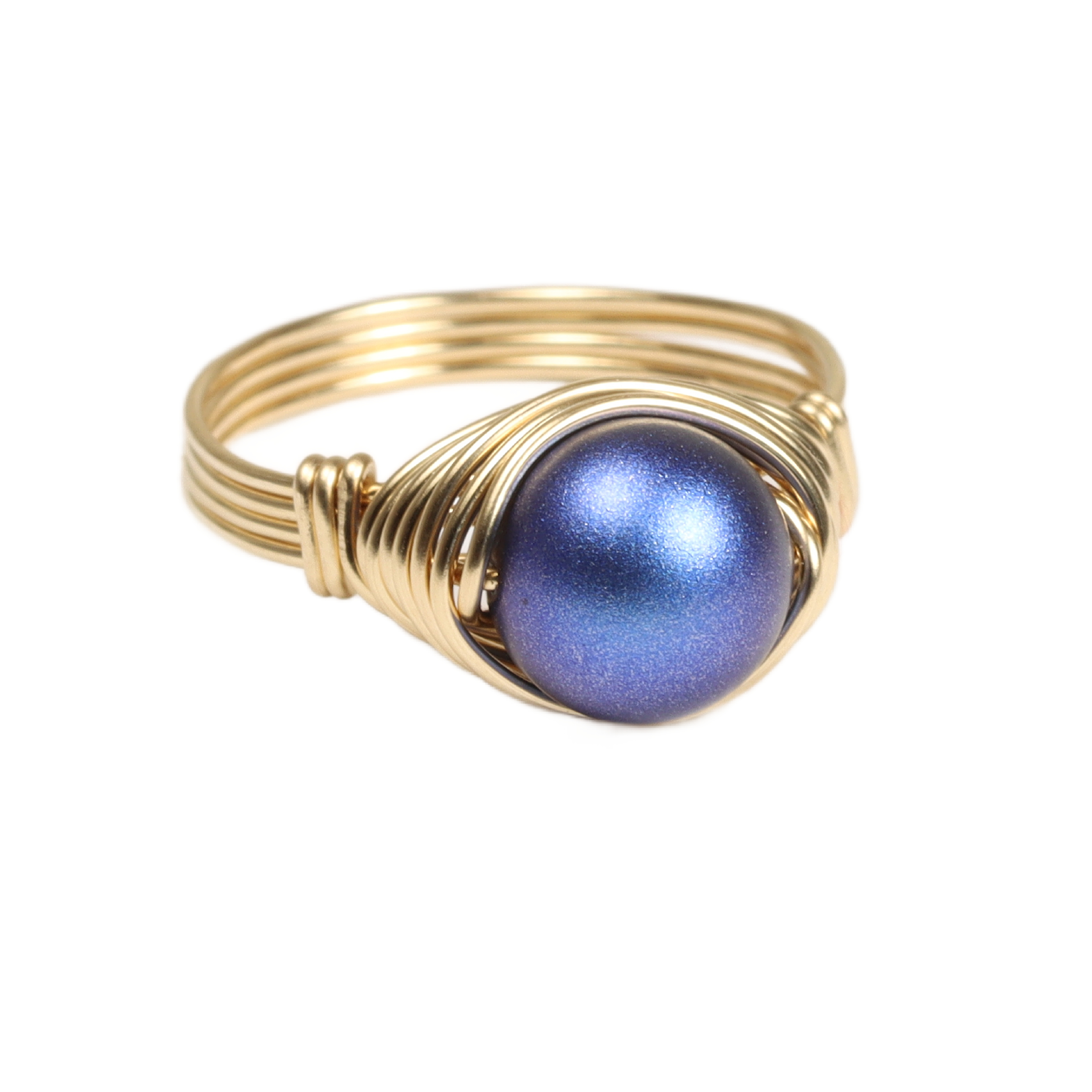 Elevate your style with this exquisite ring featuring an iridescent dark blue pearl solitaire. The 8mm pearl exudes a mesmerizing depth of color, catching the light with its lustrous sheen. Expertly wrapped in 14K yellow or rose gold-filled wire, this handcrafted piece showcases exceptional craftsmanship. The delicate wire design adds a touch of elegance, making it a versatile accessory for any occasion. With its timeless beauty and quality construction, this ring is a captivating addition to your jewelry collection.