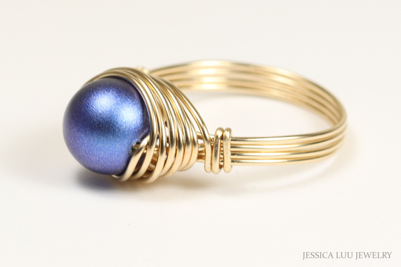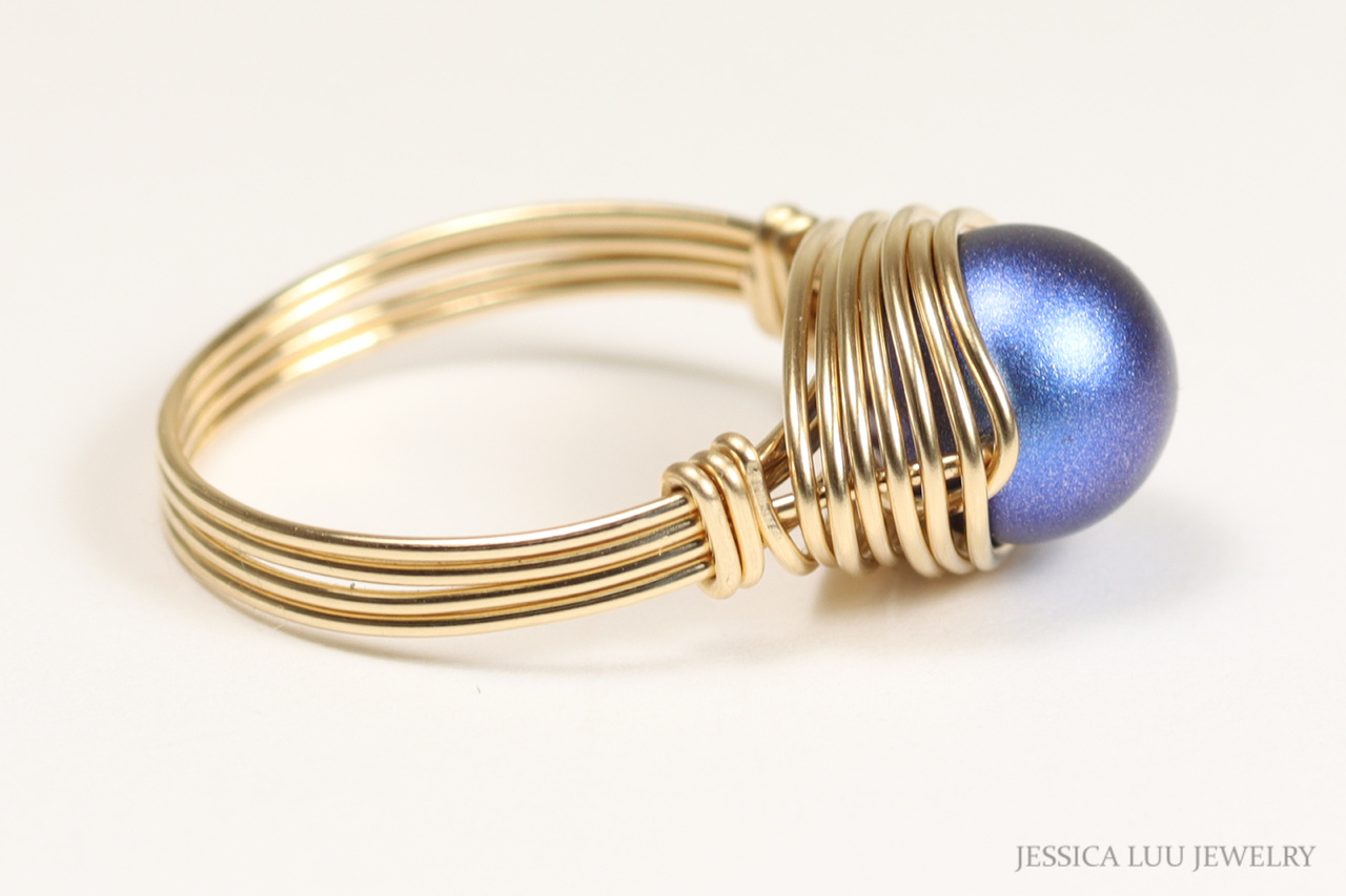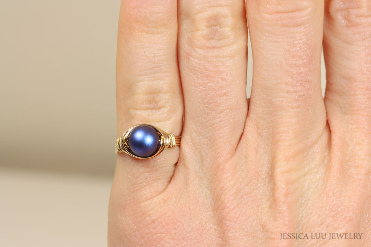 Cobalt Blue Pearl Ring in Yellow or Rose Gold Handmade by Jessica Luu Jewelry