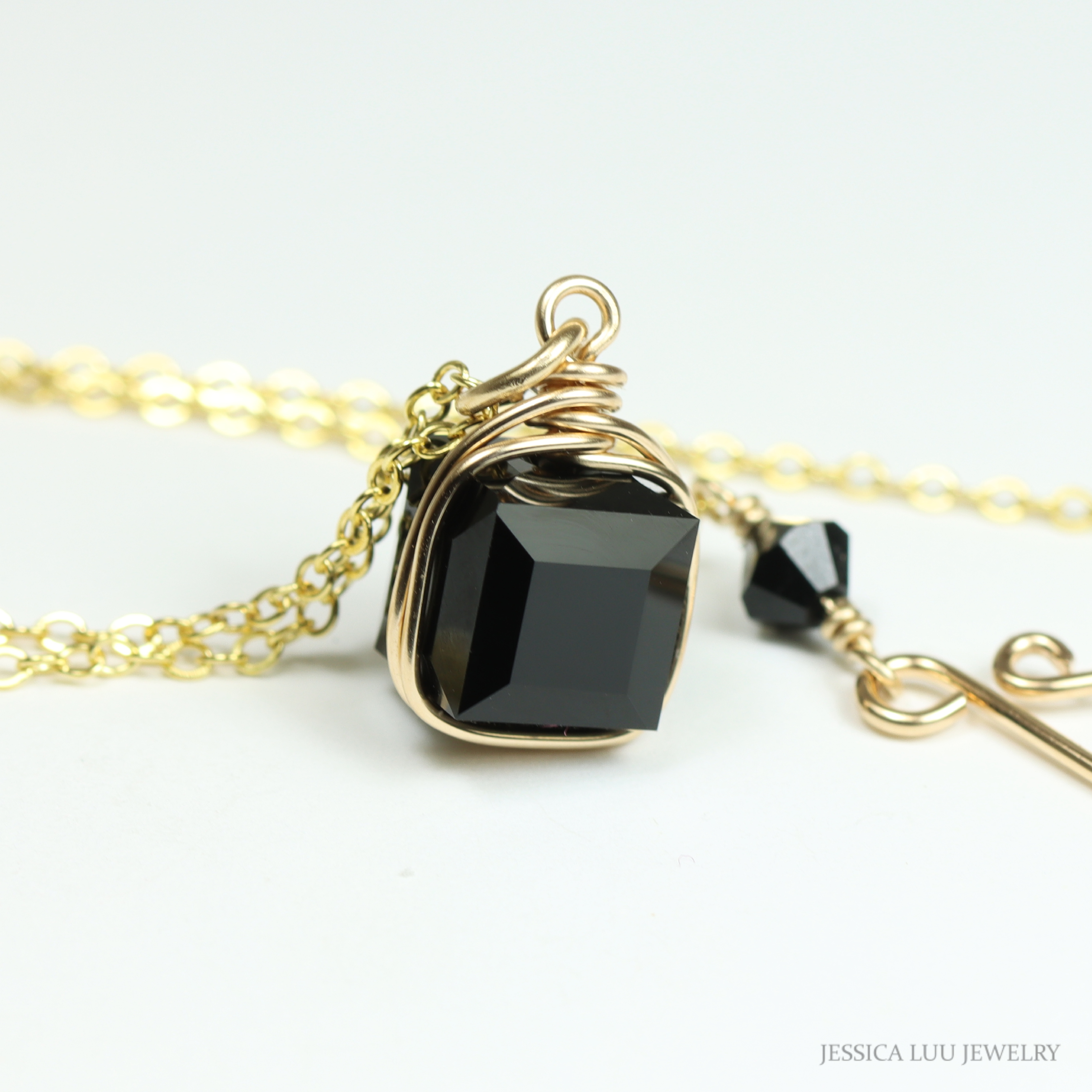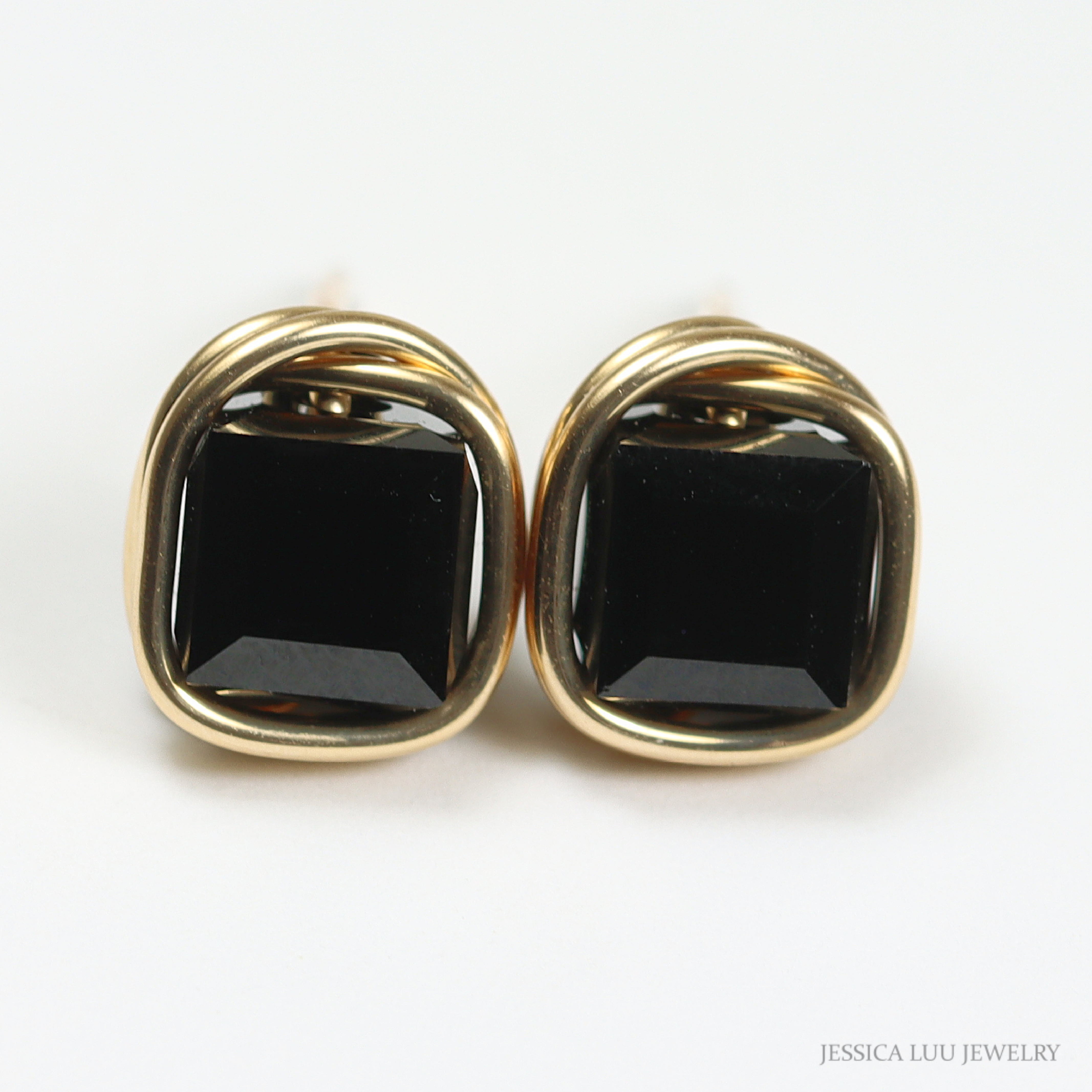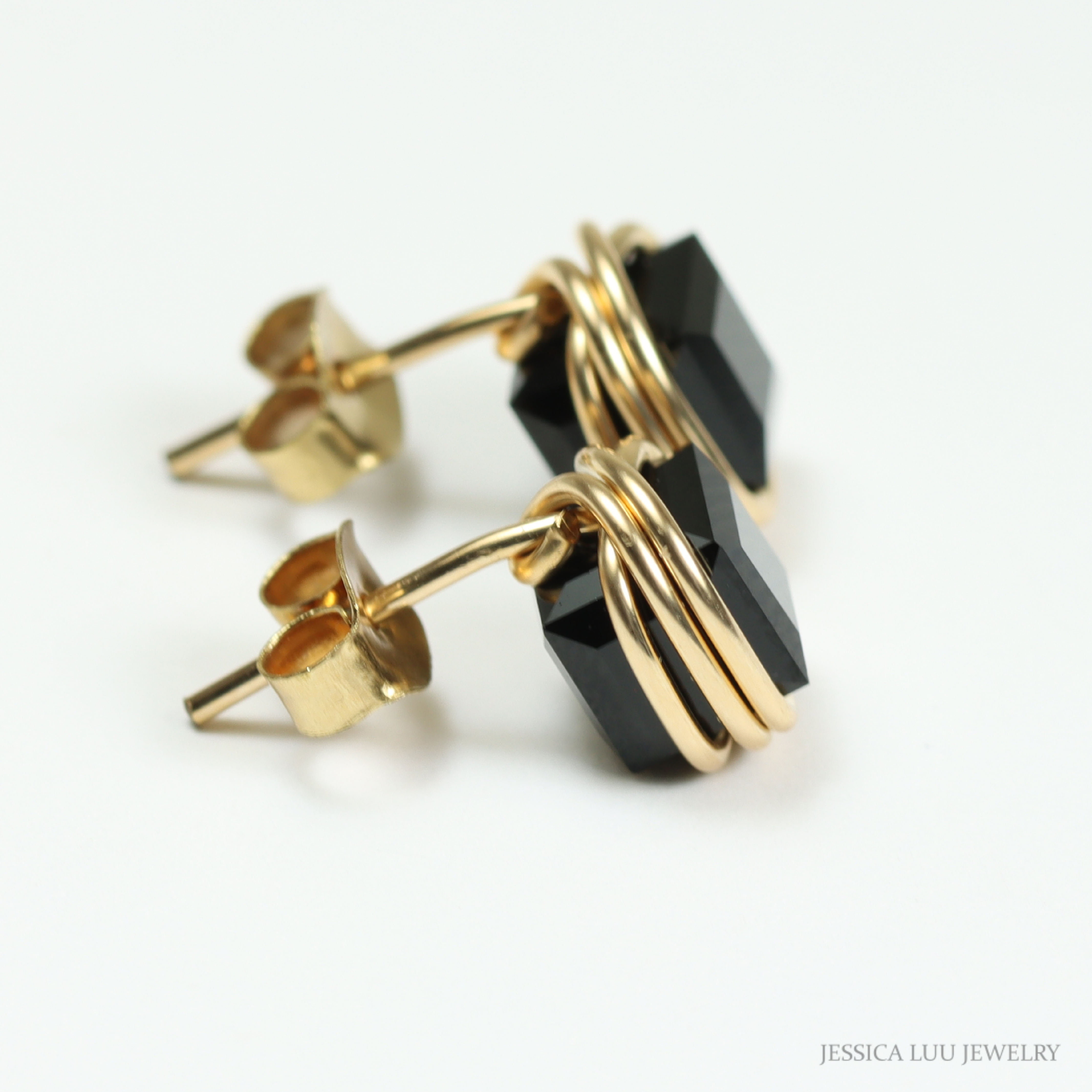 Gold Black Crystal Earrings Handmade by Jessica Luu Jewelry