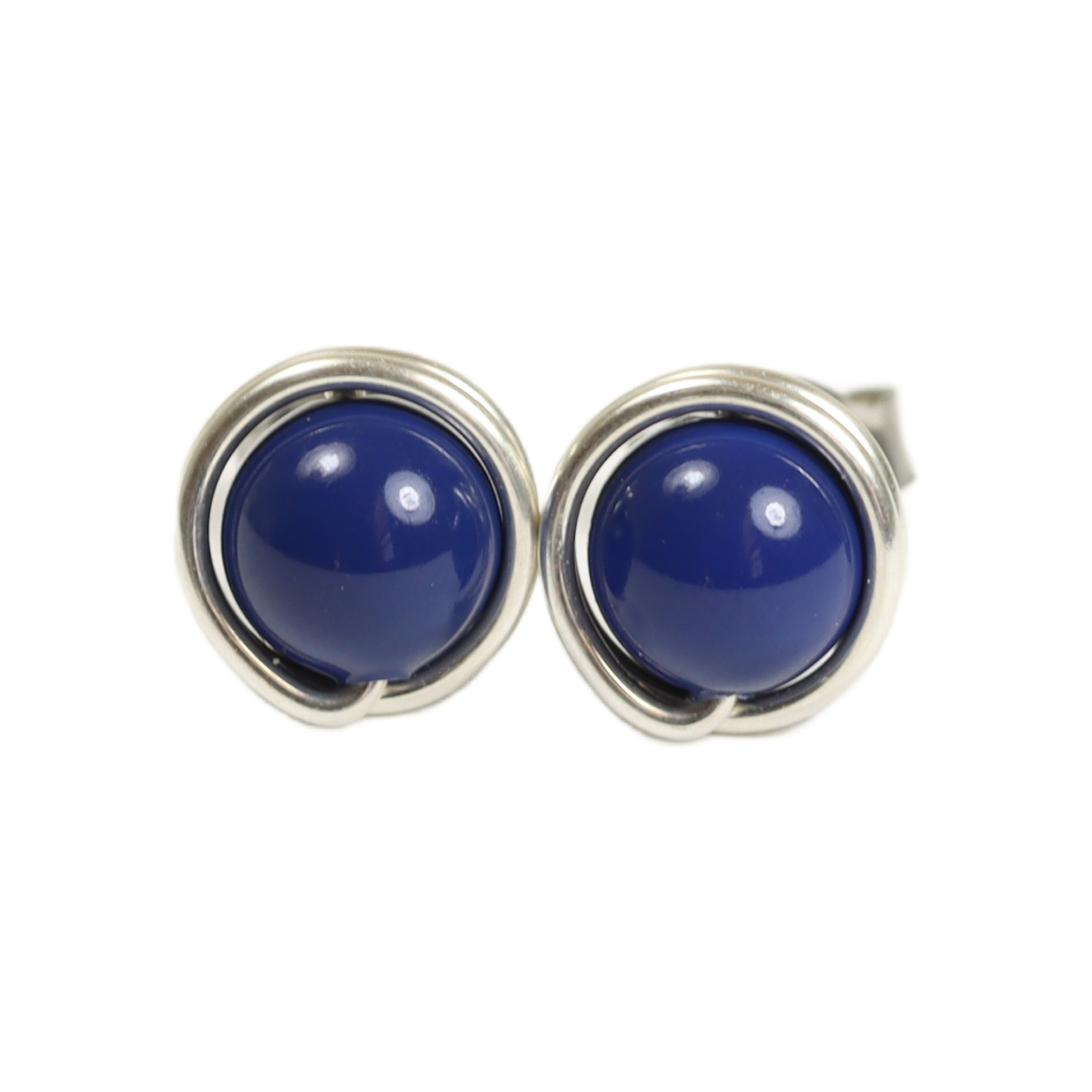 Dark Lapis Pearl Stud Earrings Handmade by Jessica Luu Jewelry