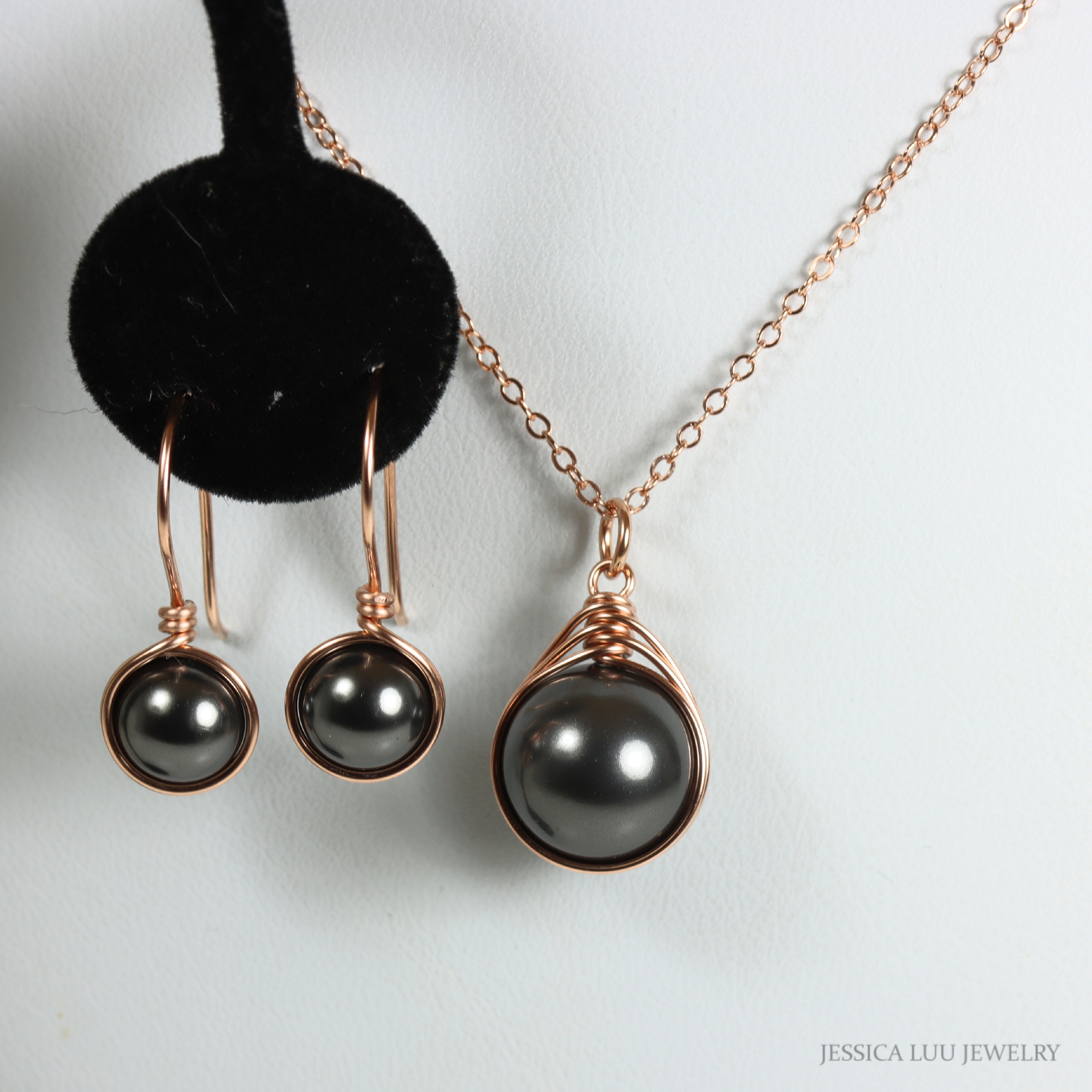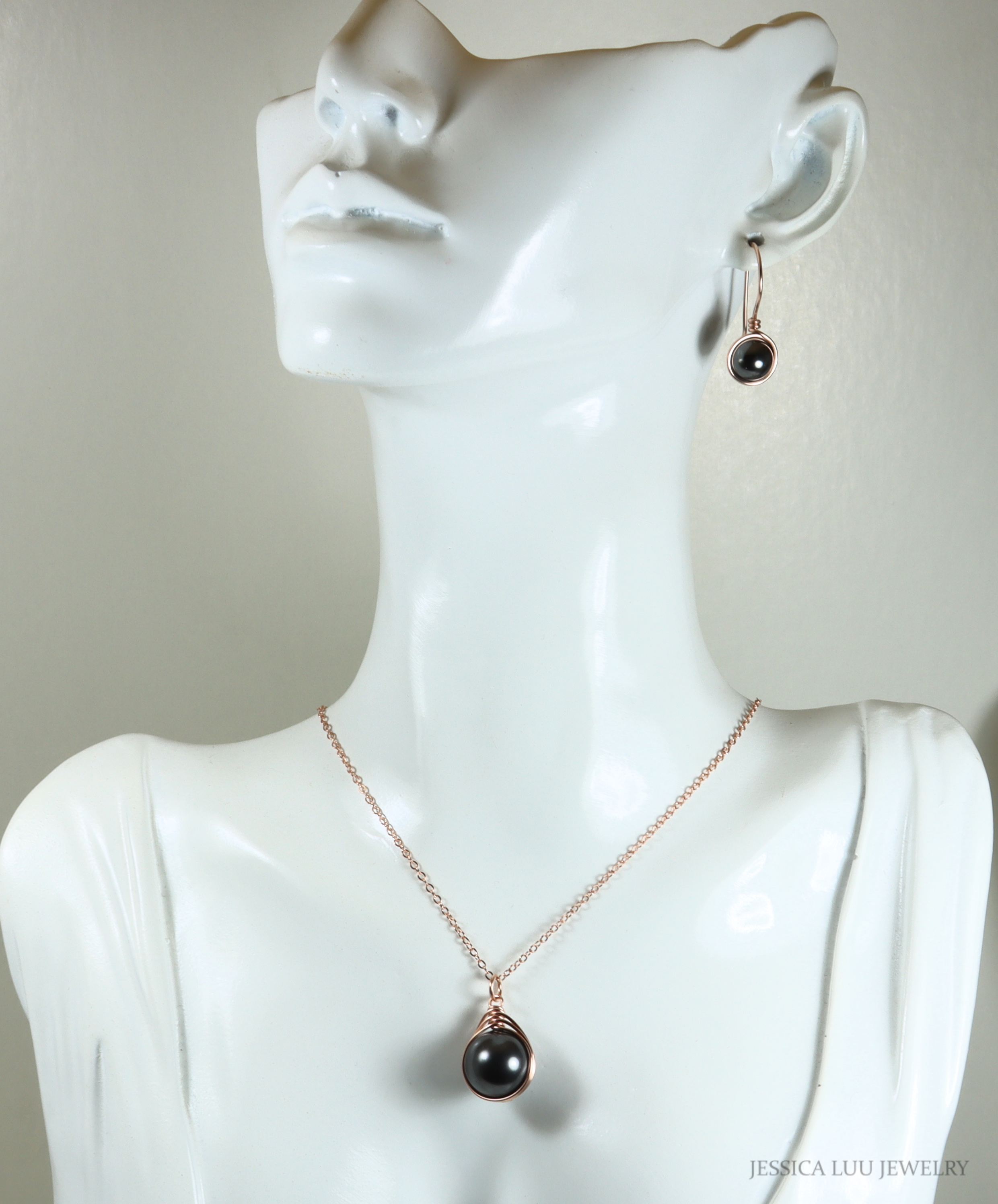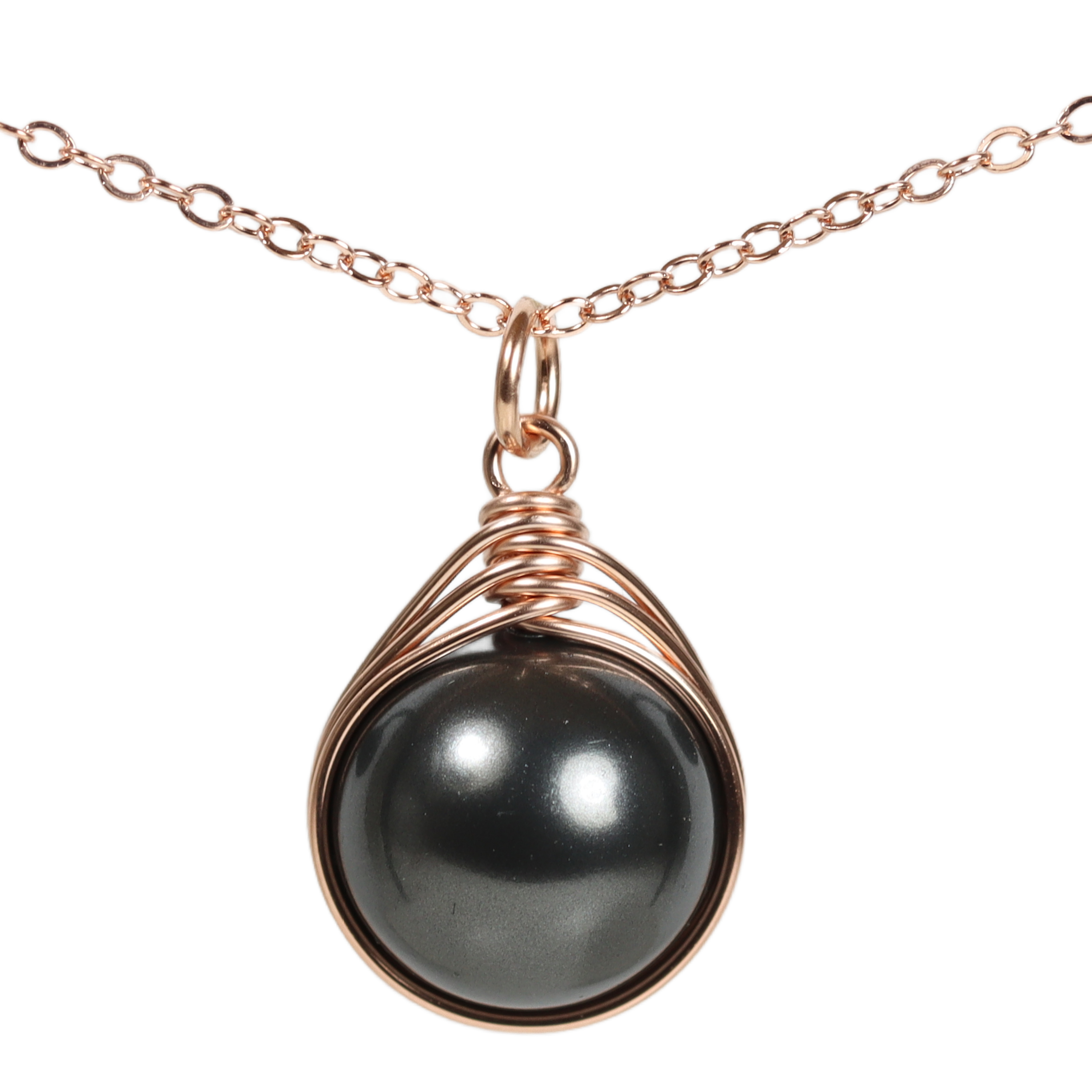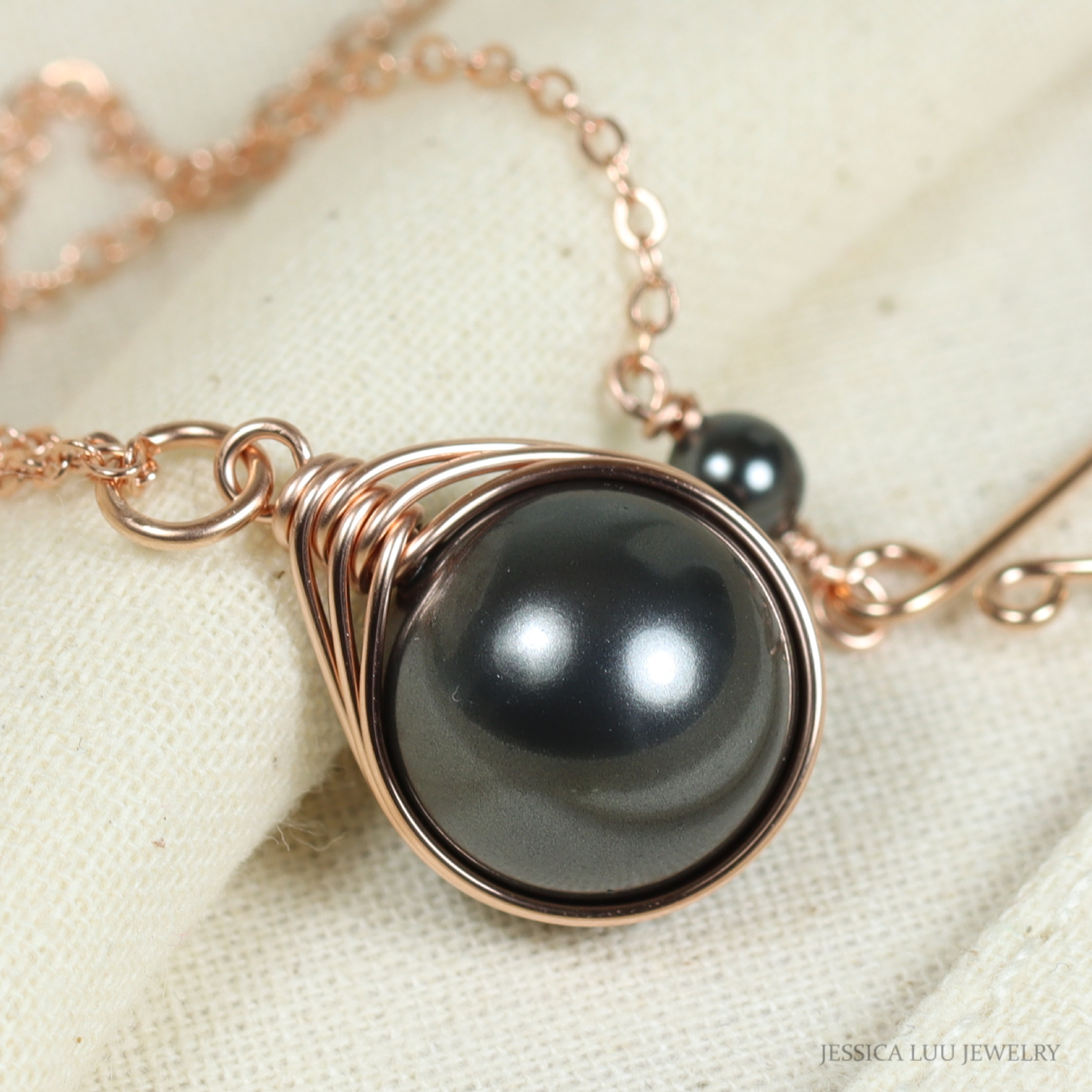 Rose Gold Black Pearl Necklace Handmade by Jessica Luu Jewelry