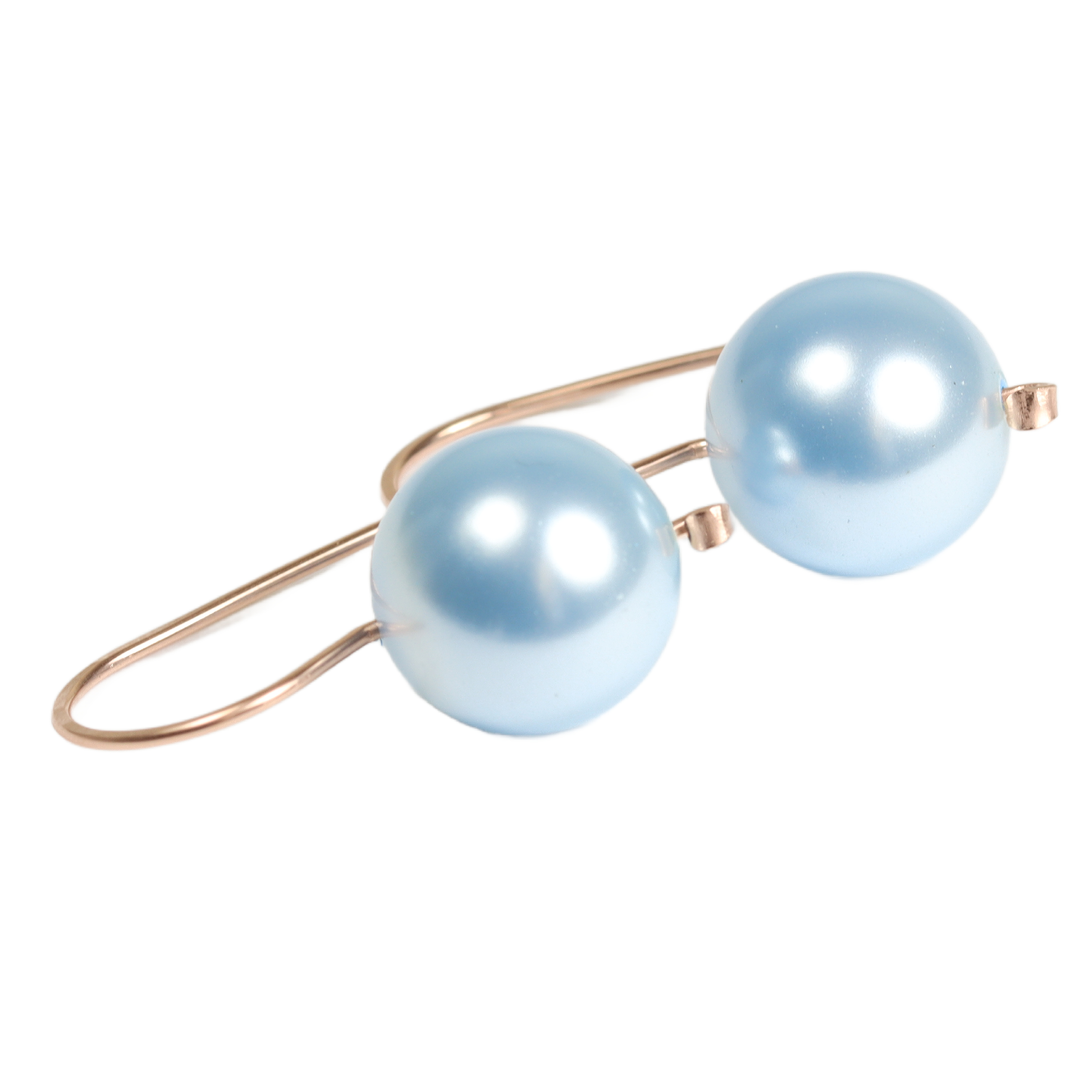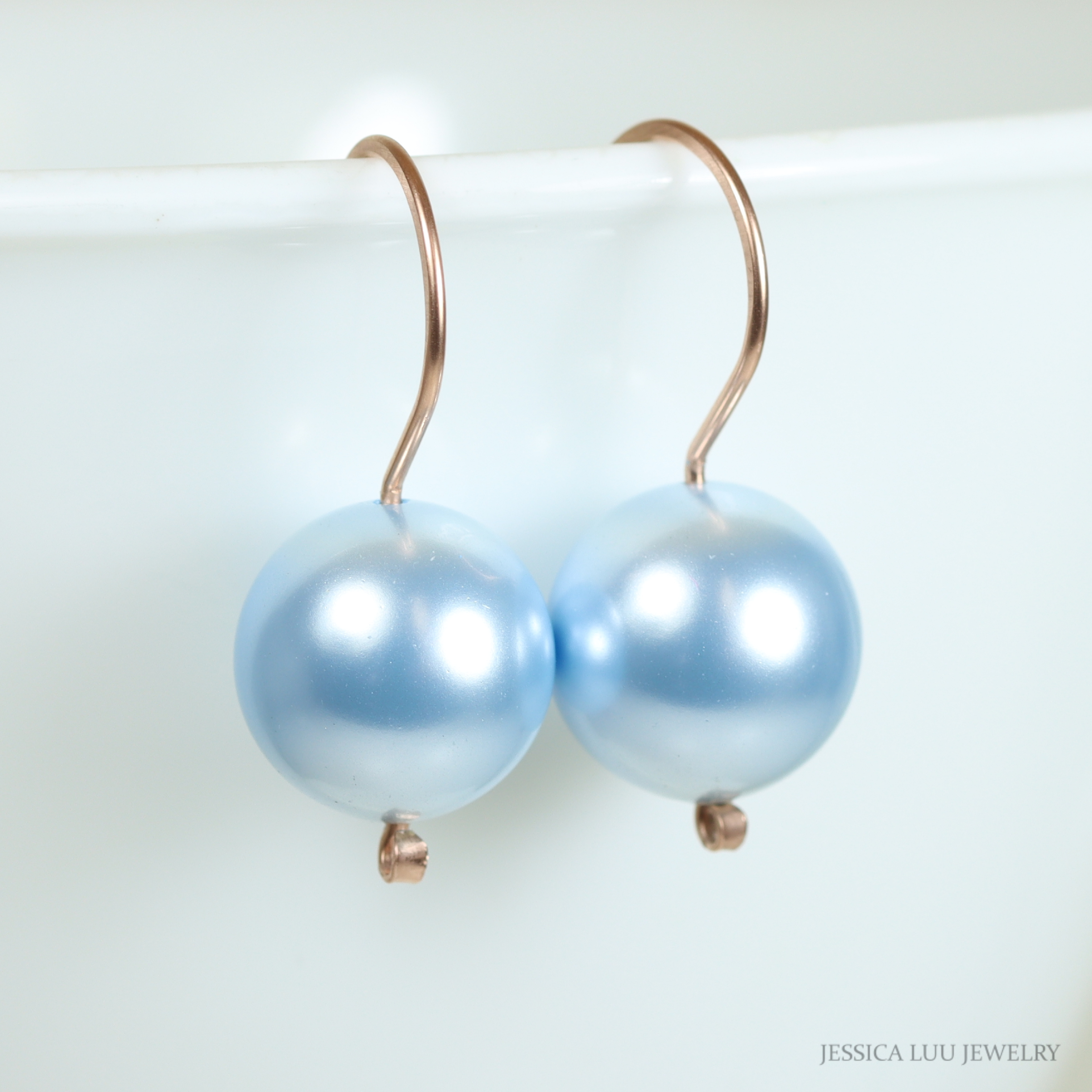 Rose Gold Light Blue Pearl Drop Earrings Handmade by Jessica Luu Jewelry
