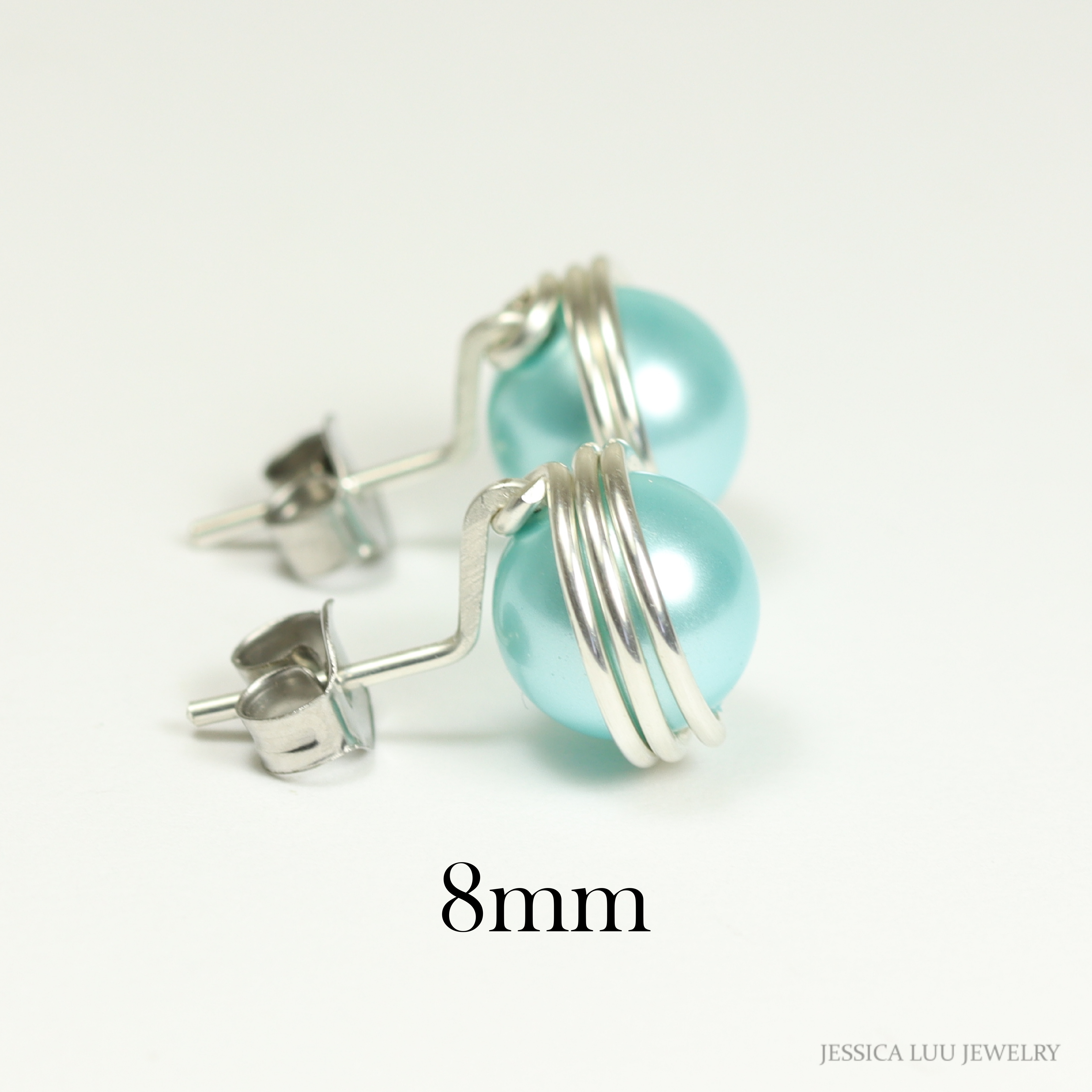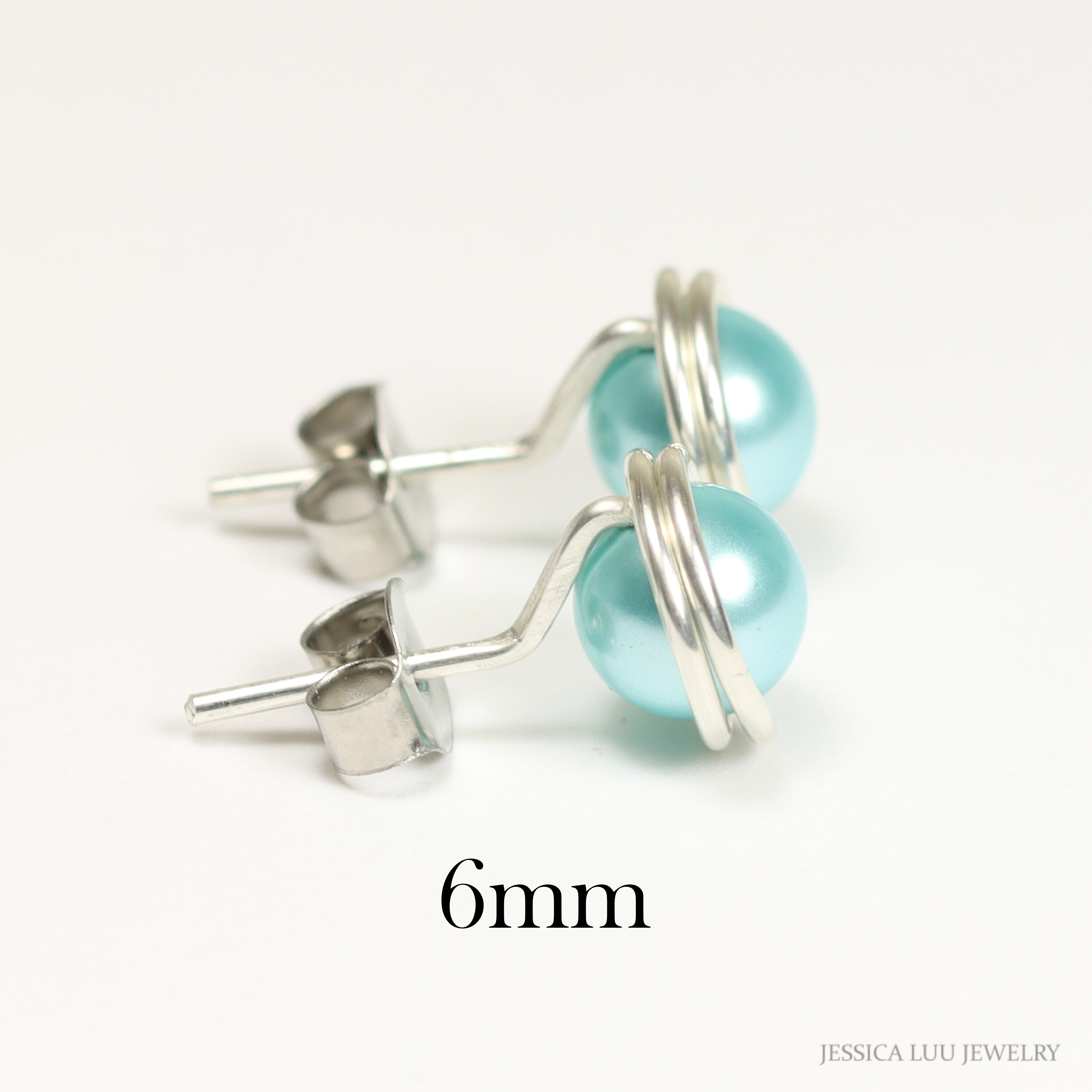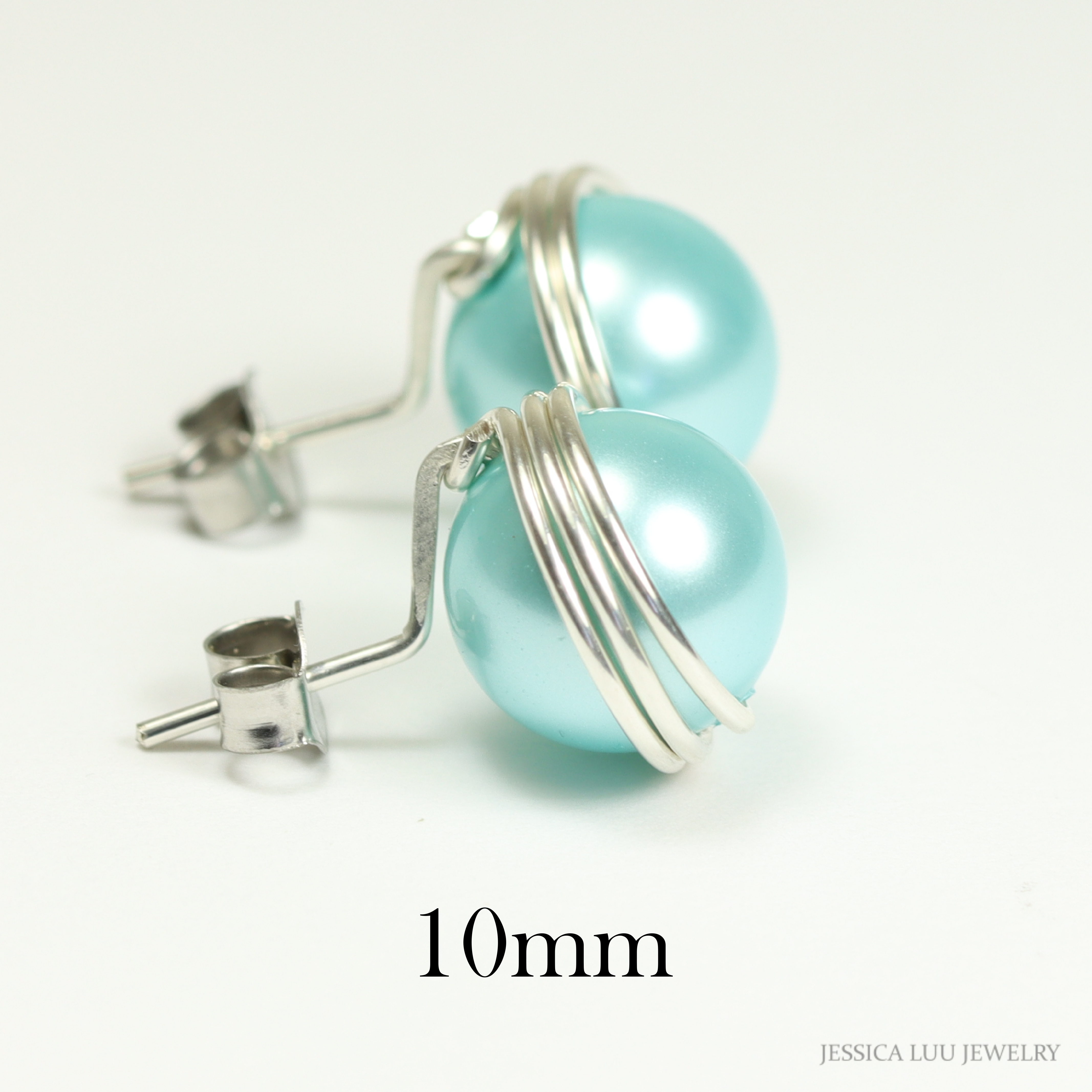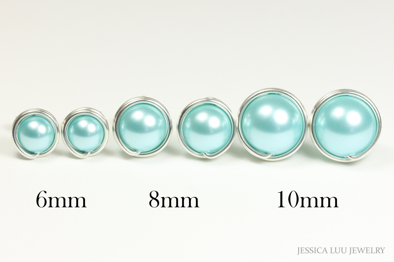 Sterling Silver Aqua Blue Pearl Stud Earrings Handmade by Jessica Luu Jewelry
