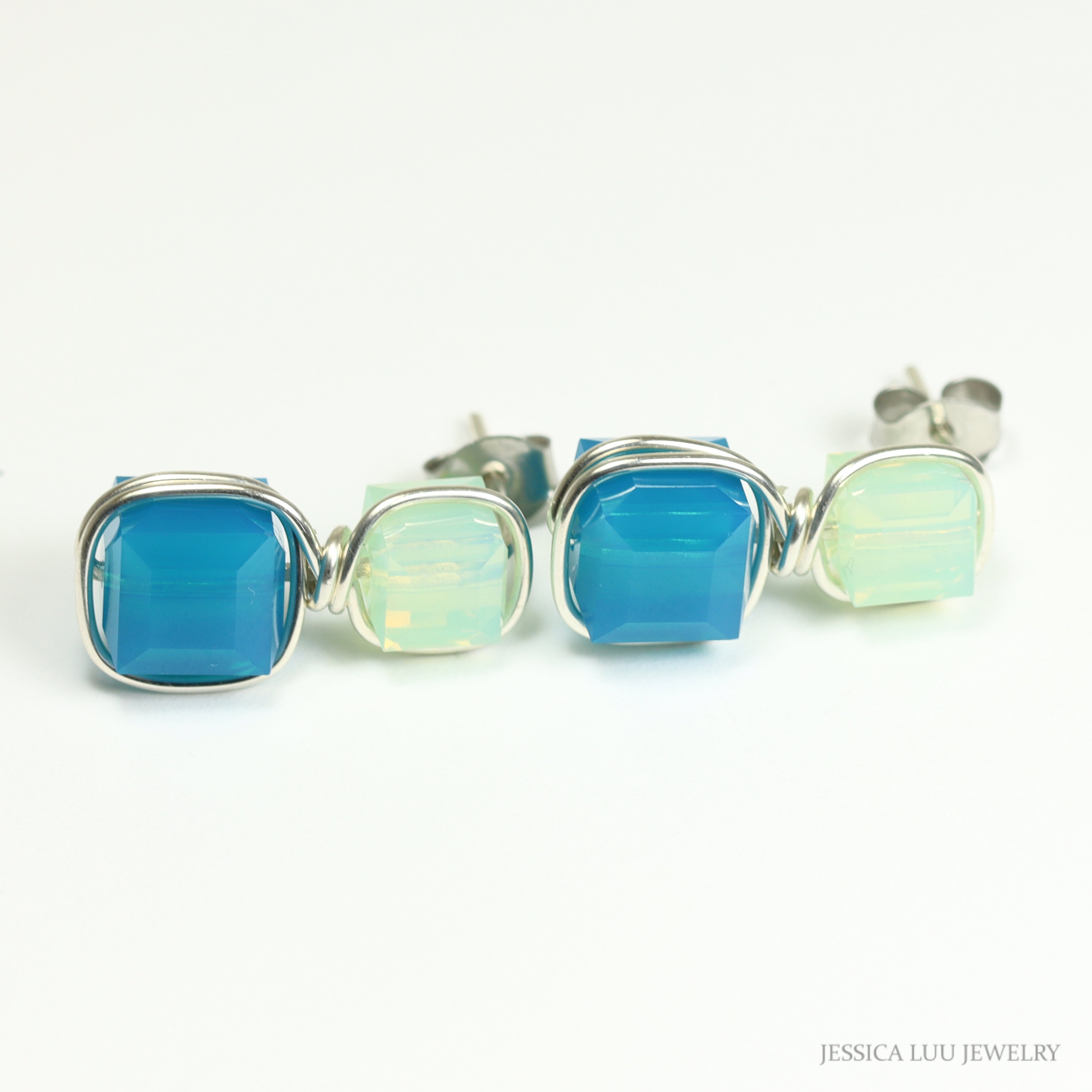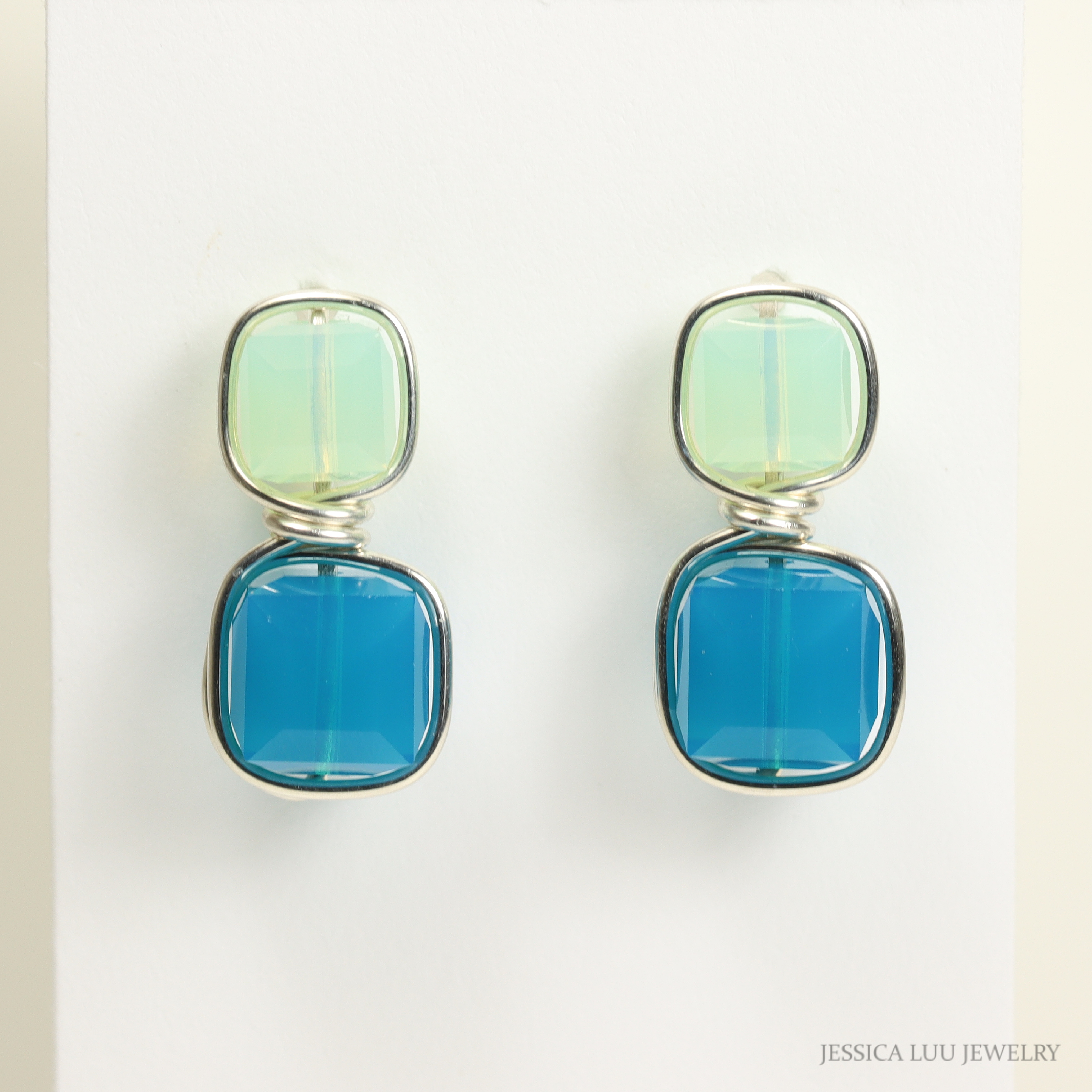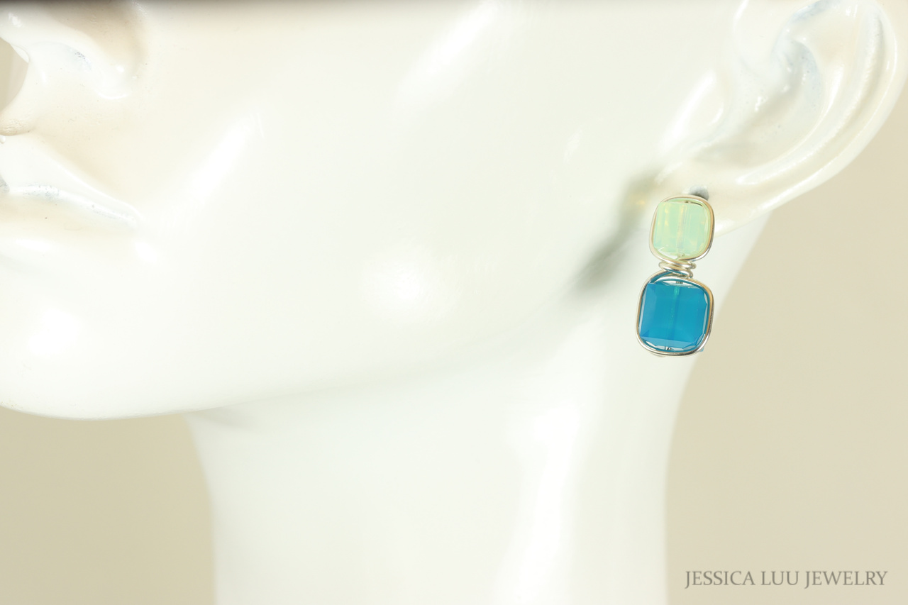 Green and Blue Earrings Handmade by Jessica Luu Jewelry