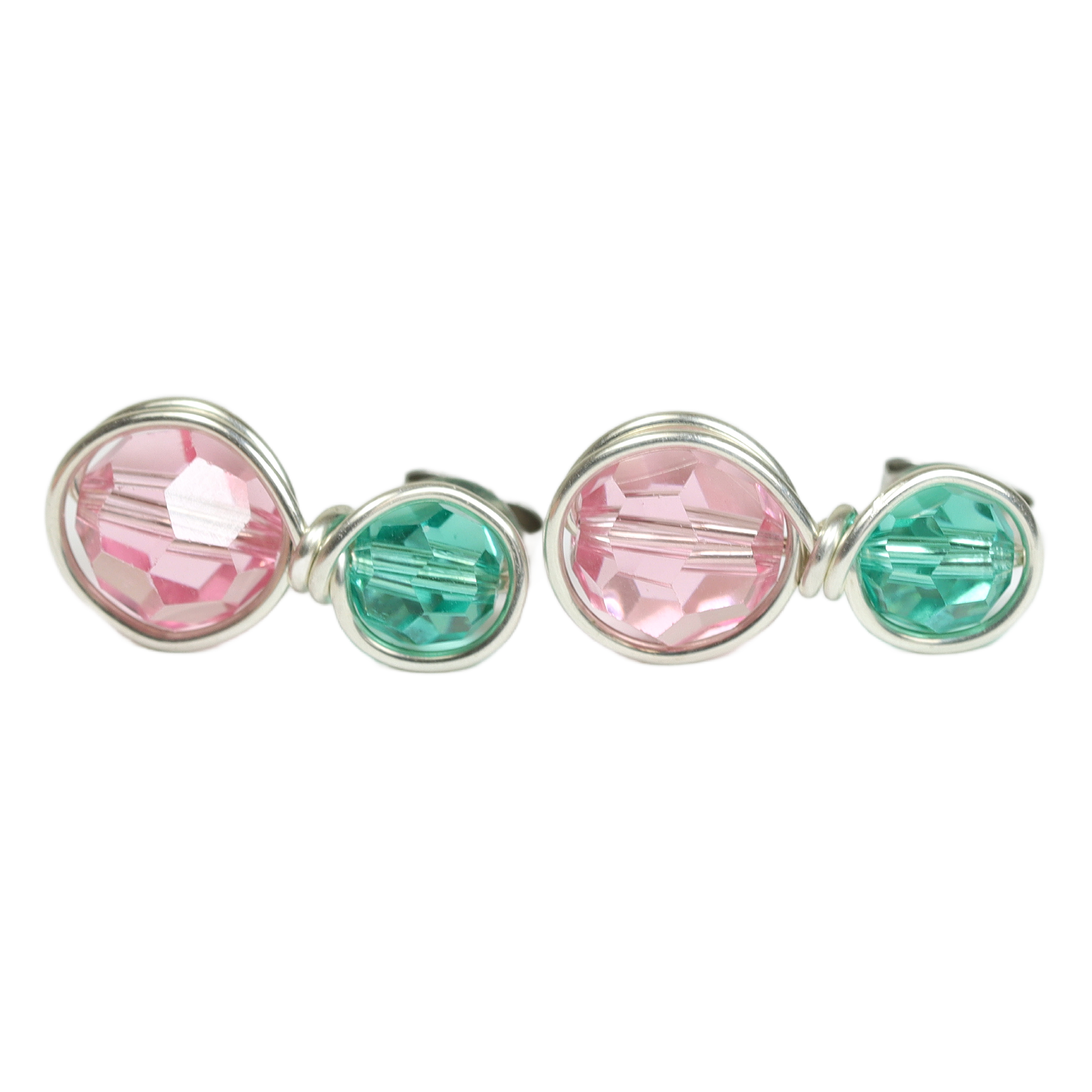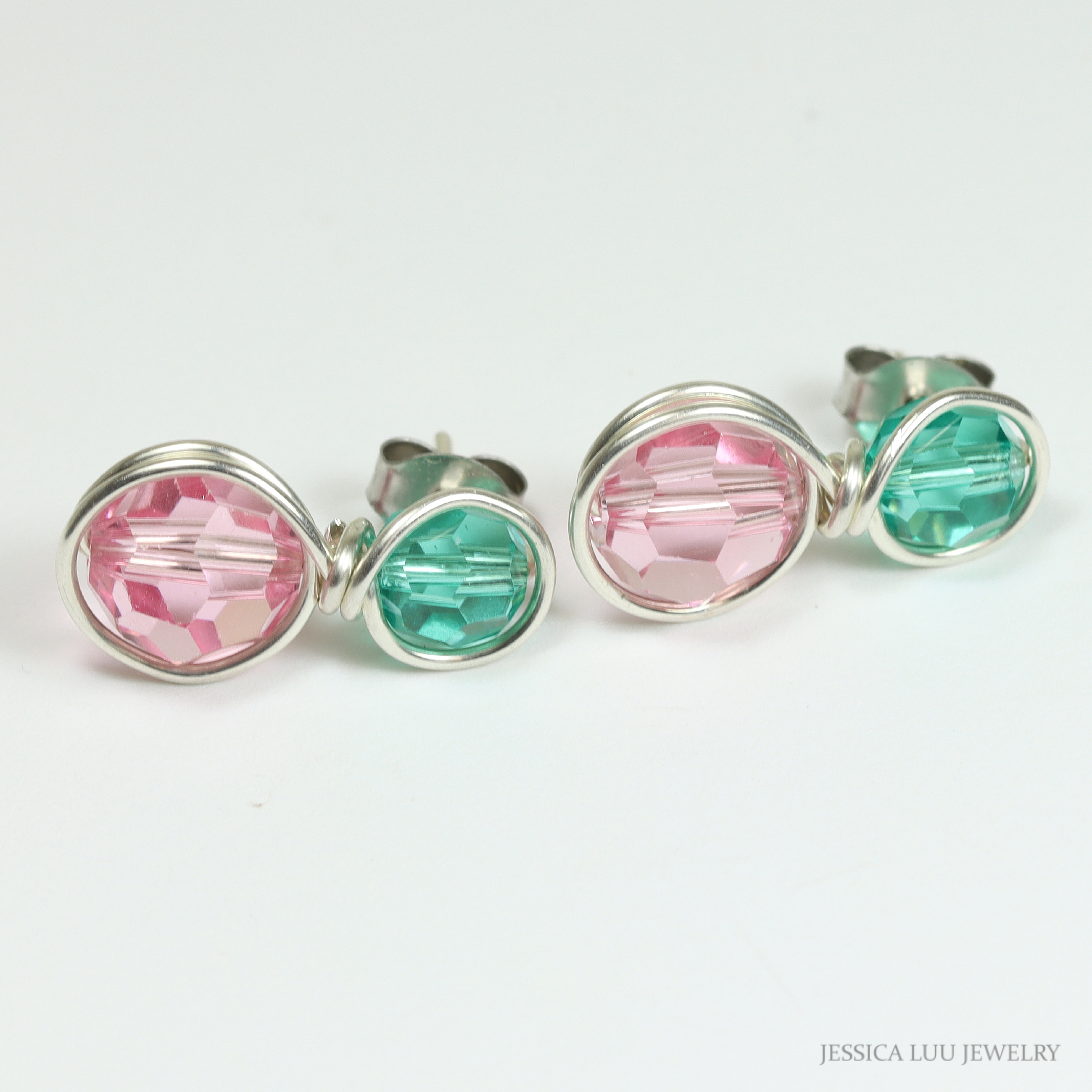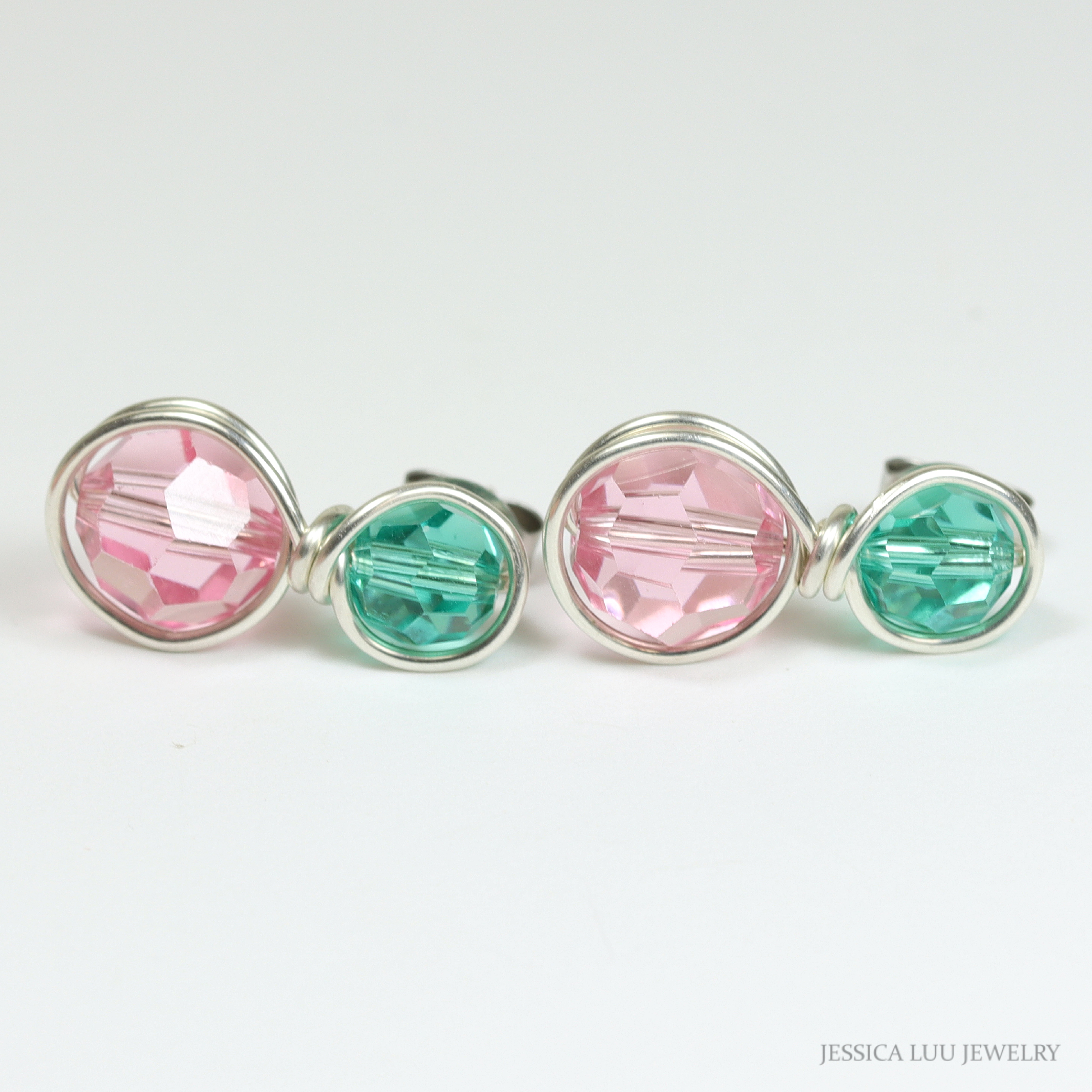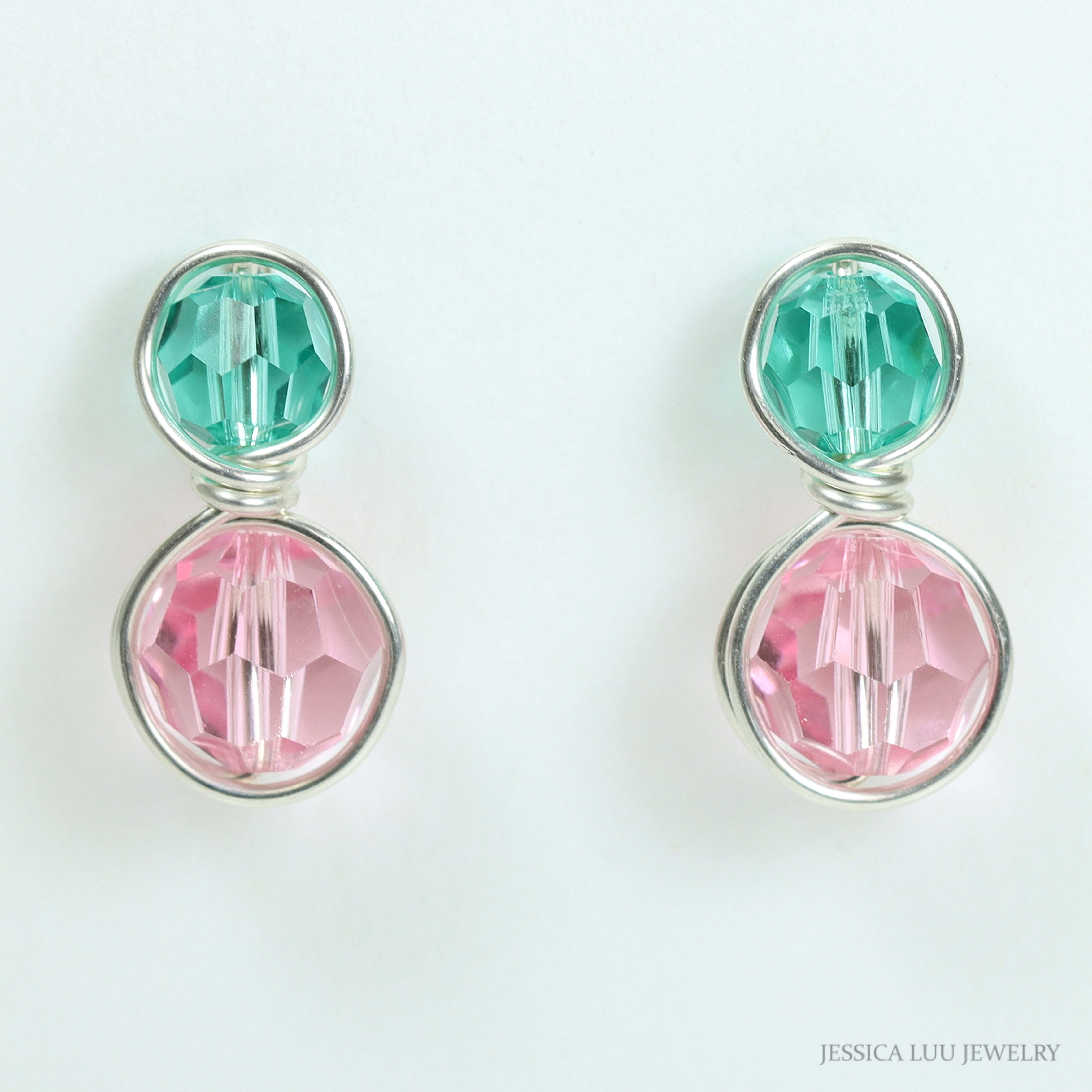 Sterling Silver Pink and Green Earrings Handmade by Jessica Luu Jewelry