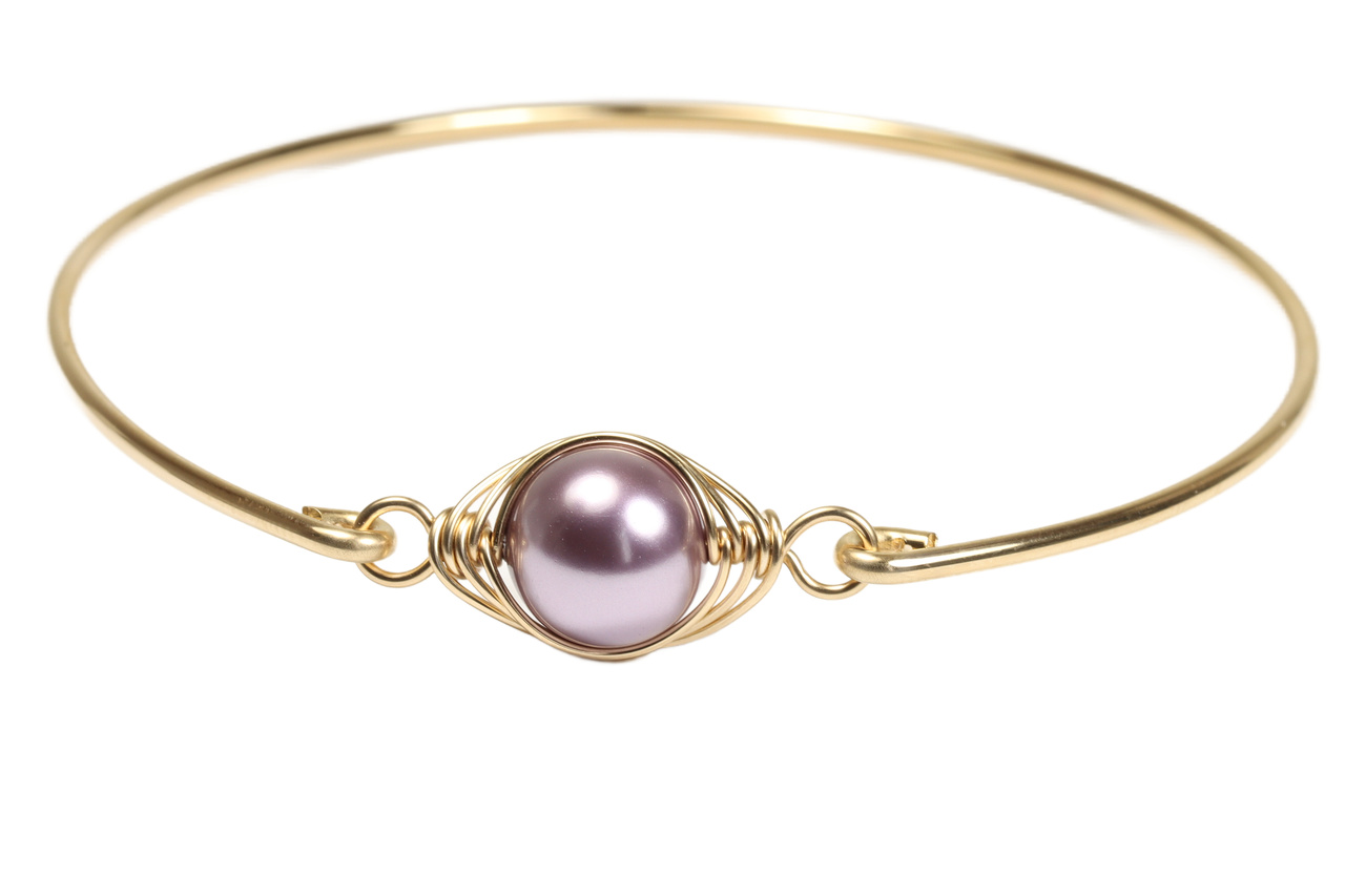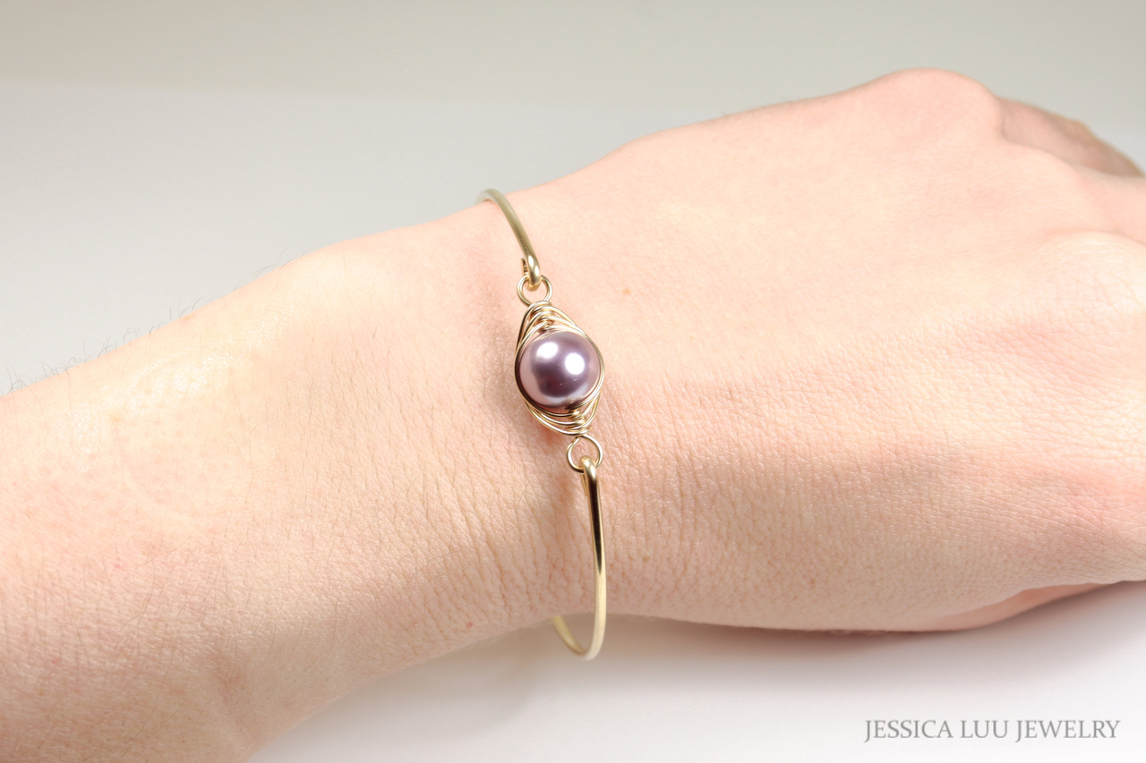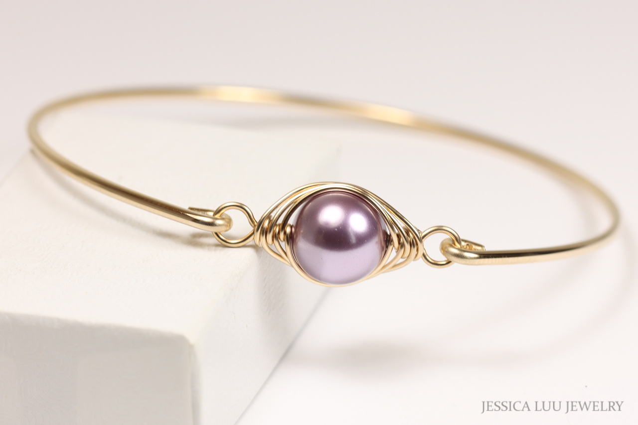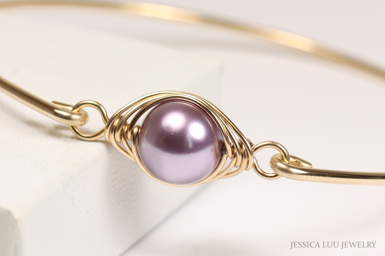 Gold Light Purple Pearl Bangle Handmade by Jessica Luu Jewelry
