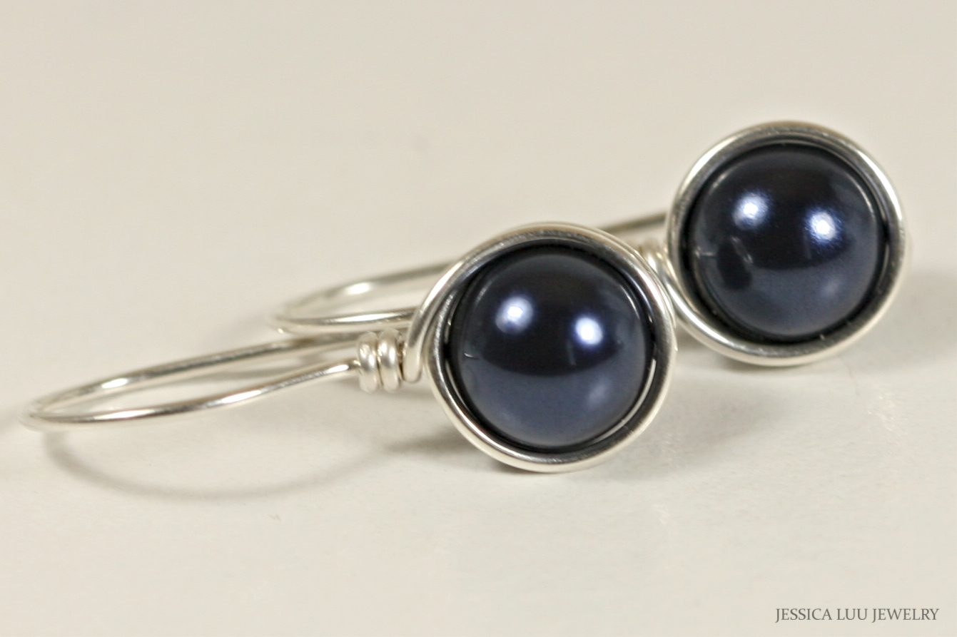 Sterling Silver Blue Pearl Earrings Handmade by Jessica Luu Jewelry