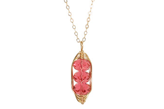 Sale Choose Options Gold Light Pink Crystal Necklace - Available with Matching Earrings MSRP: Was: $79.00 Now: $47.40 - $60.60 Gold wire wrapped crystal necklace handmade by Jessica Luu Jewelry Light pink crystal necklace is ma…