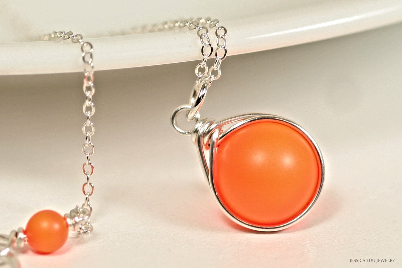 Neon Orange Necklace Handmade by Jessica Luu Jewelry