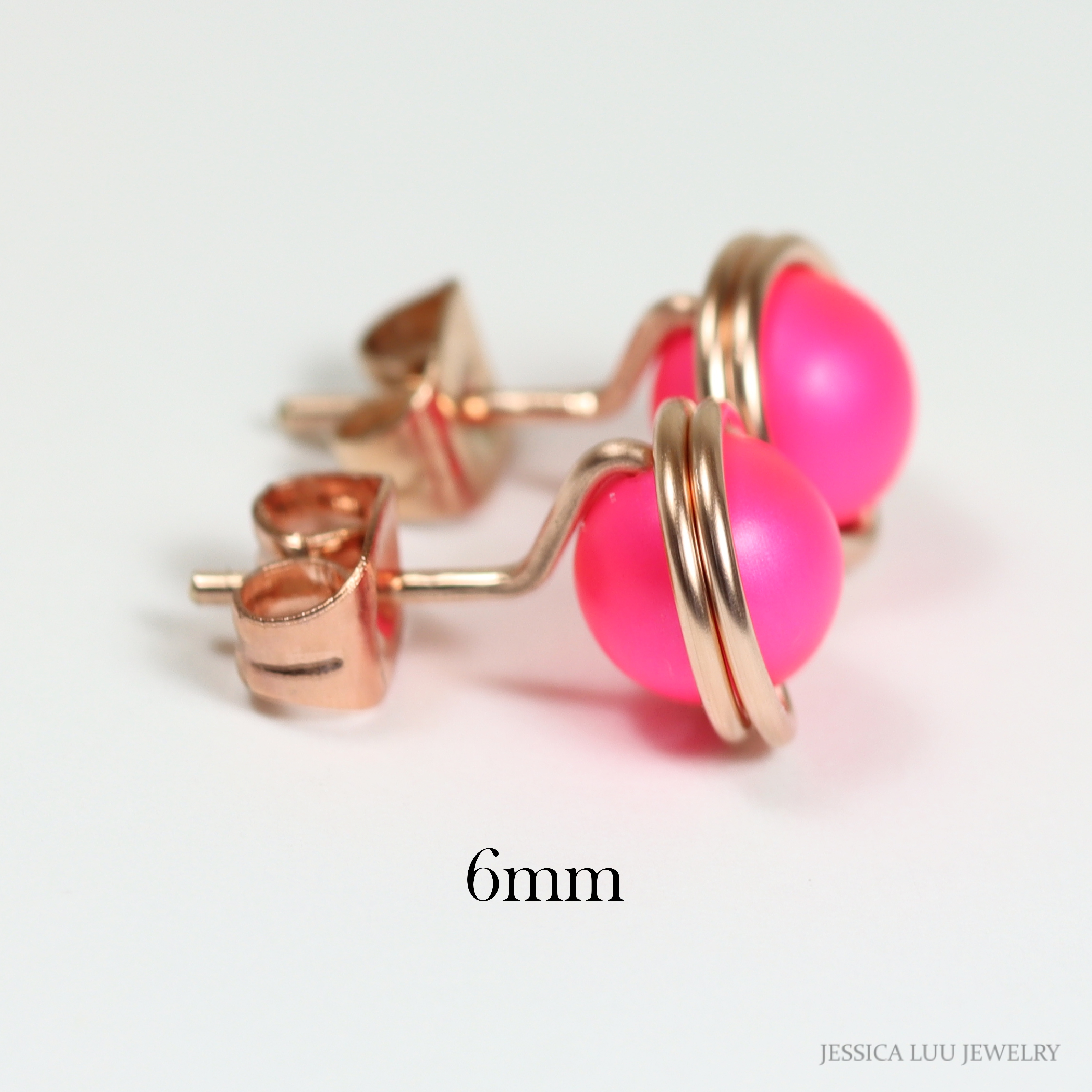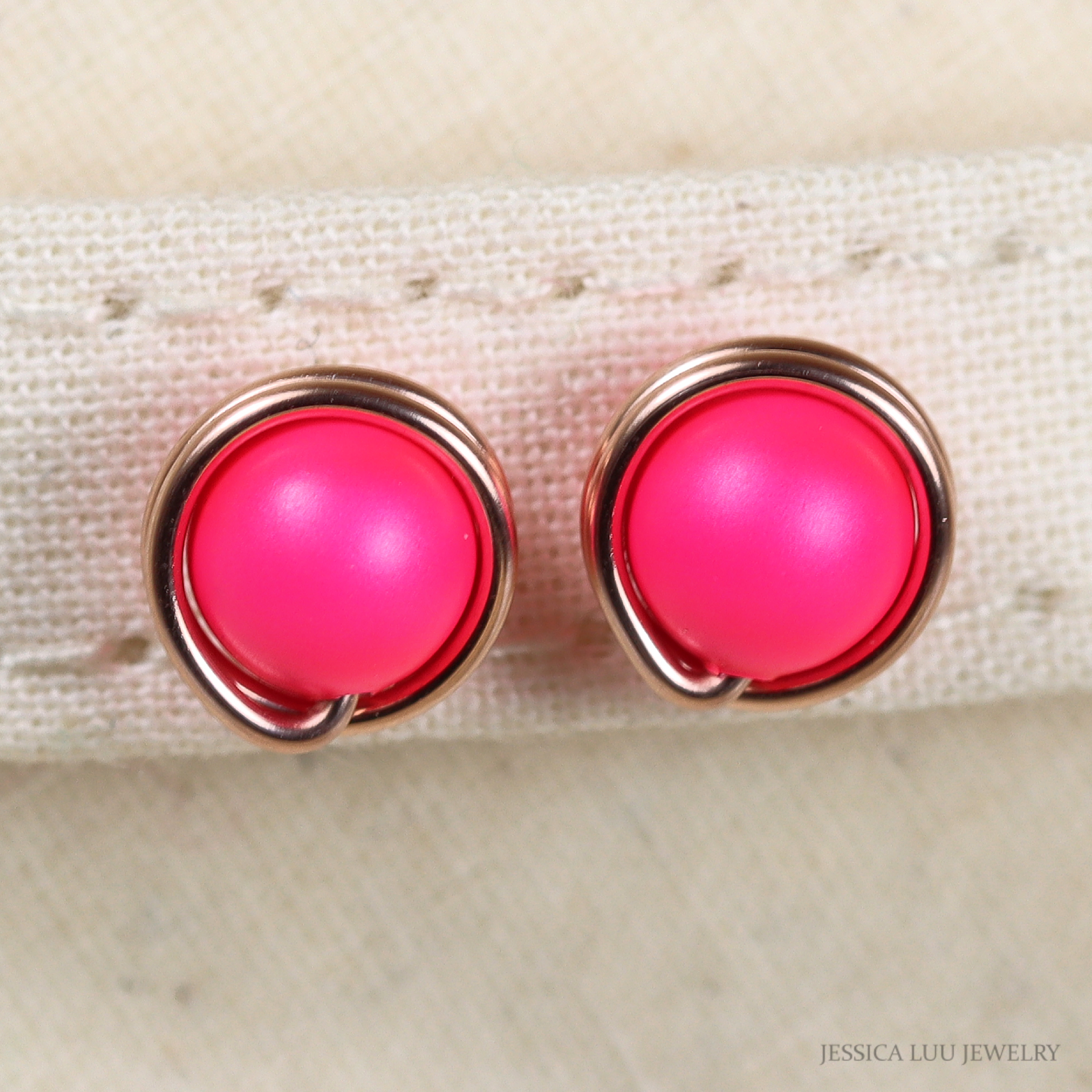 Rose Gold Hot Pink Studs Handmade by Jessica Luu Jewelry