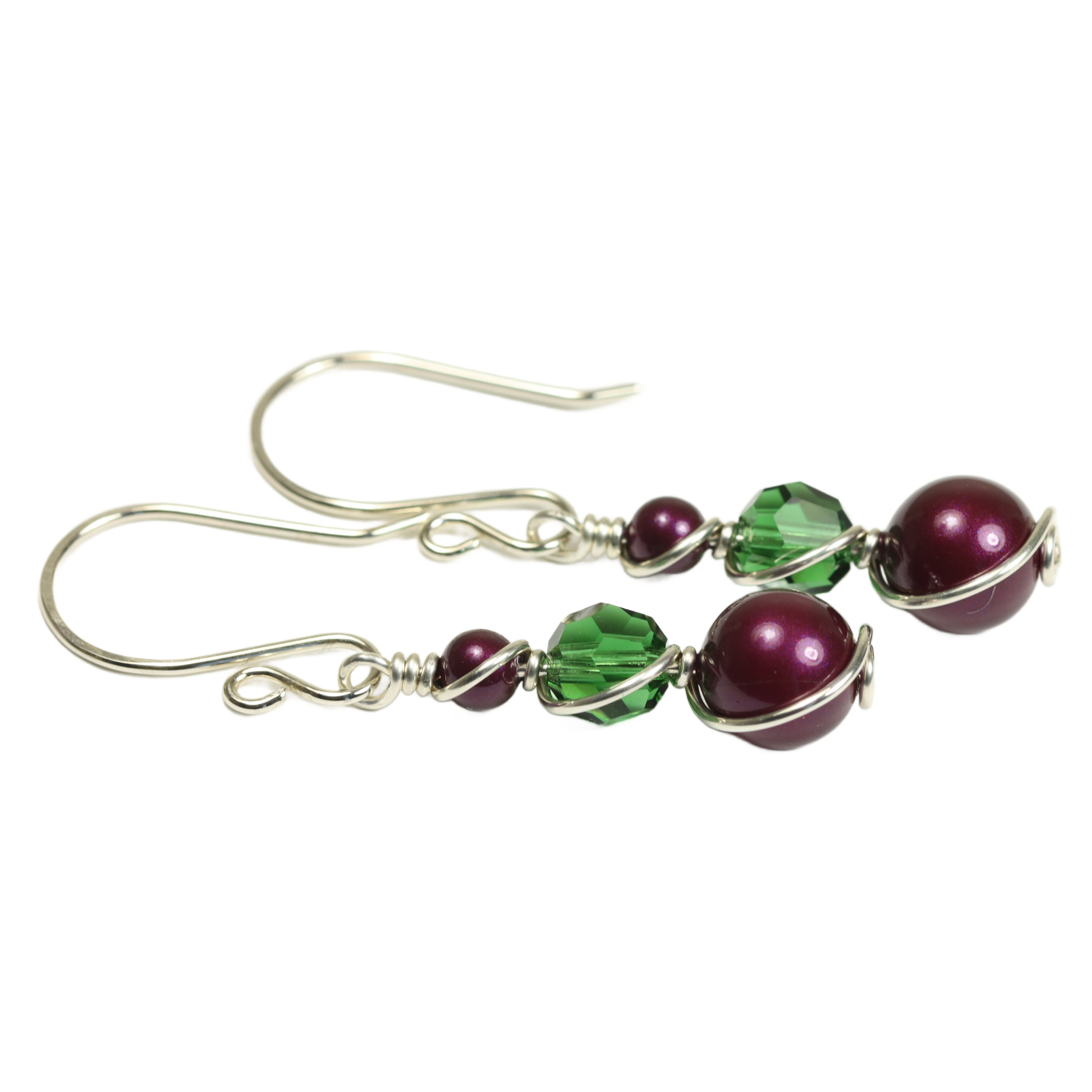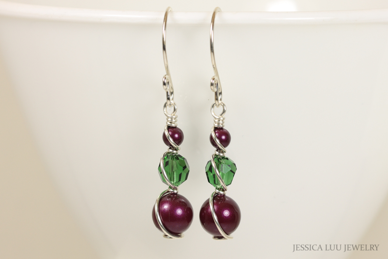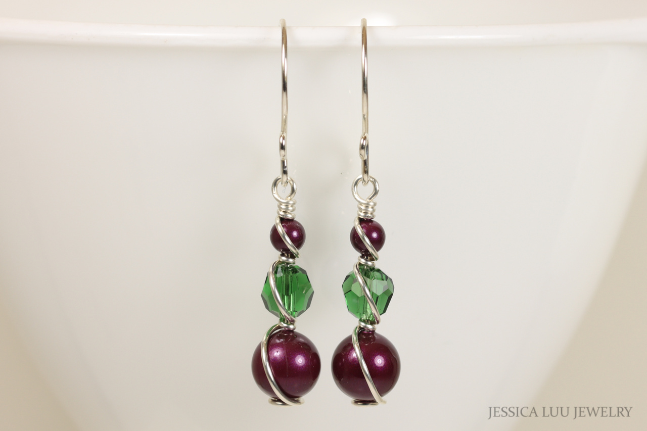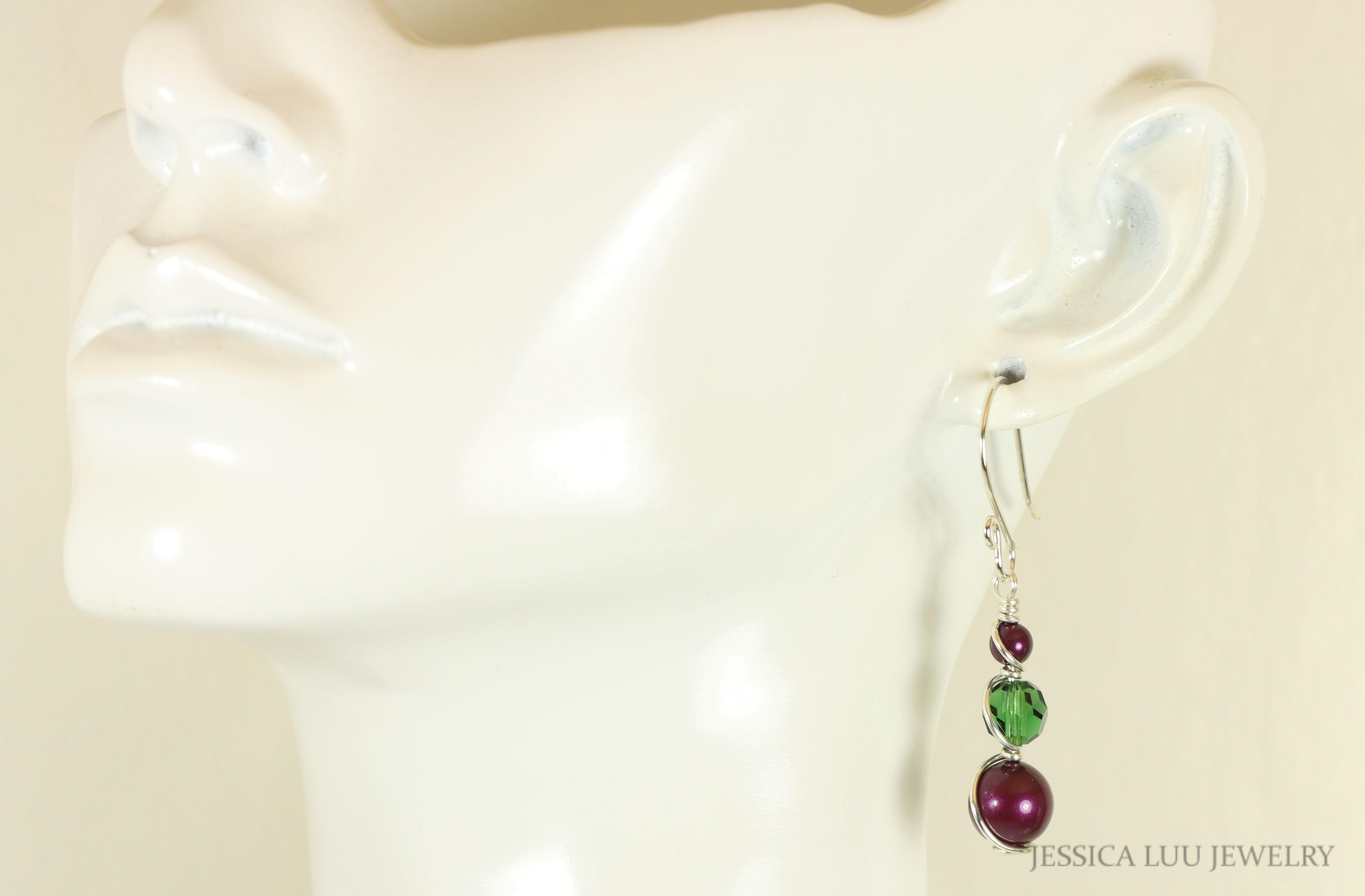 Sterling Silver Purple and Green Earrings Handmade by Jessica Luu Jewelry