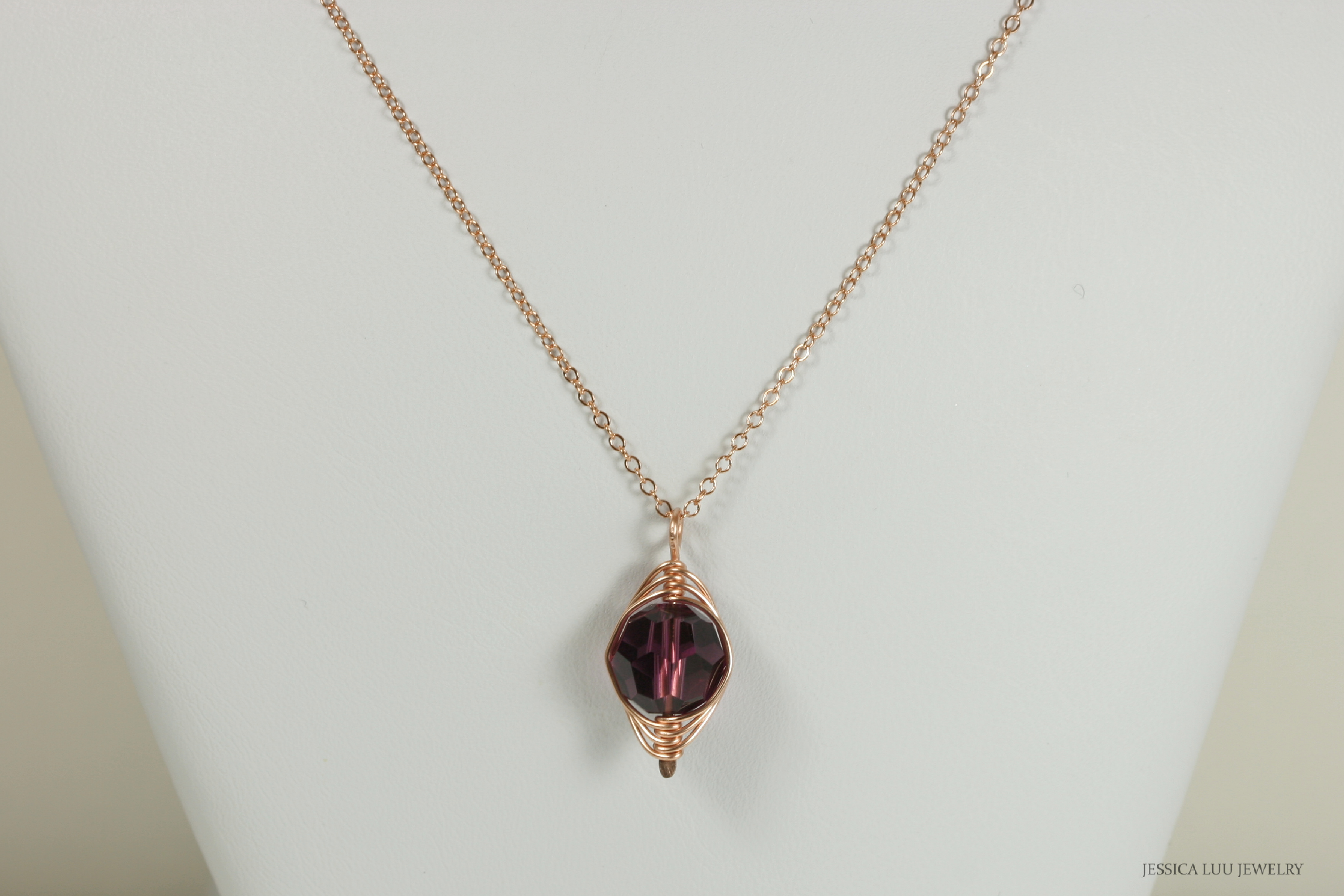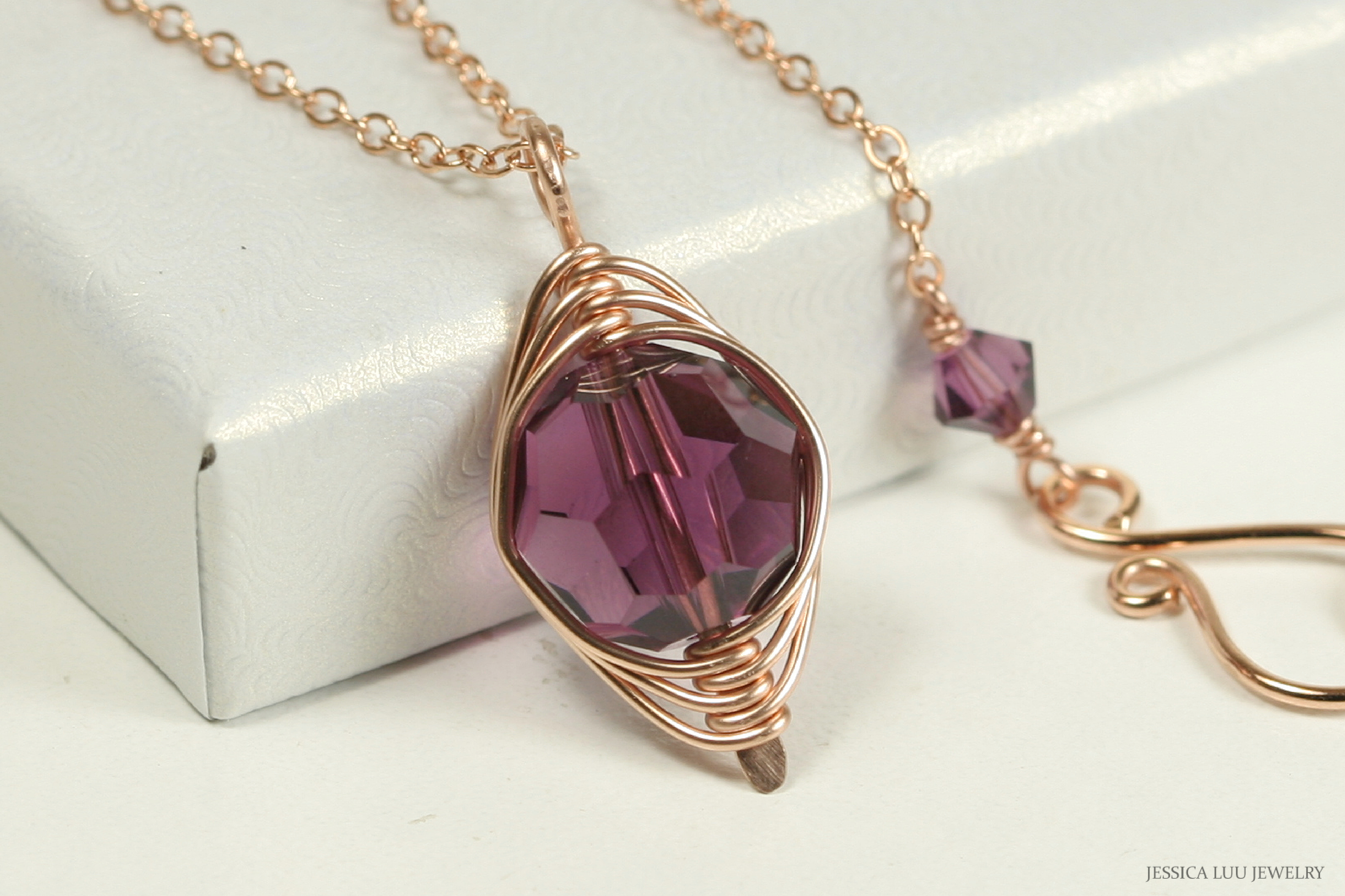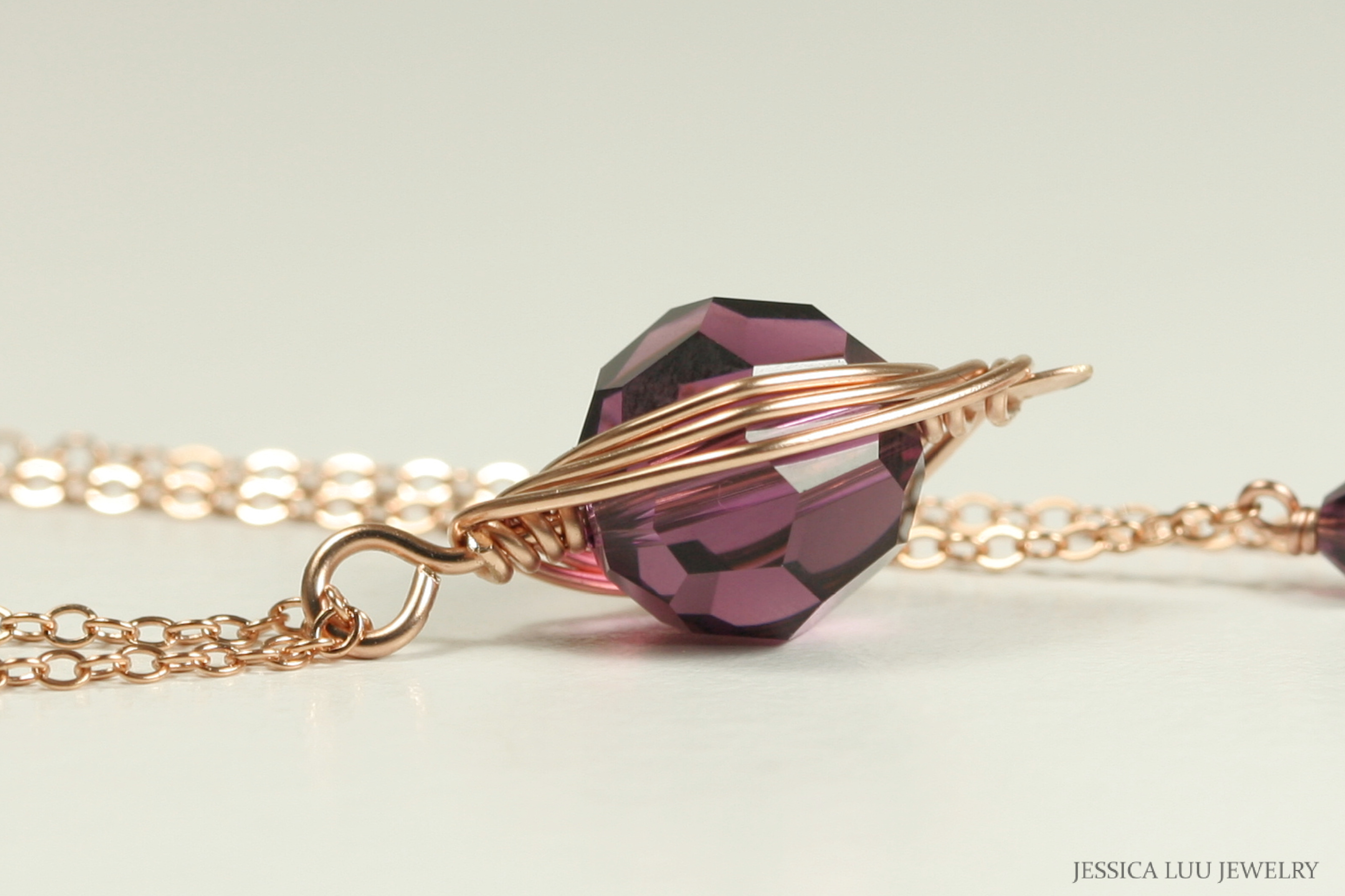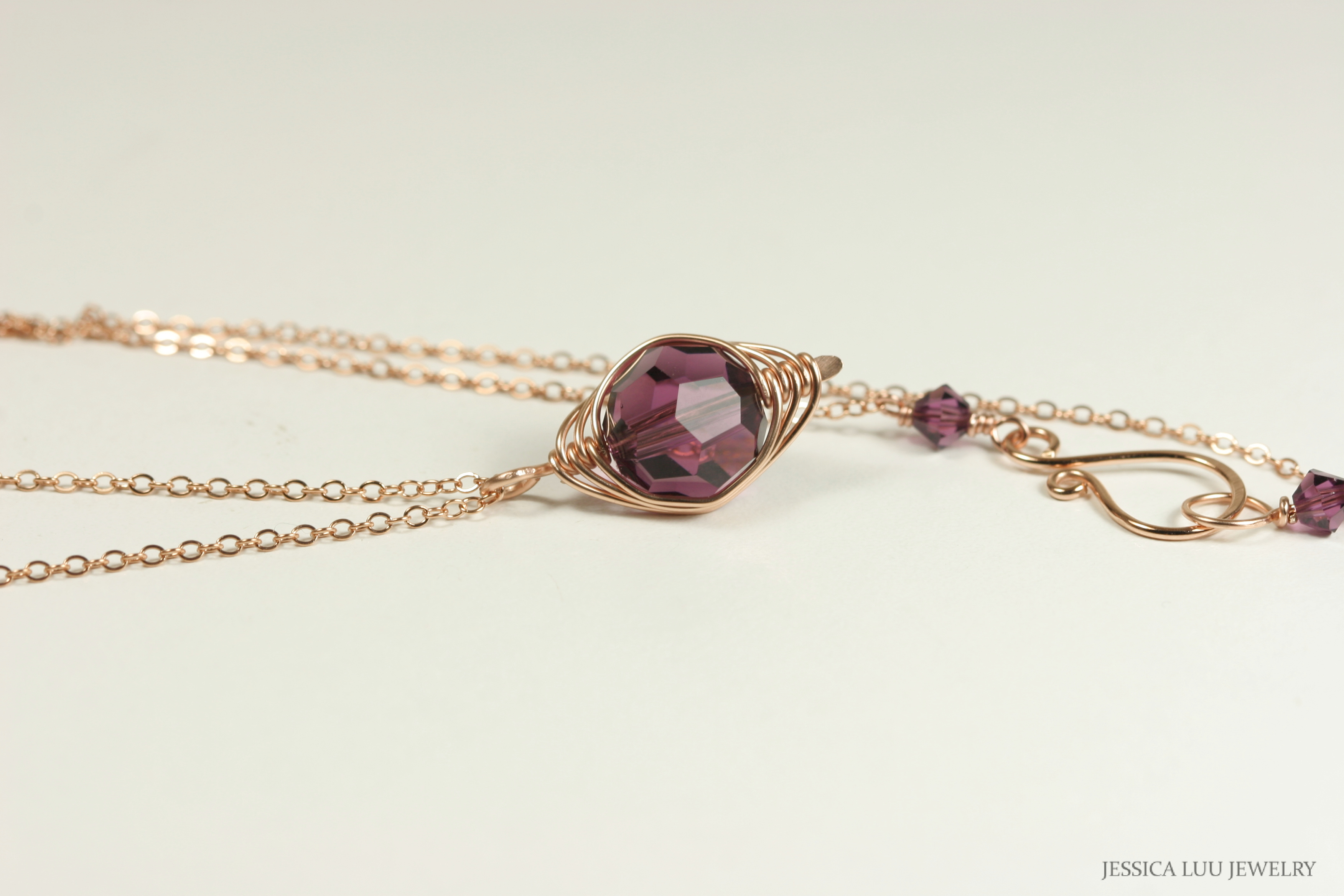 ~ 14k rose gold filled hook and eye clasp with 4mm amethyst crystal accents