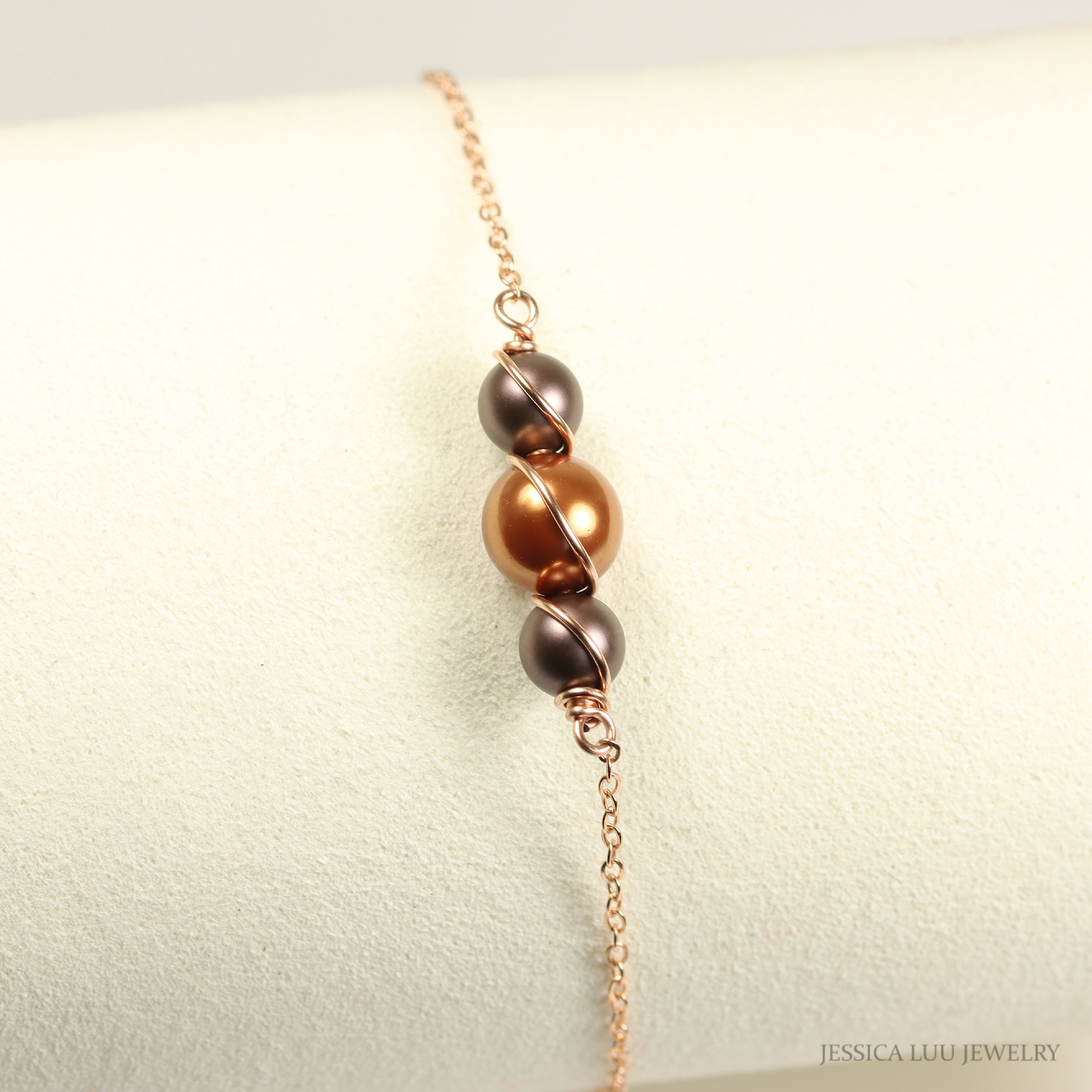 ~ Exquisite Design: Handcrafted with chocolate brown and copper colored crystal nacre pearls strung on a 14K rose gold filled chain, this bracelet exudes elegance and sophistication.