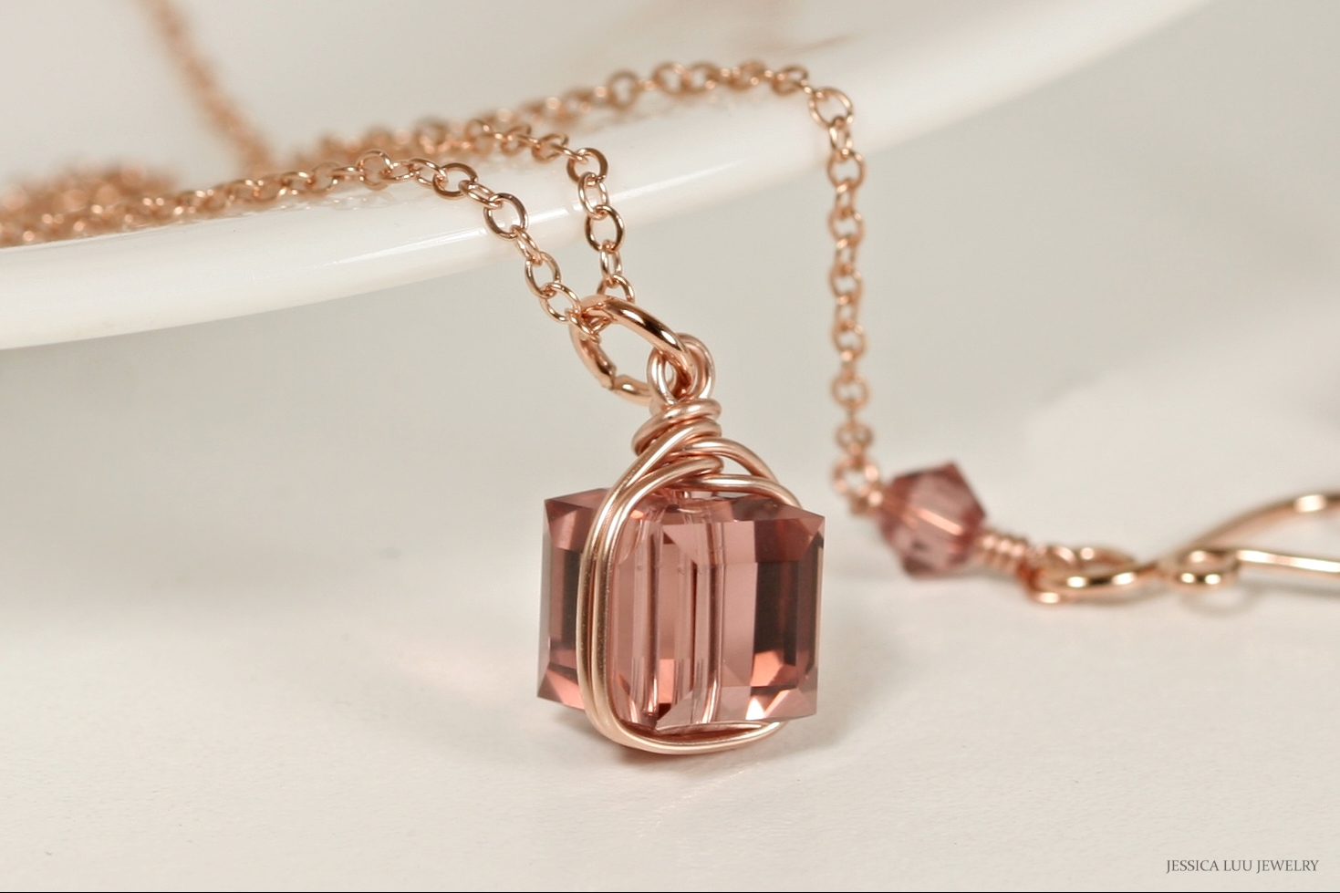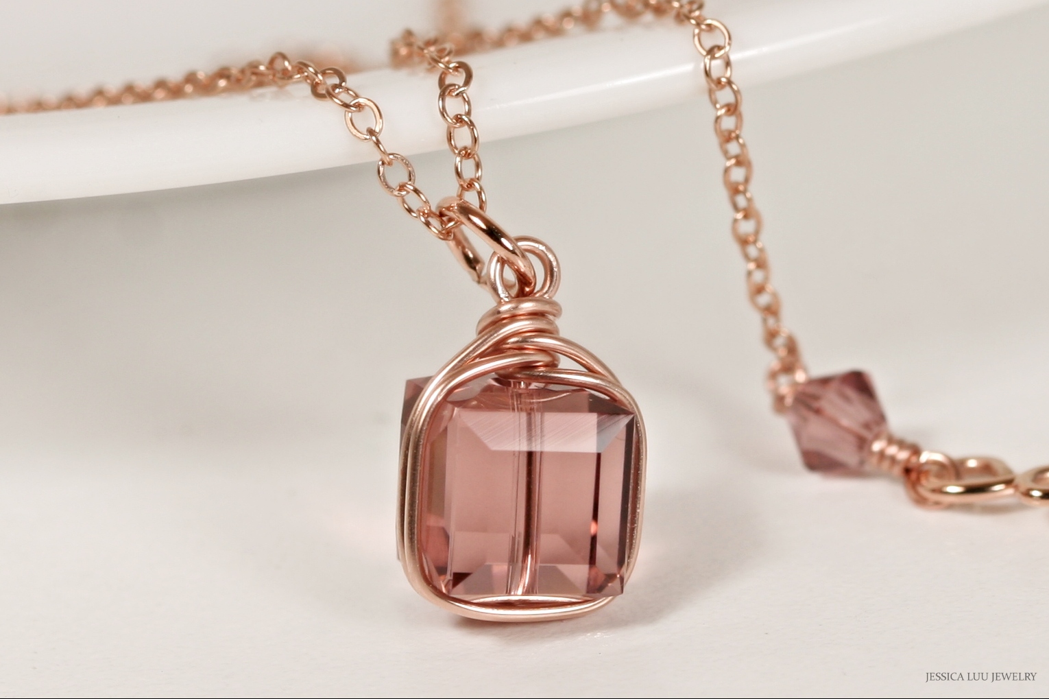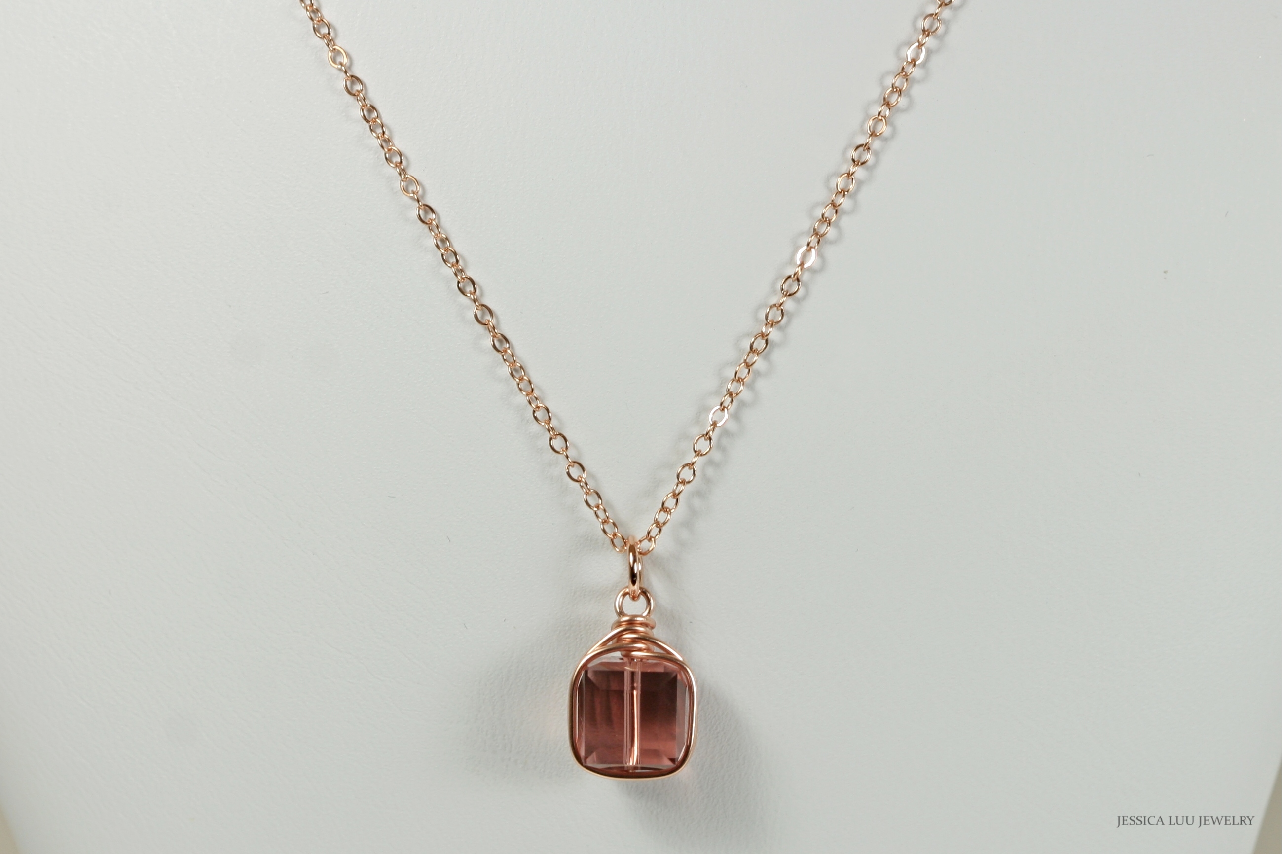 Rose Gold Pink Crystal Necklace Handmade by Jessica Luu Jewelry