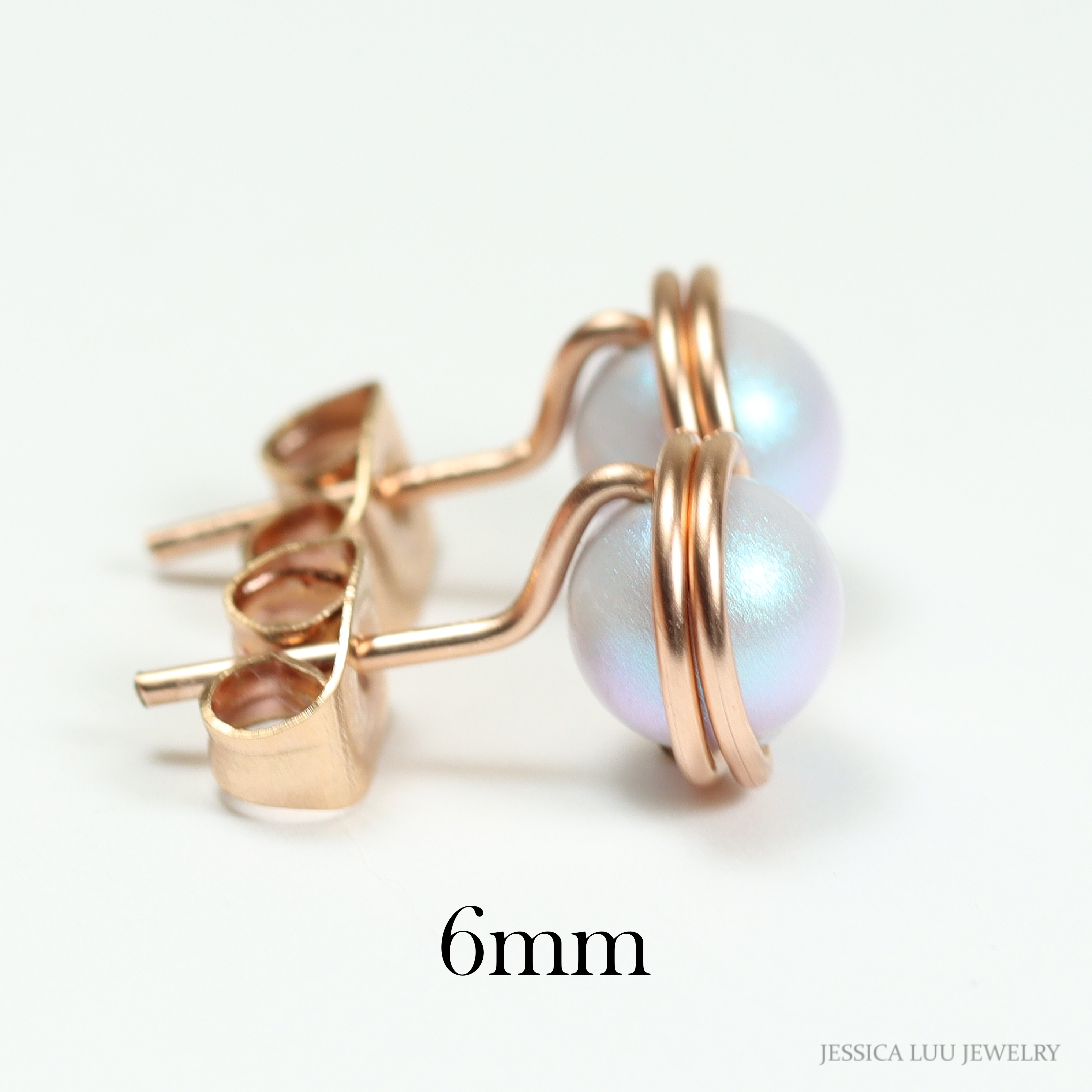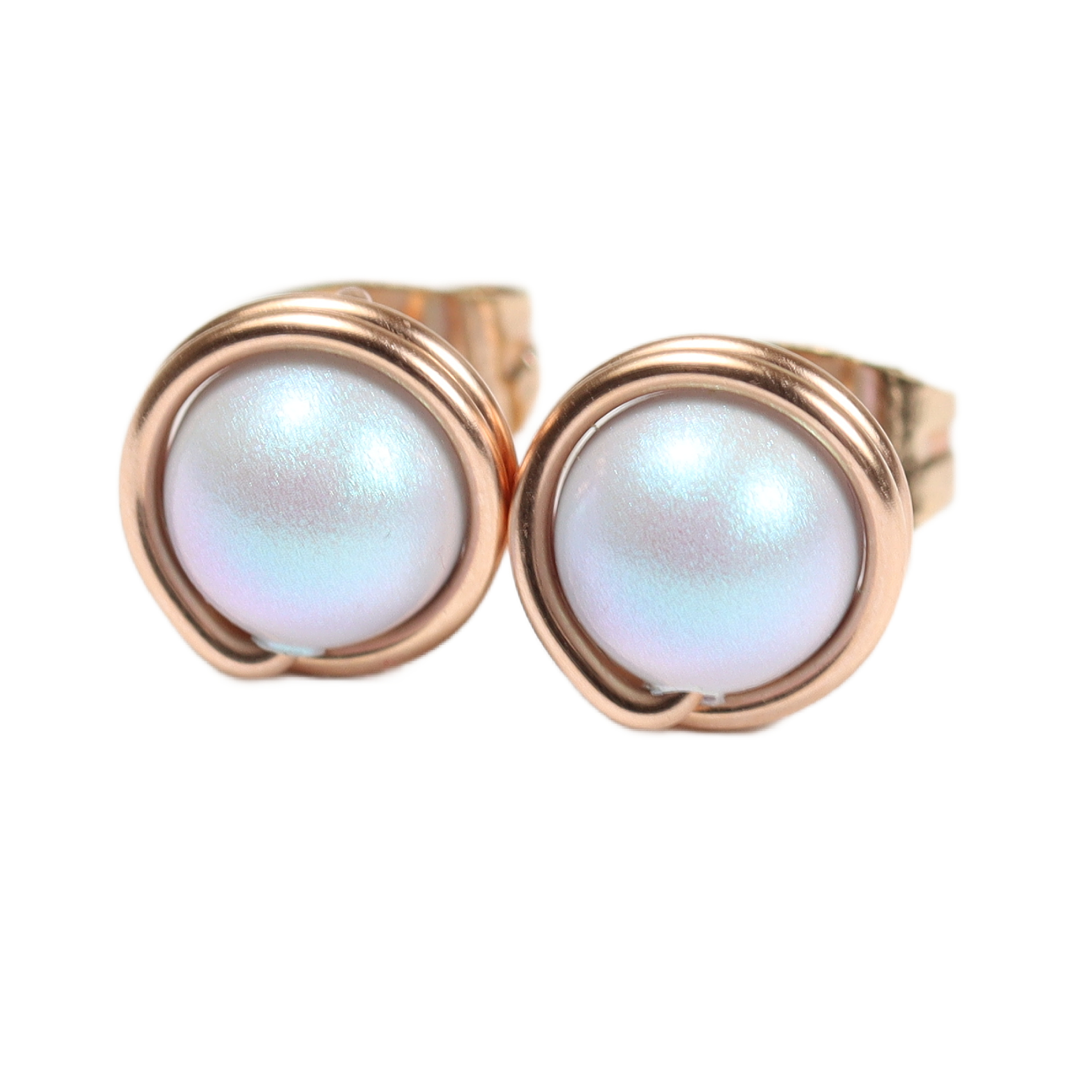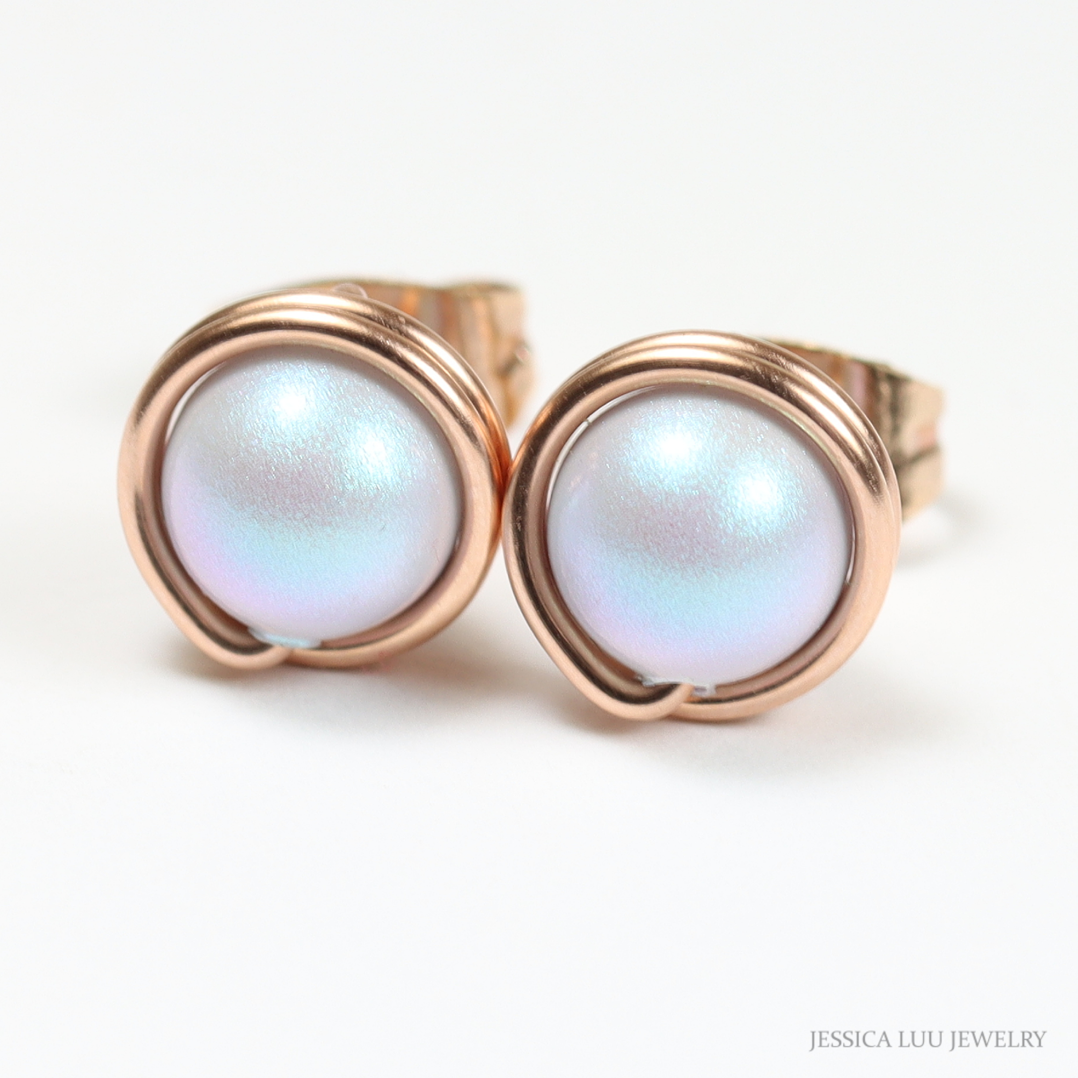 Iridescent Dreamy Blue Pearl Stud Earrings Handmade by Jessica Luu Jewelry