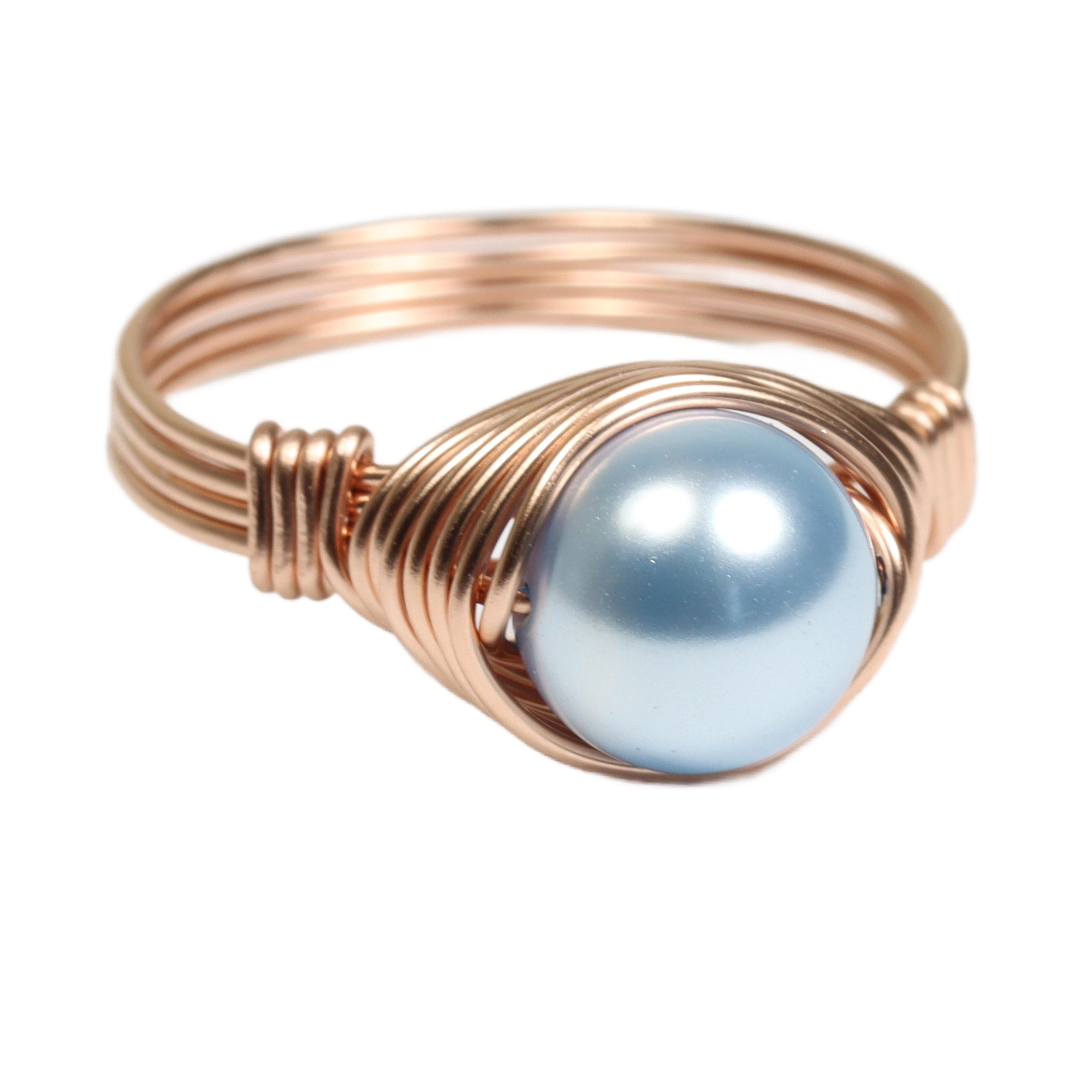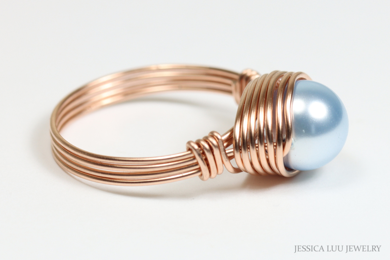 Light Blue Pearl Solitaire Ring Handmade by Jessica Luu Jewelry