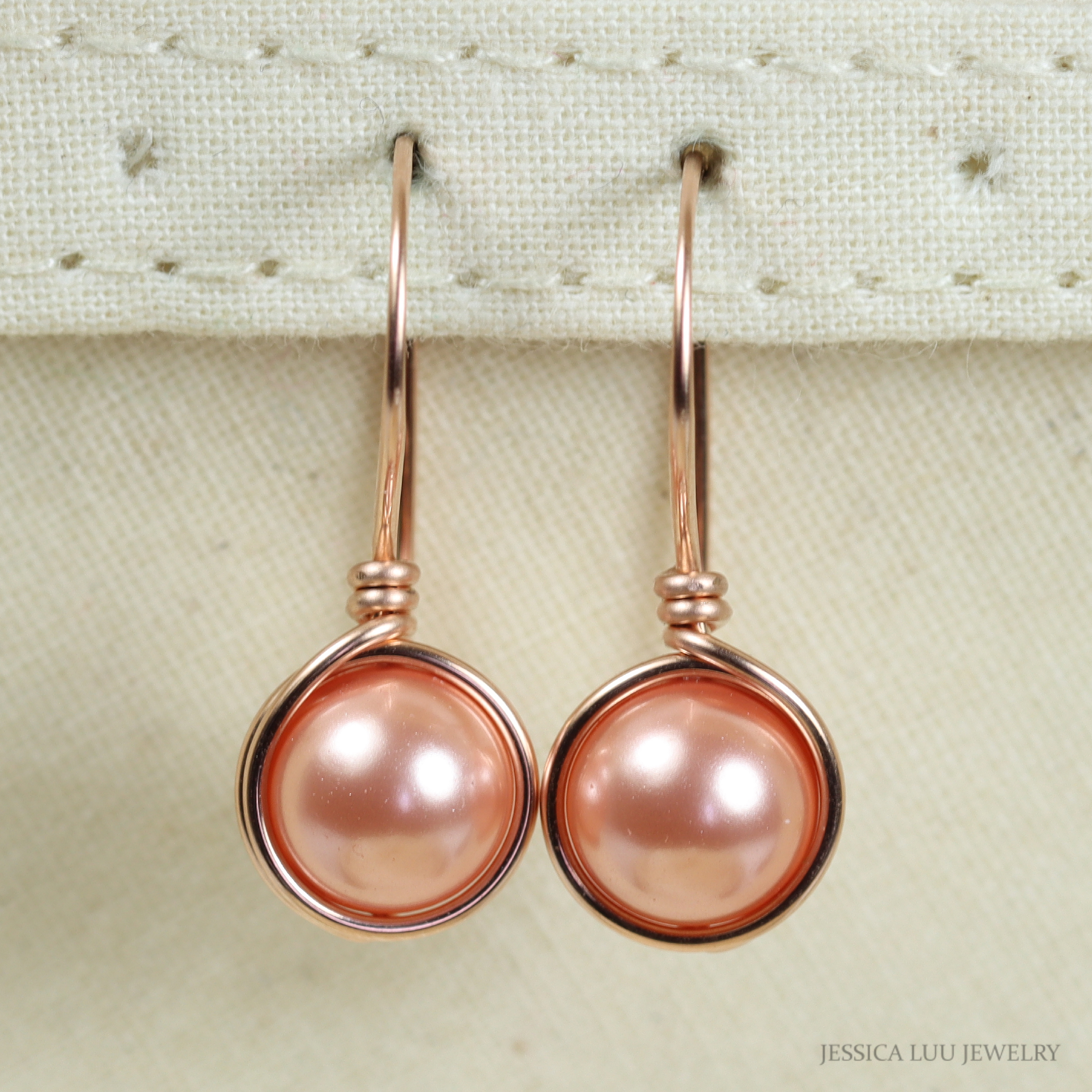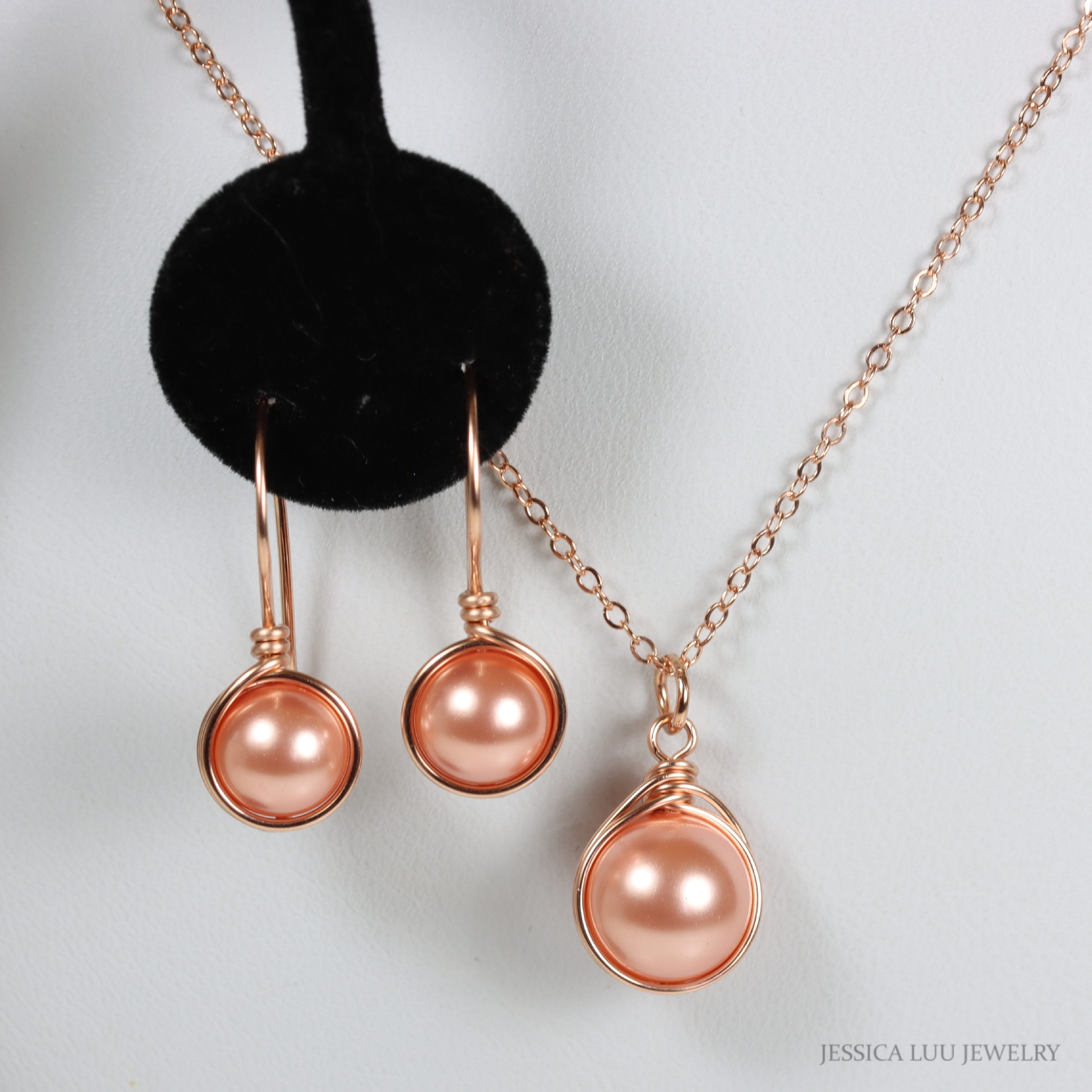 Wire Wrapped Peach Pearl Necklace Handmade by Jessica Luu Jewelry