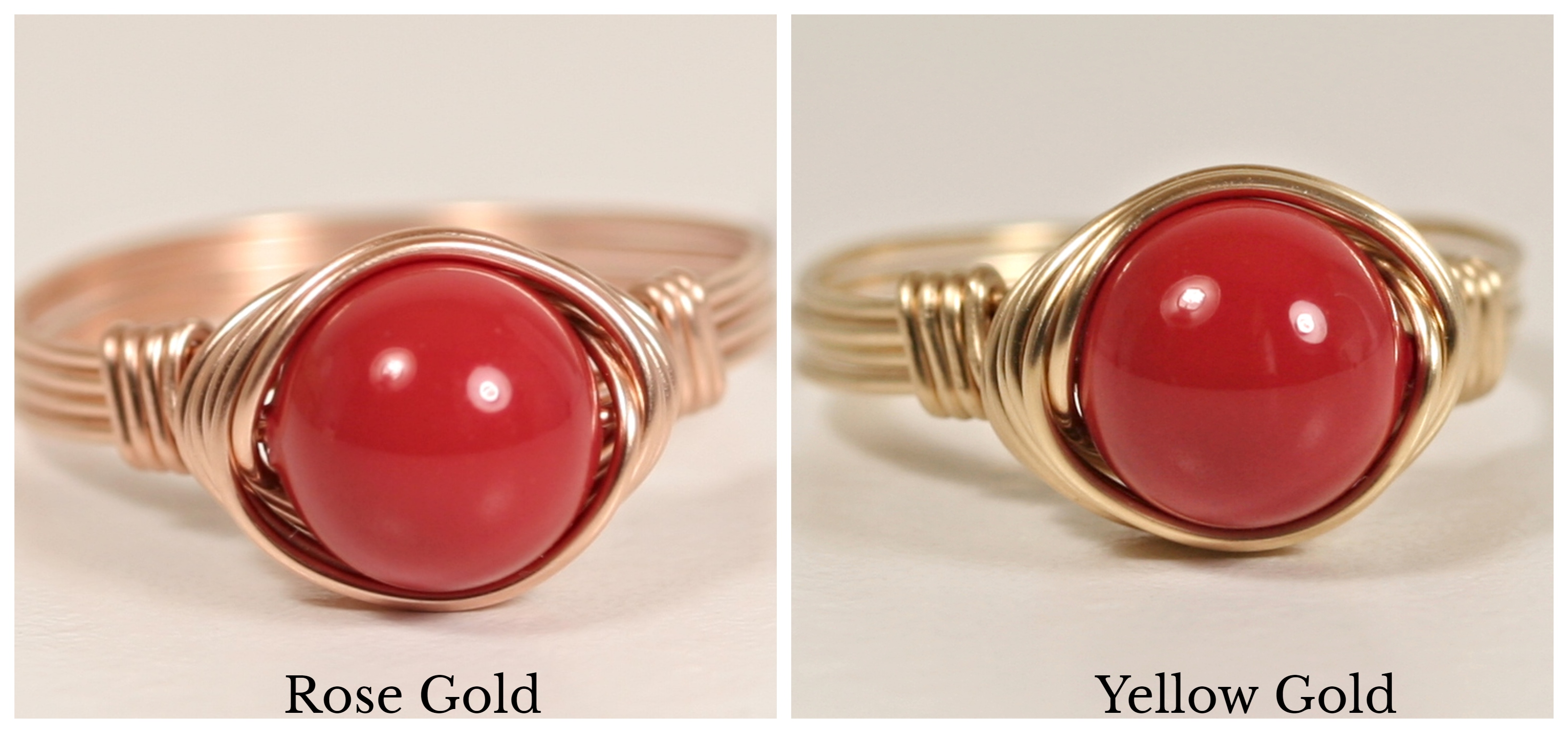 HOW IT’S MADE: Each ring is handmade to order using U.S. standard jewelry sizing equipment to ensure the correct size with 14K gold filled wire. Gold filled wire is a hollow tube of 14 karat gold that is filled with brass for durability, so all the metal outside is 14K gold; gold filled wire will not wear off like gold plating and will last a lifetime.