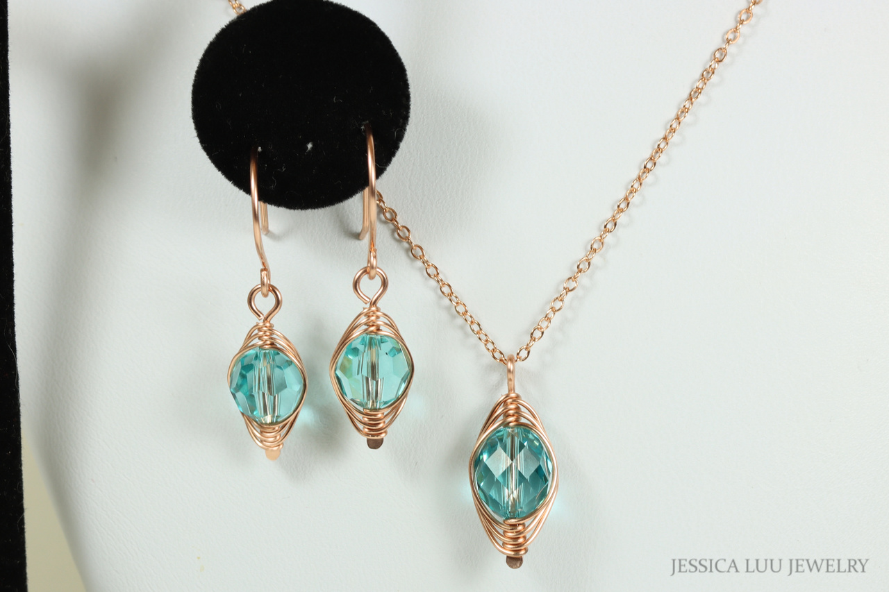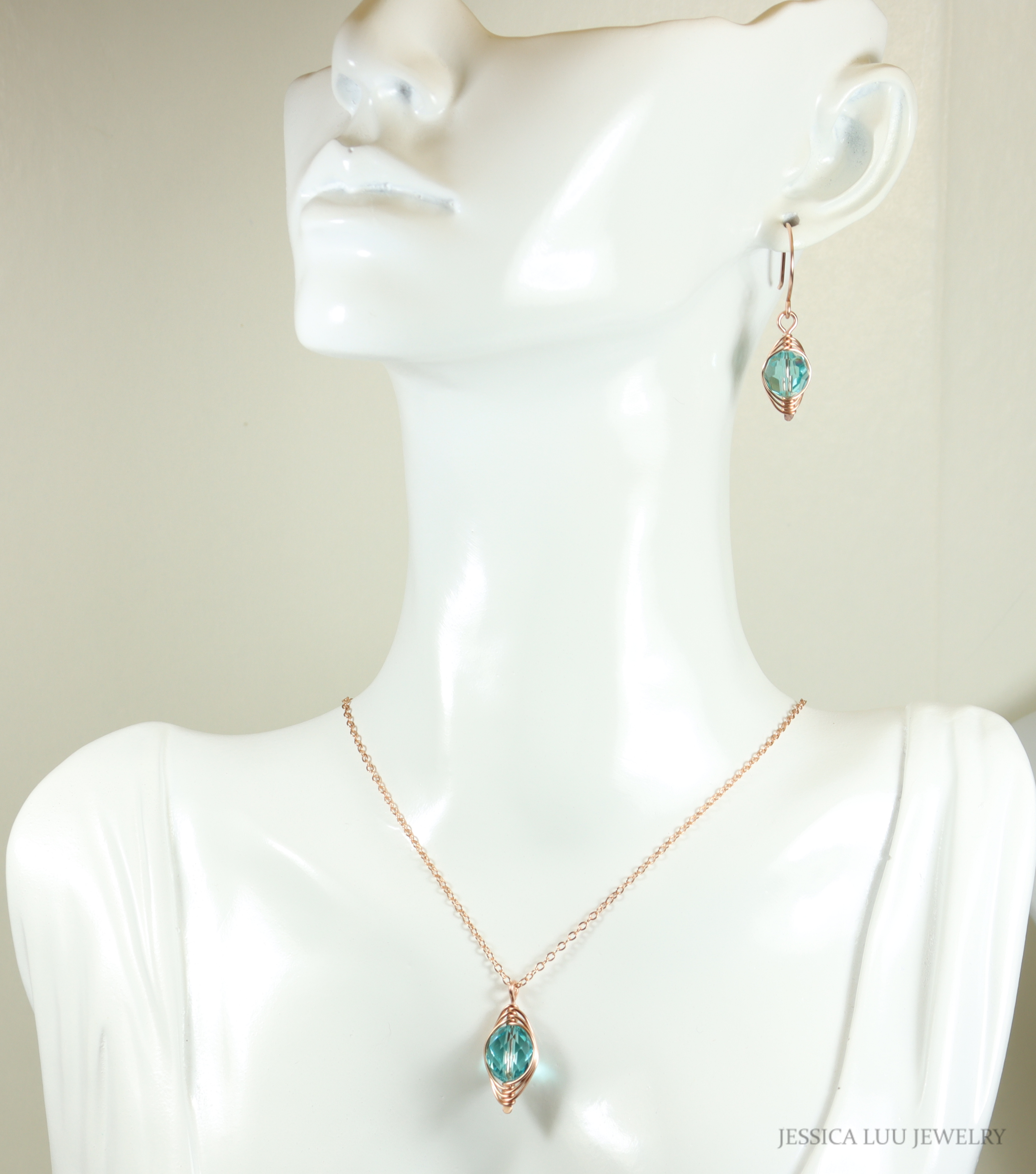 Blue Green Crystal Necklace Handmade by Jessica Luu Jewelry