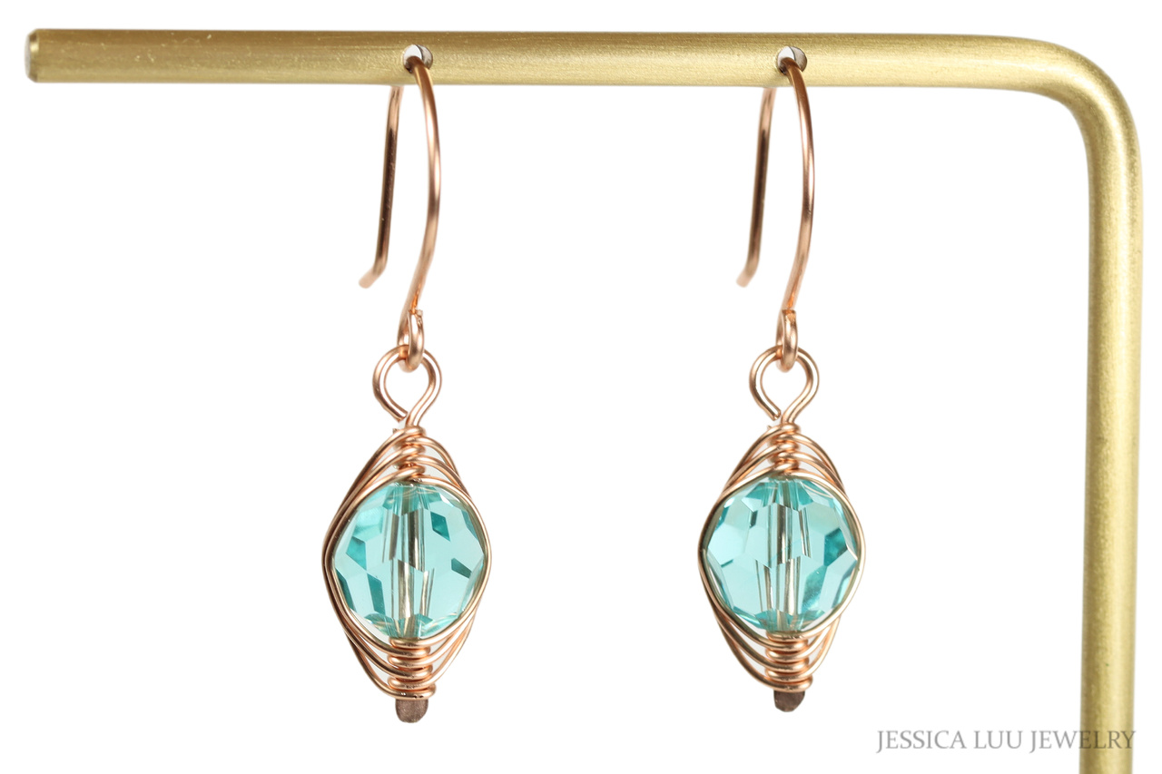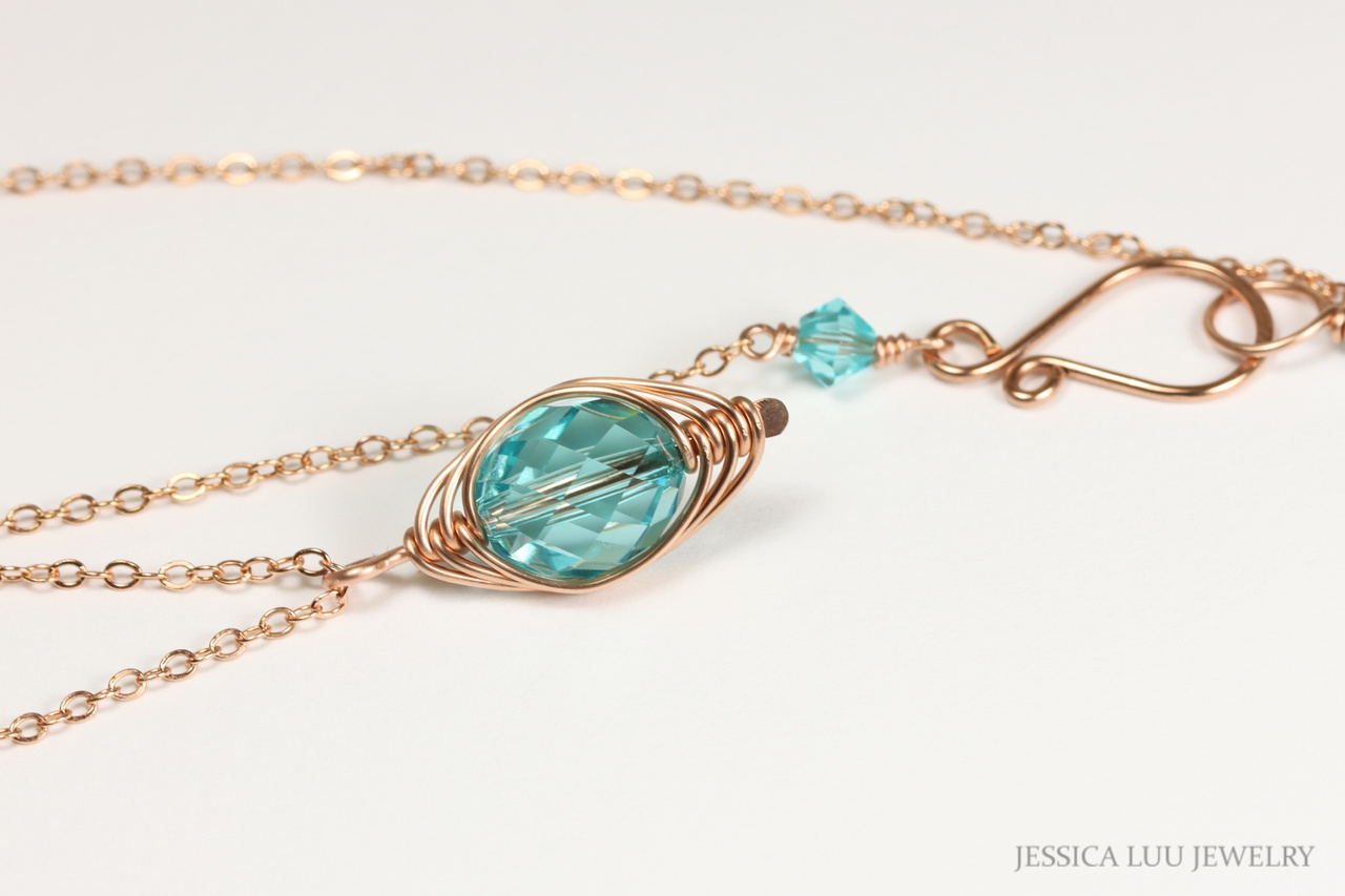 ~ 14k rose gold filled hook clasp with 4mm light turquoise crystal accents