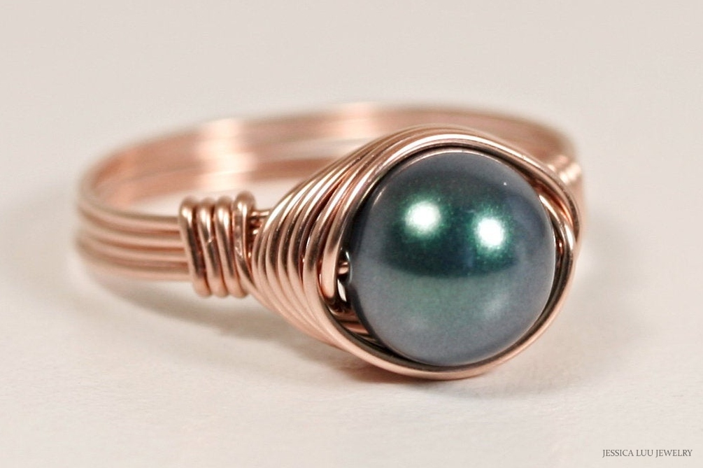 Rose Gold Iridescent Tahitian Pearl Ring Handmade by Jessica Luu Jewelry