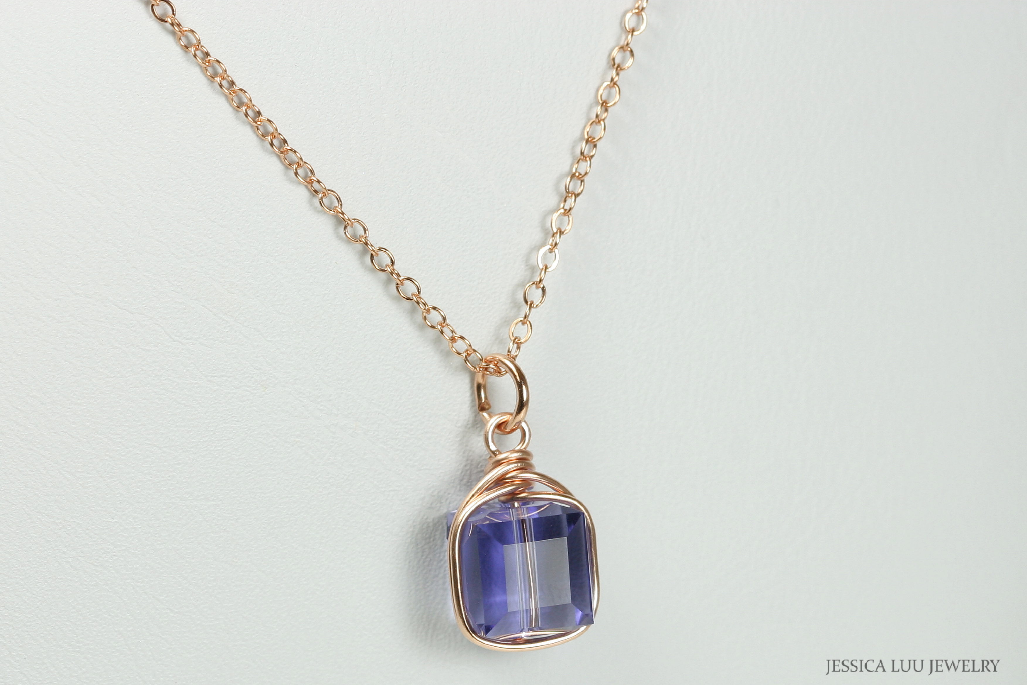 Rose Gold Blue Purple Cube Necklace On Chain Handmade by Jessica Luu Jewelry