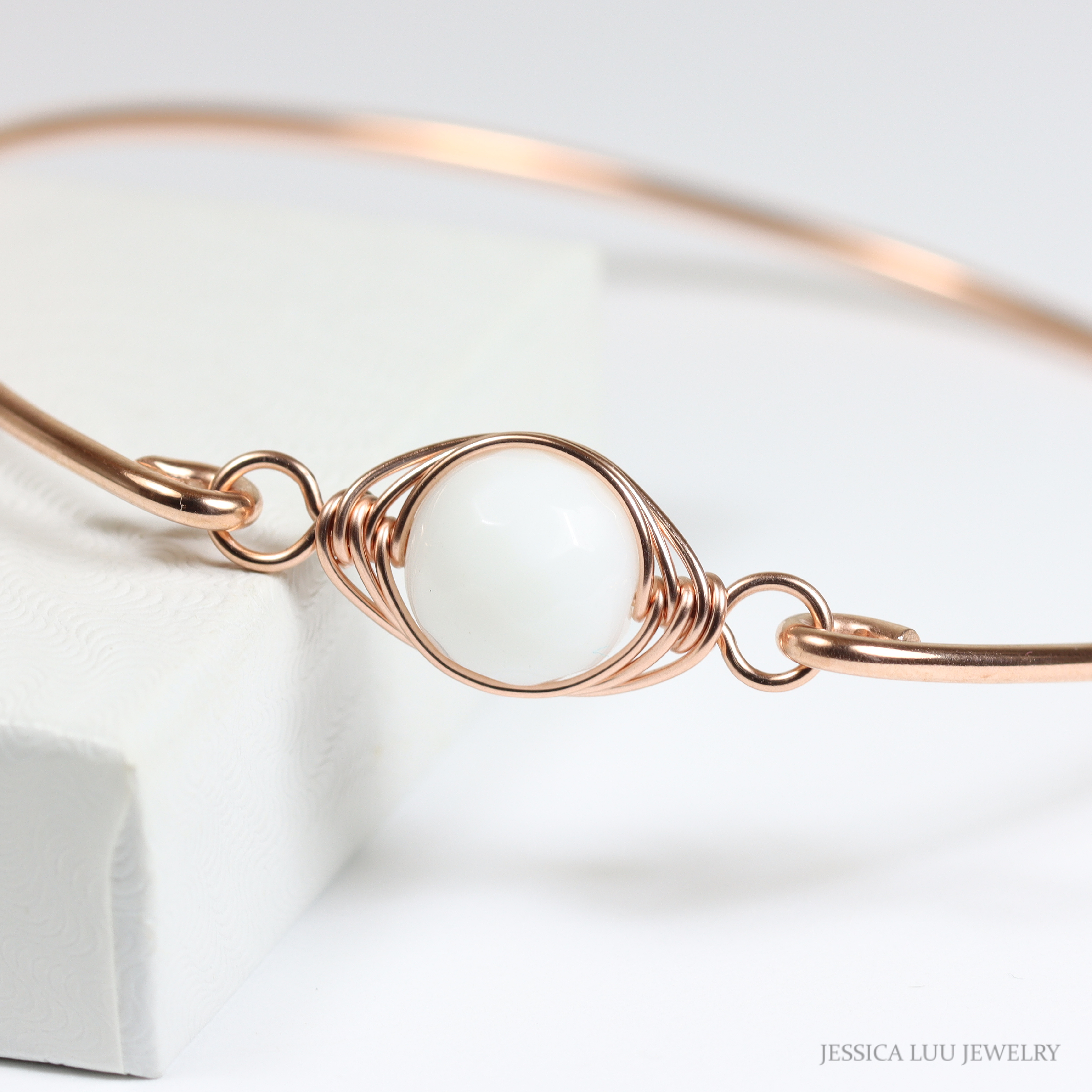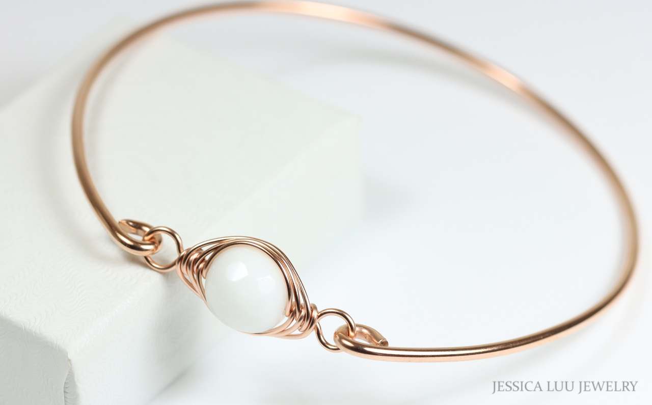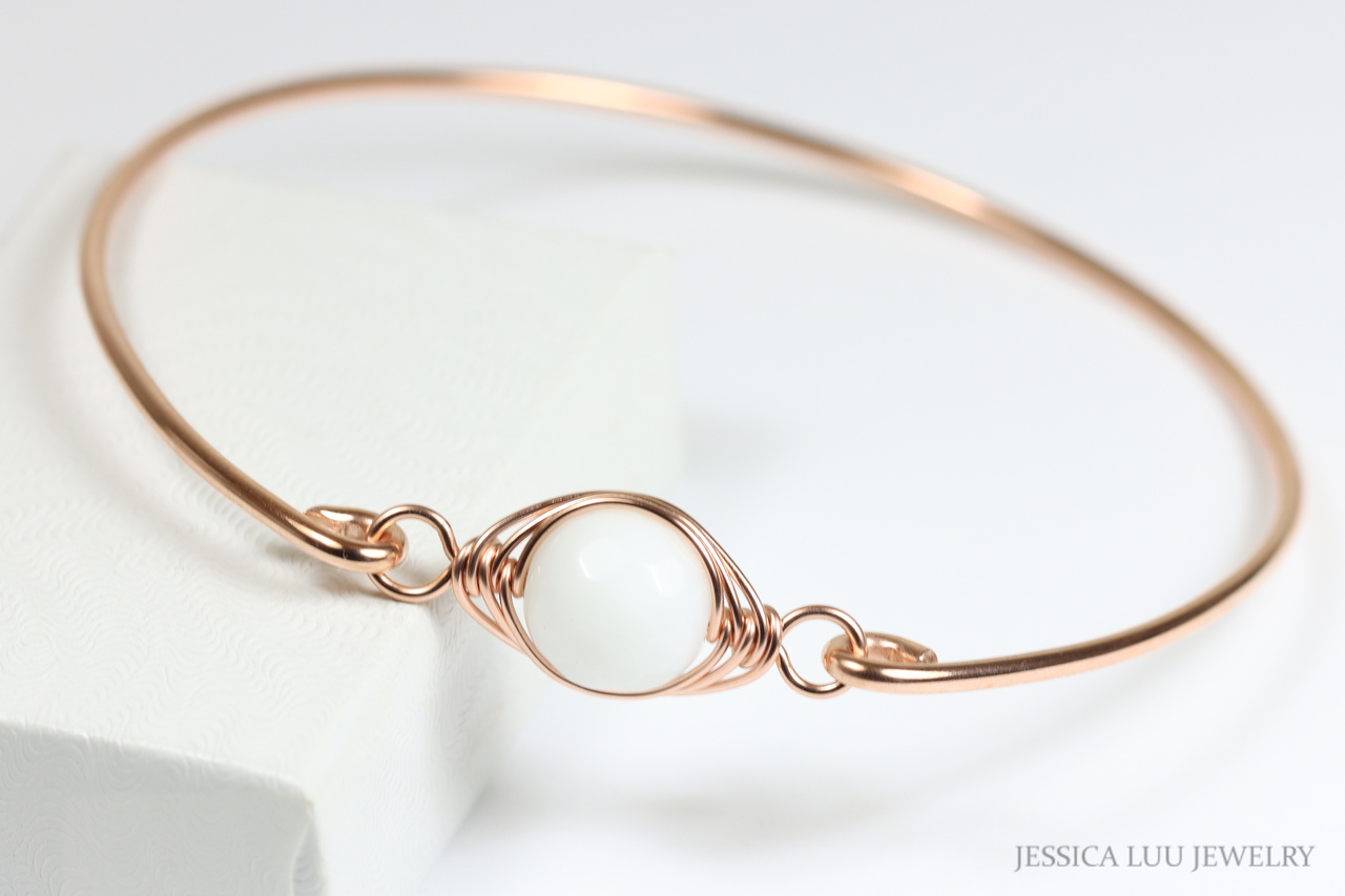 Alabaster Gemstone Bangle Bracelet Handmade by Jessica Luu Jewelry