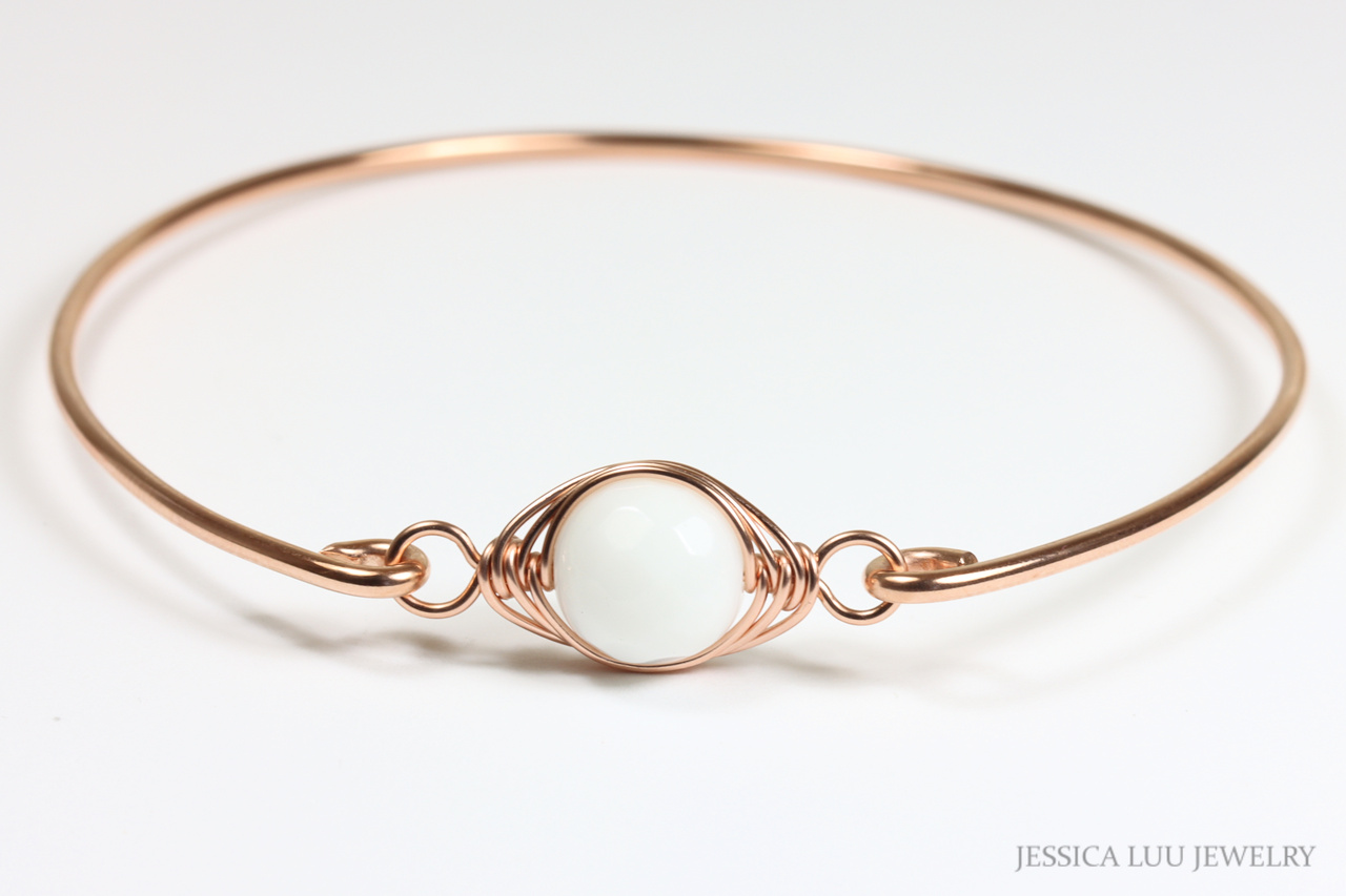 ~ BANGLE DETAILS: This 14K gold filled bracelet has a 10mm faceted, round white alabaster gemstone solitaire in a 14K gold filled setting. Each bracelet is made to order in the size of your choosing. The traditional slide on style does not open or have a clasp.