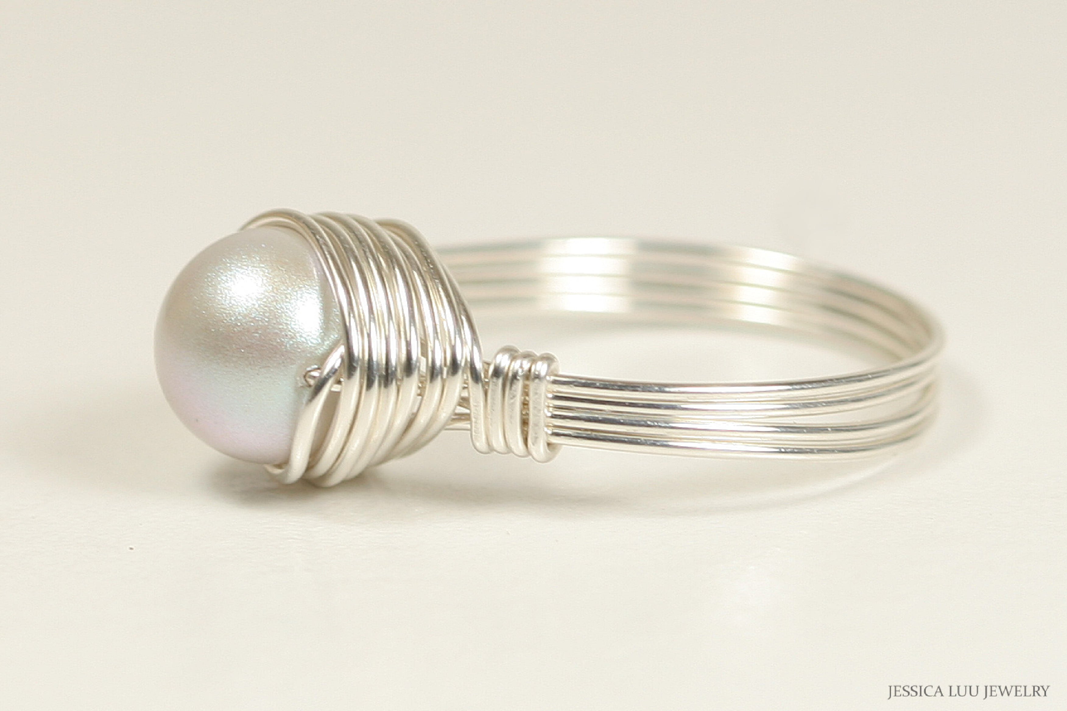 Sterling Silver Grey Pearl Solitaire Ring Handmade by Jessica Luu Jewelry
