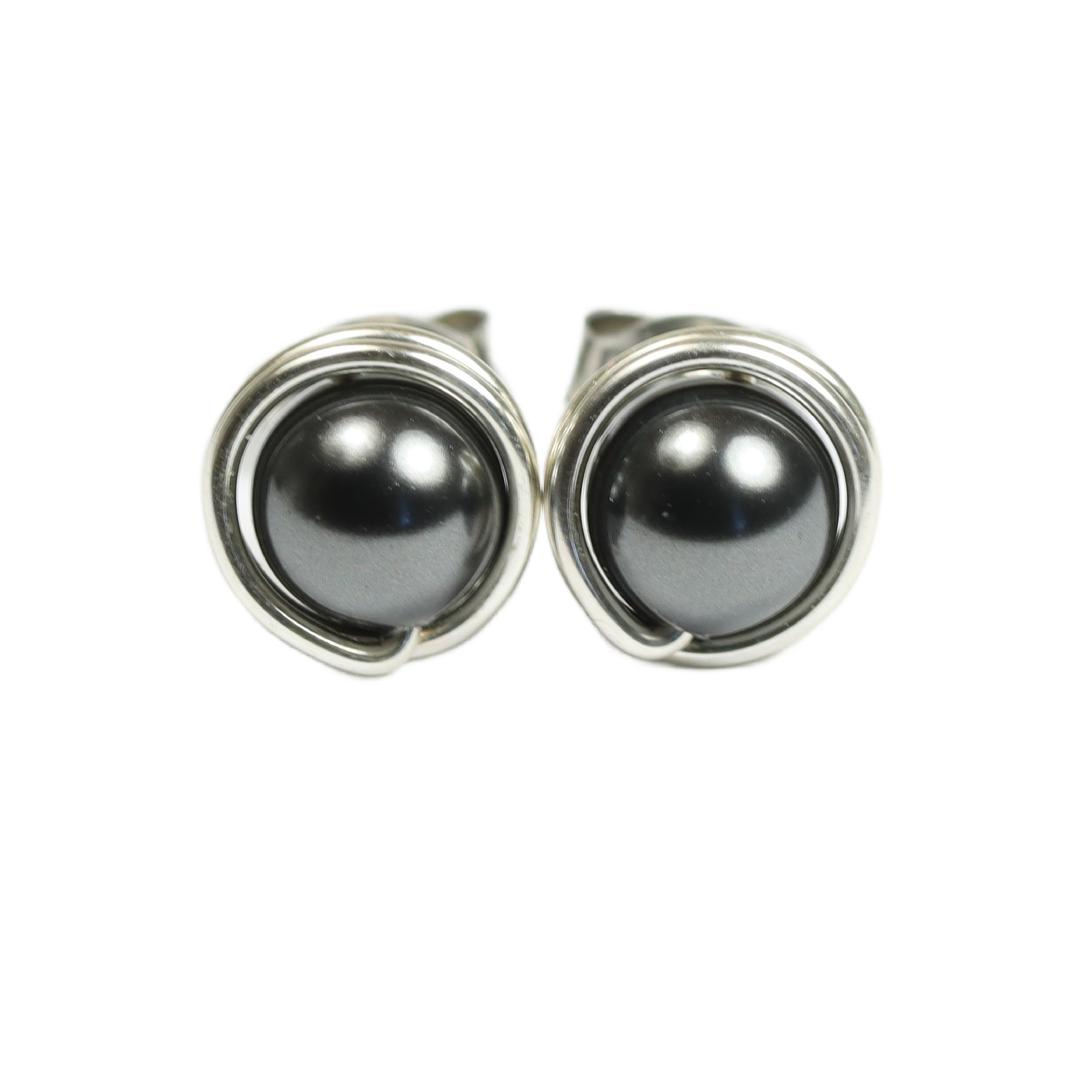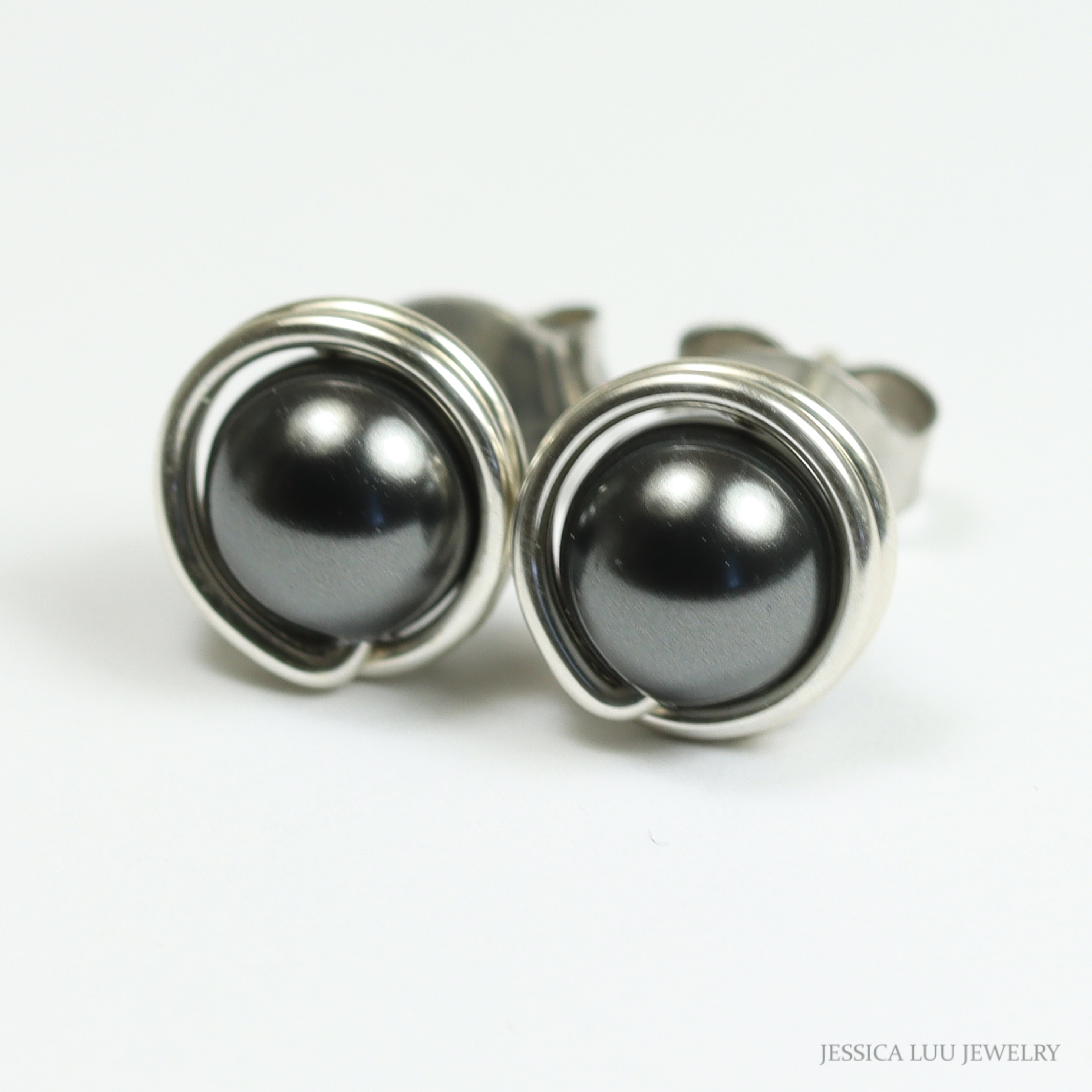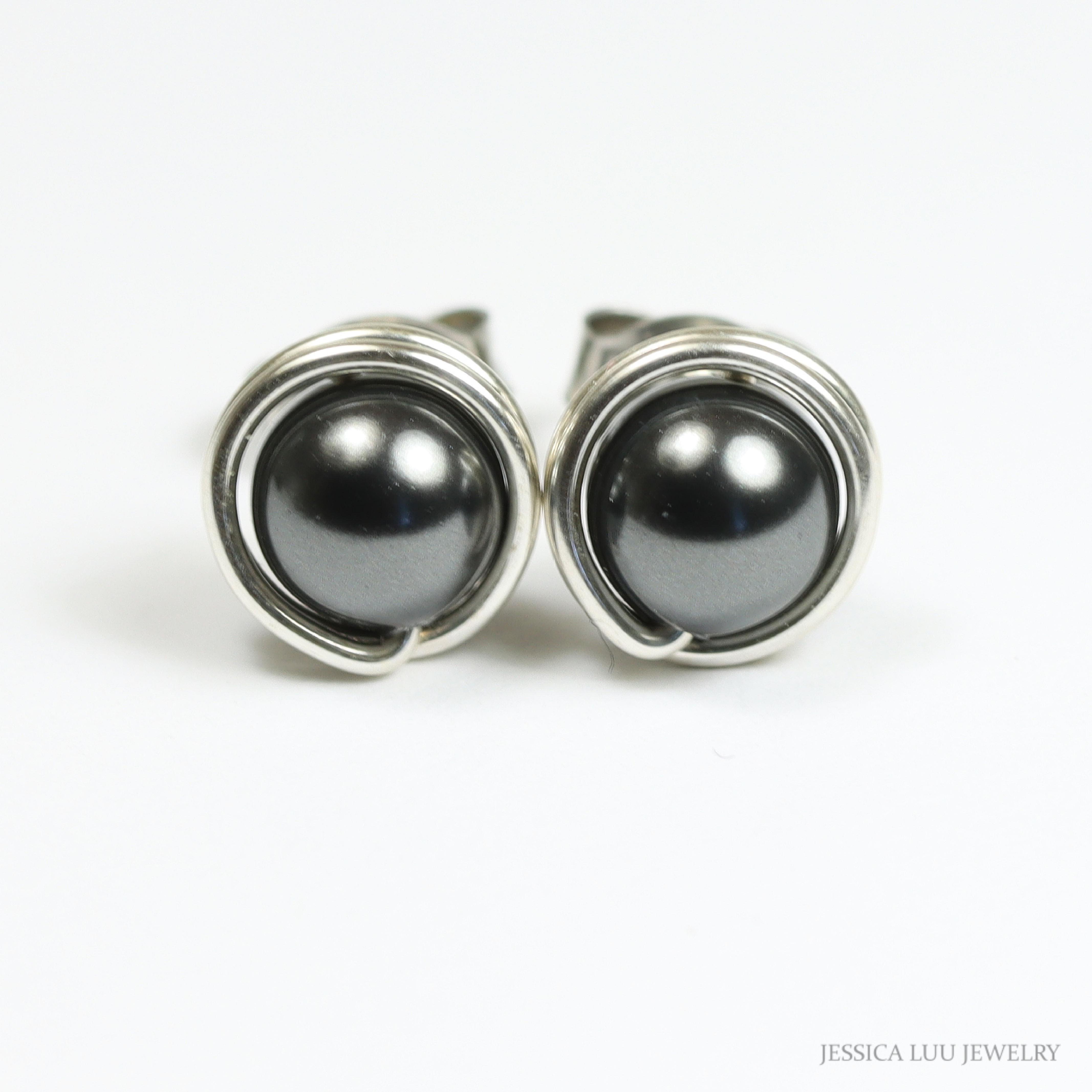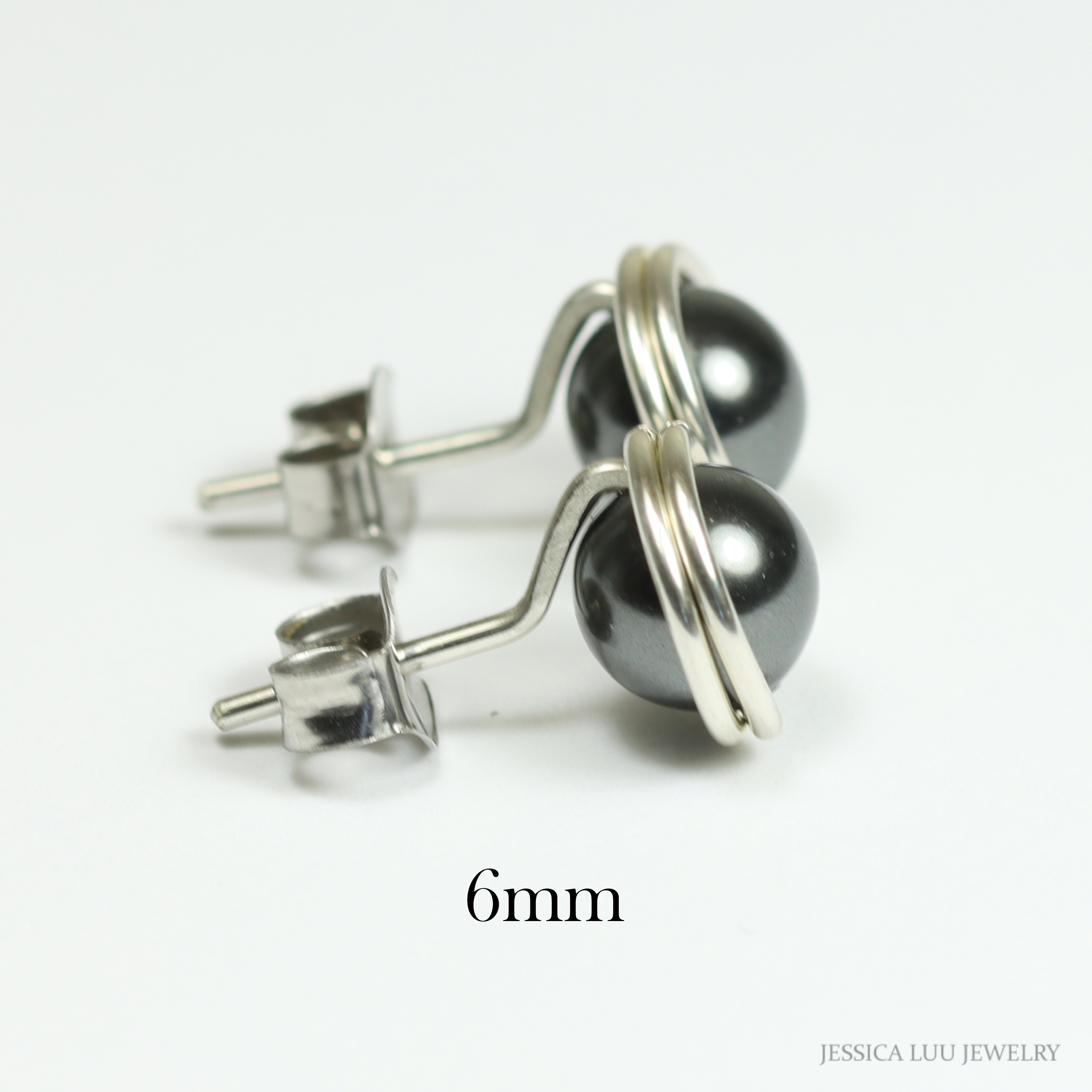 Sterling Silver Black Pearl Stud Earrings Handmade by Jessica Luu Jewelry