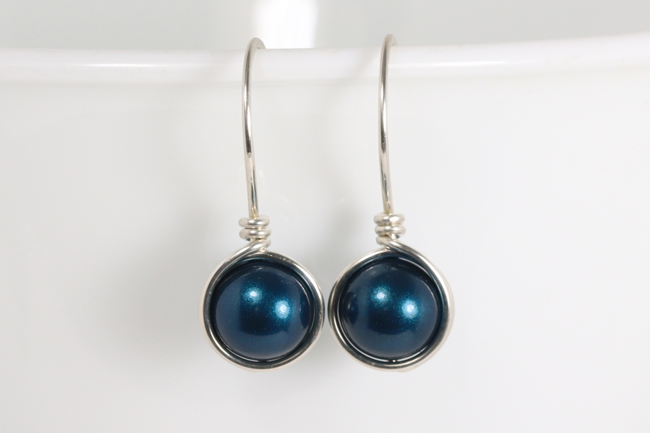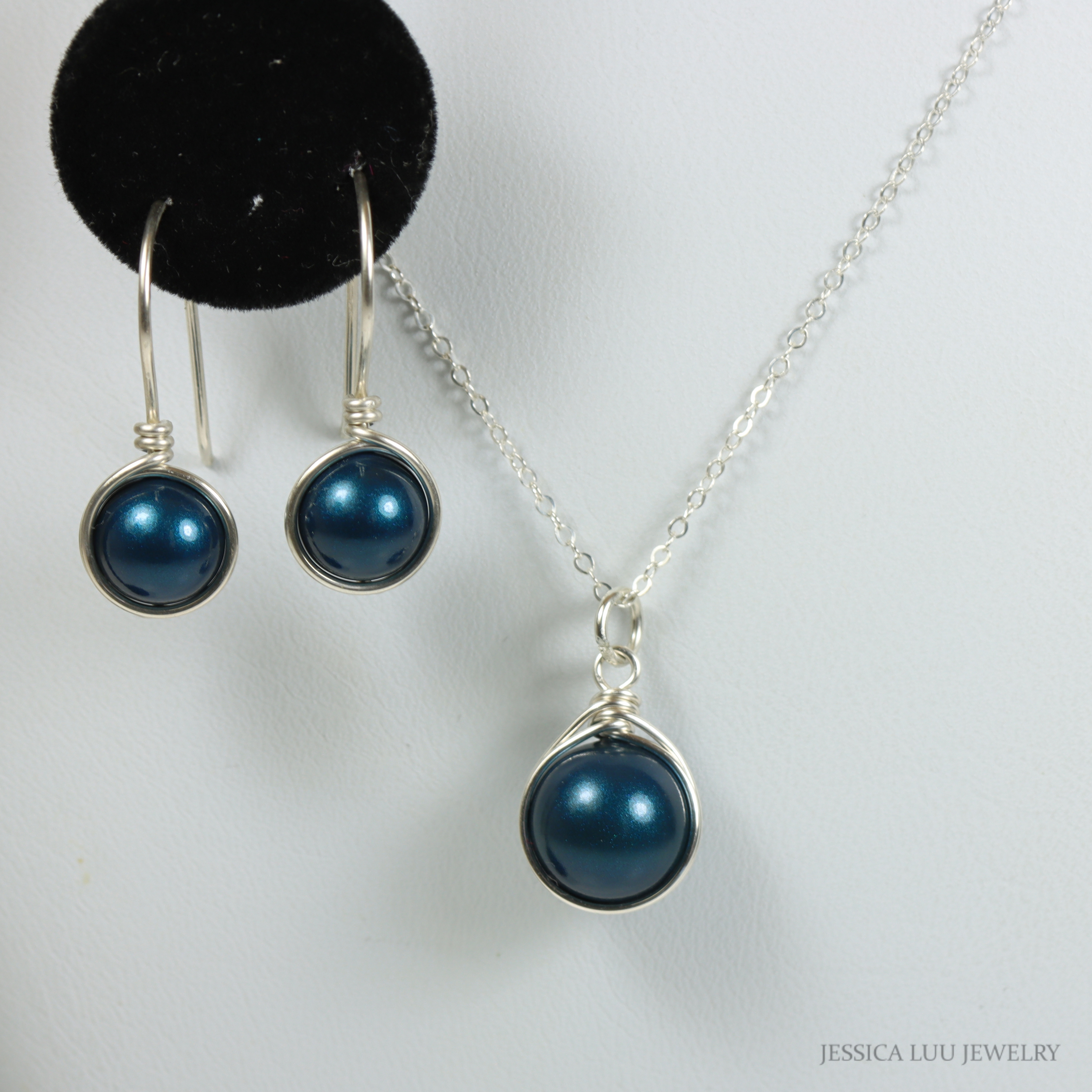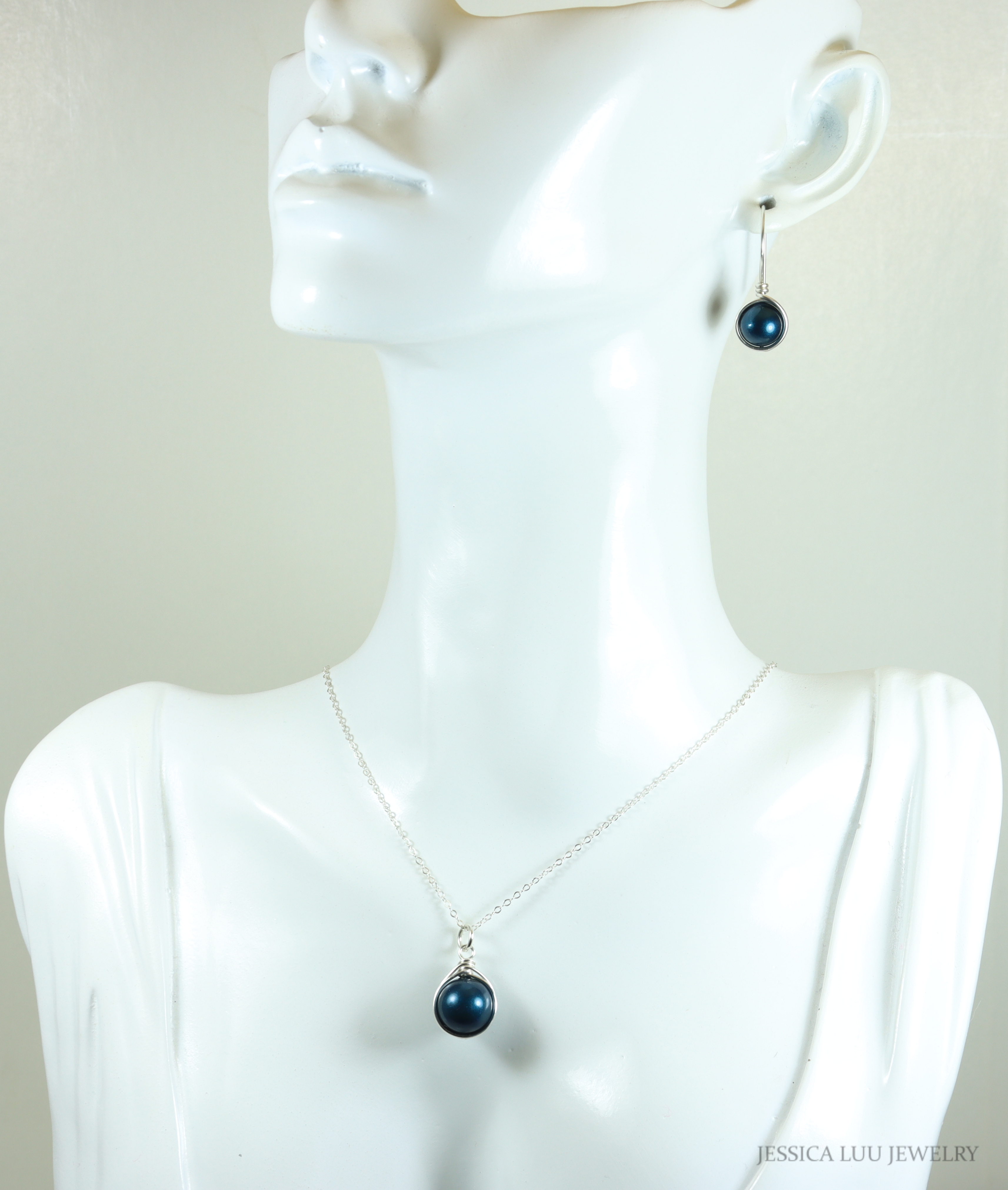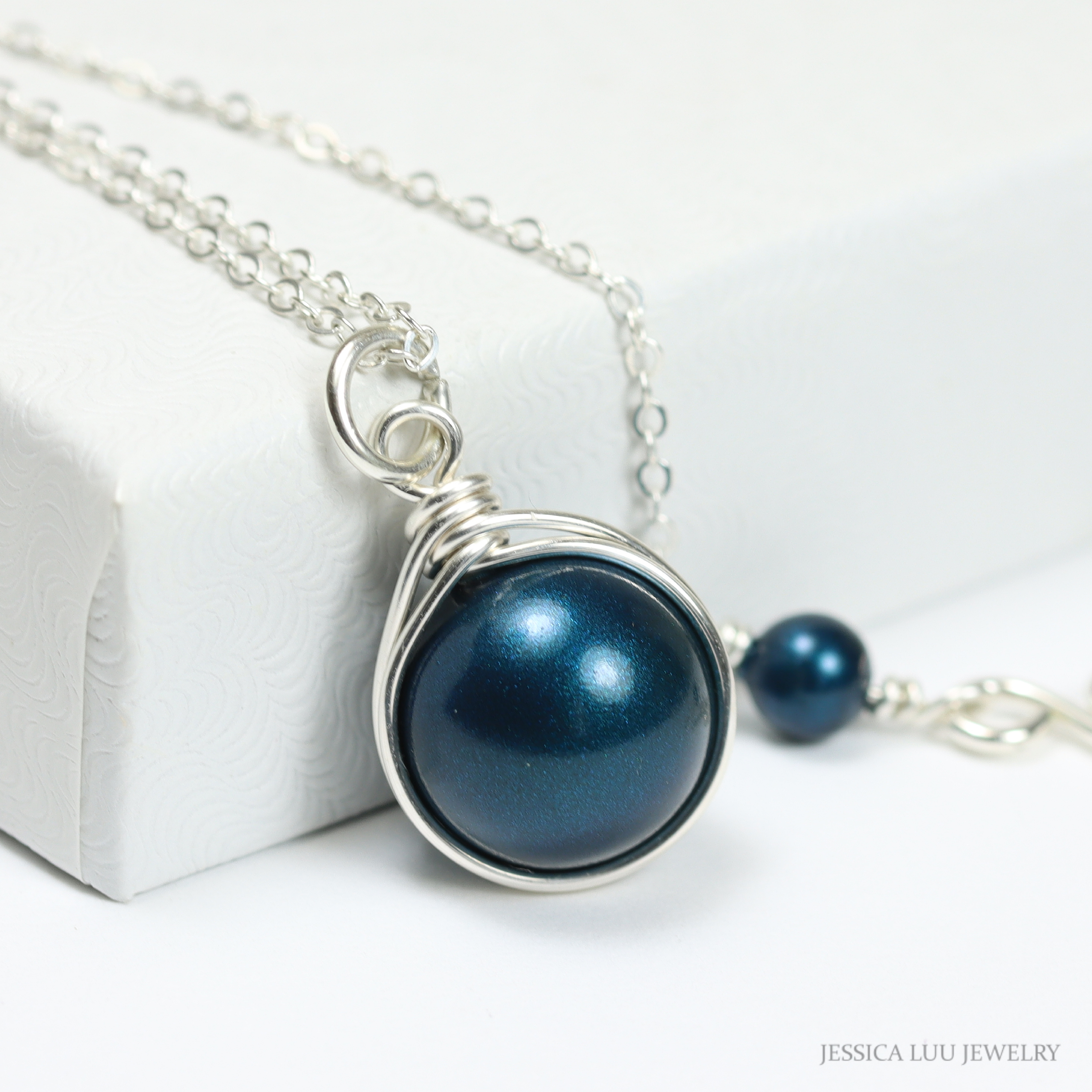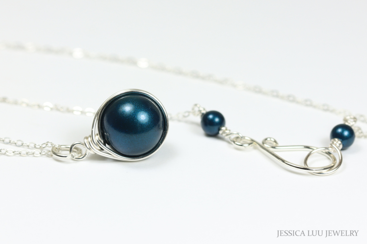 Metallic Blue Pearl Solitaire Necklace Handmade by Jessica Luu Jewelry